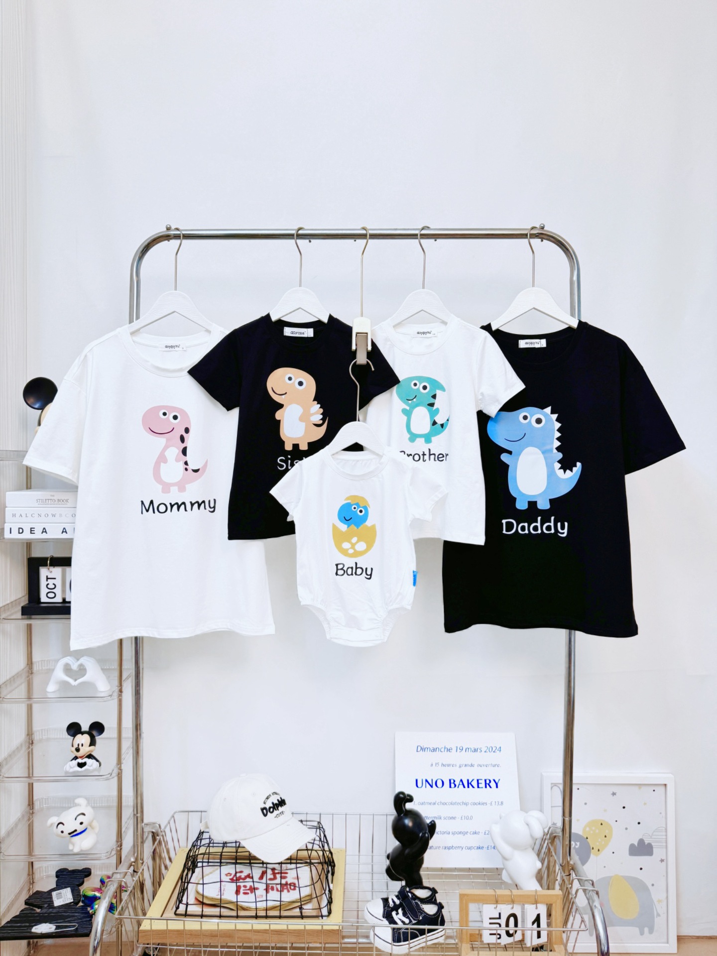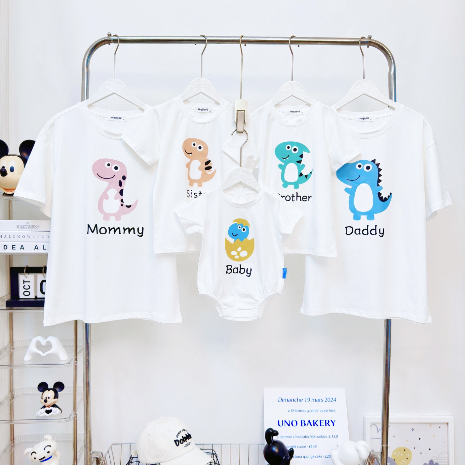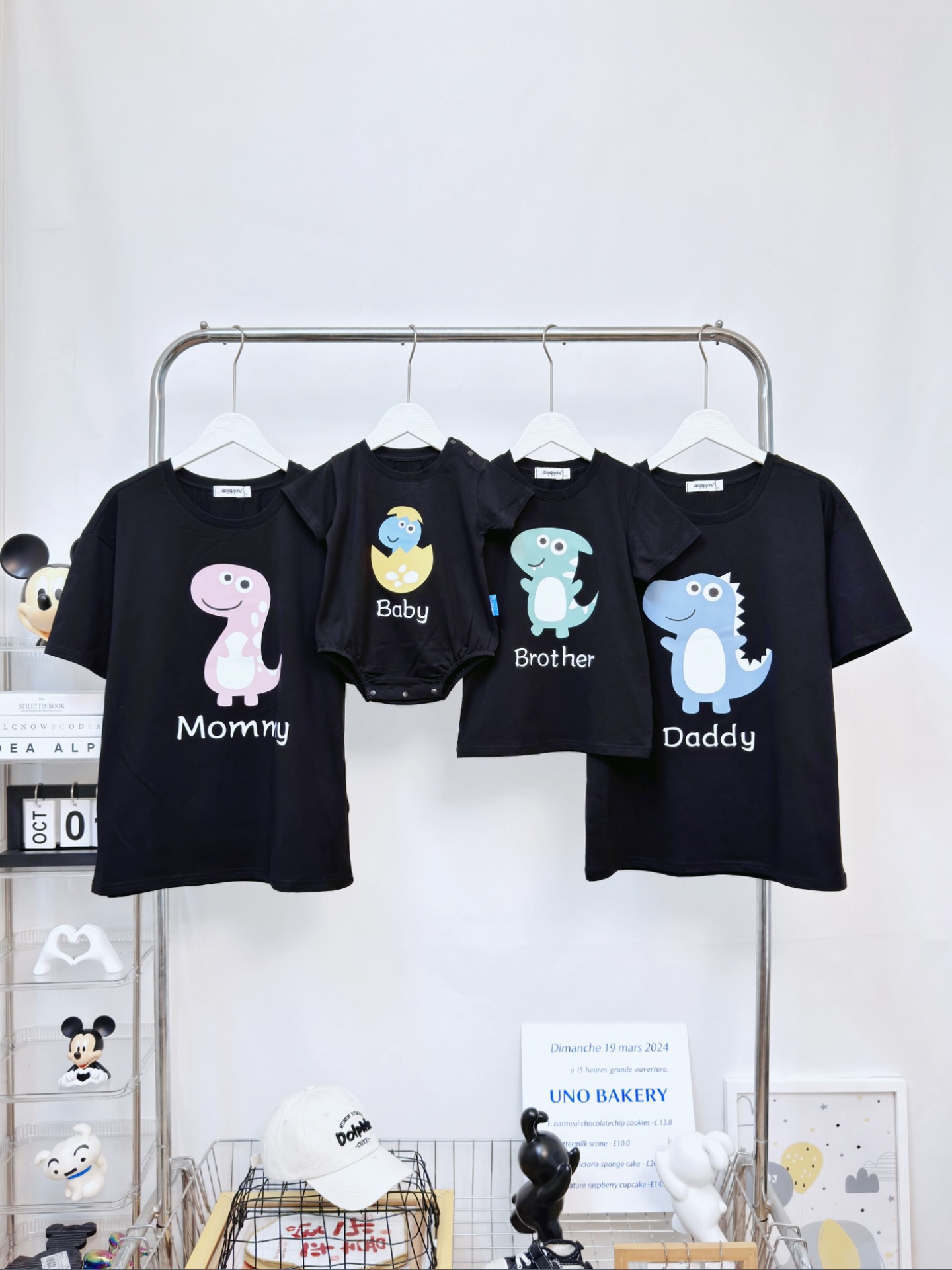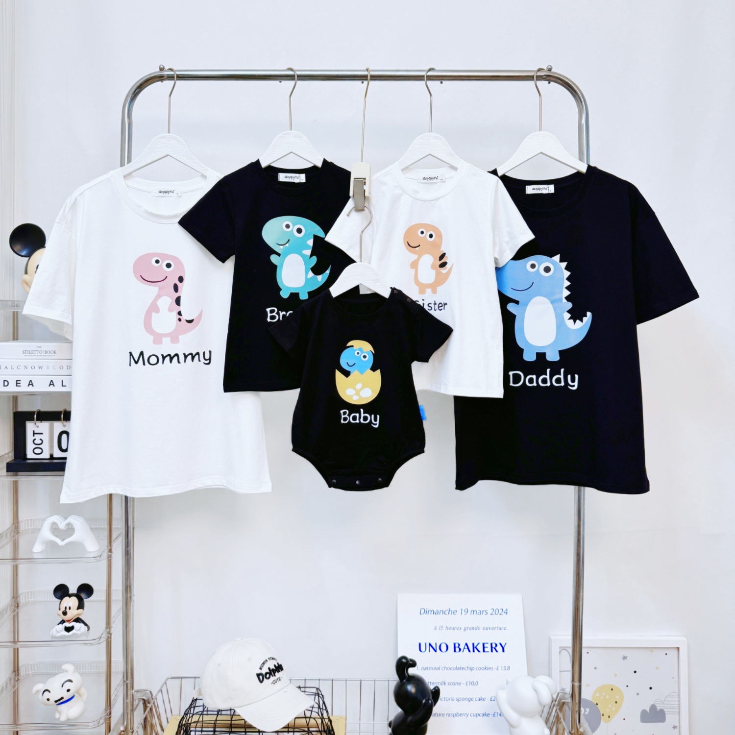 【F141】日系恐龍家族全家福親子短袖上衣(2色)