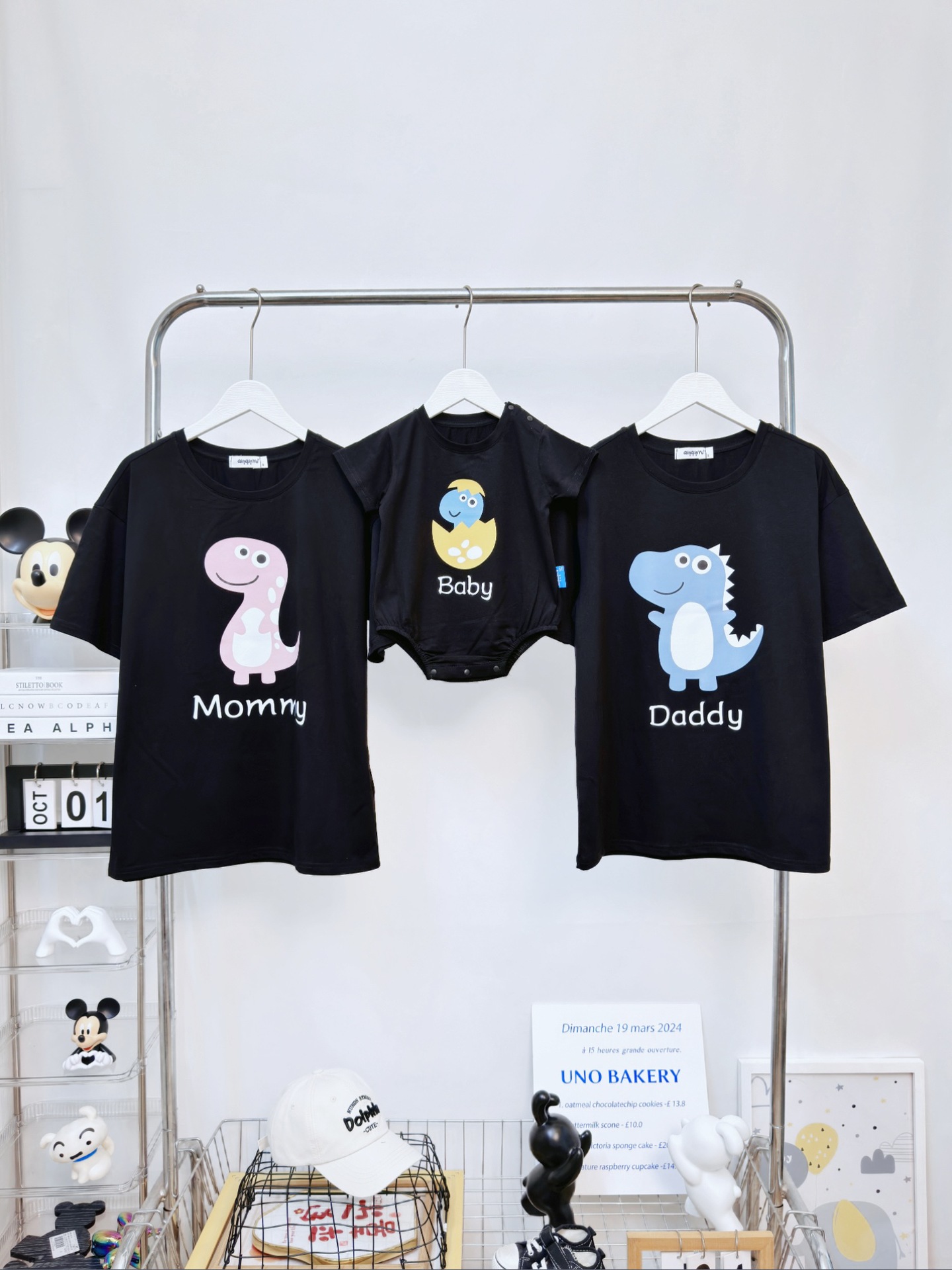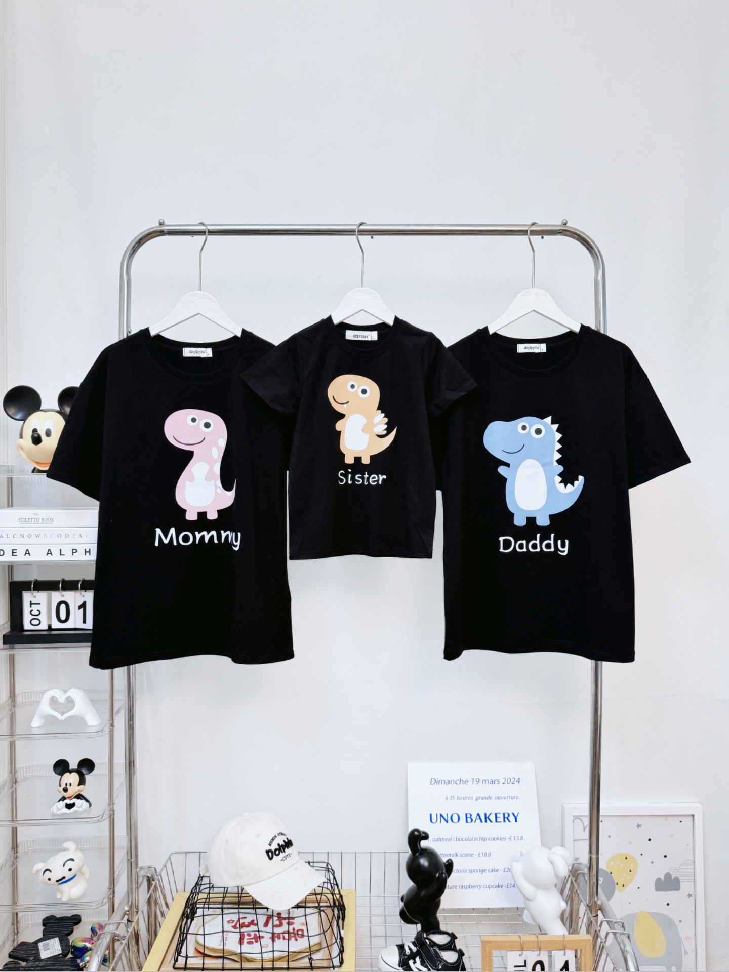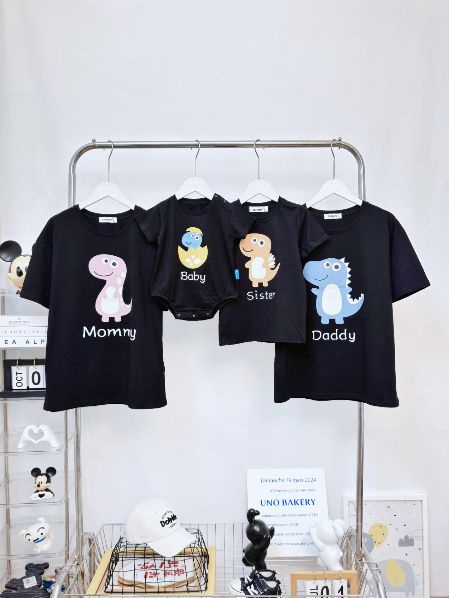 【F141】日系恐龍家族全家福親子短袖上衣(2色)