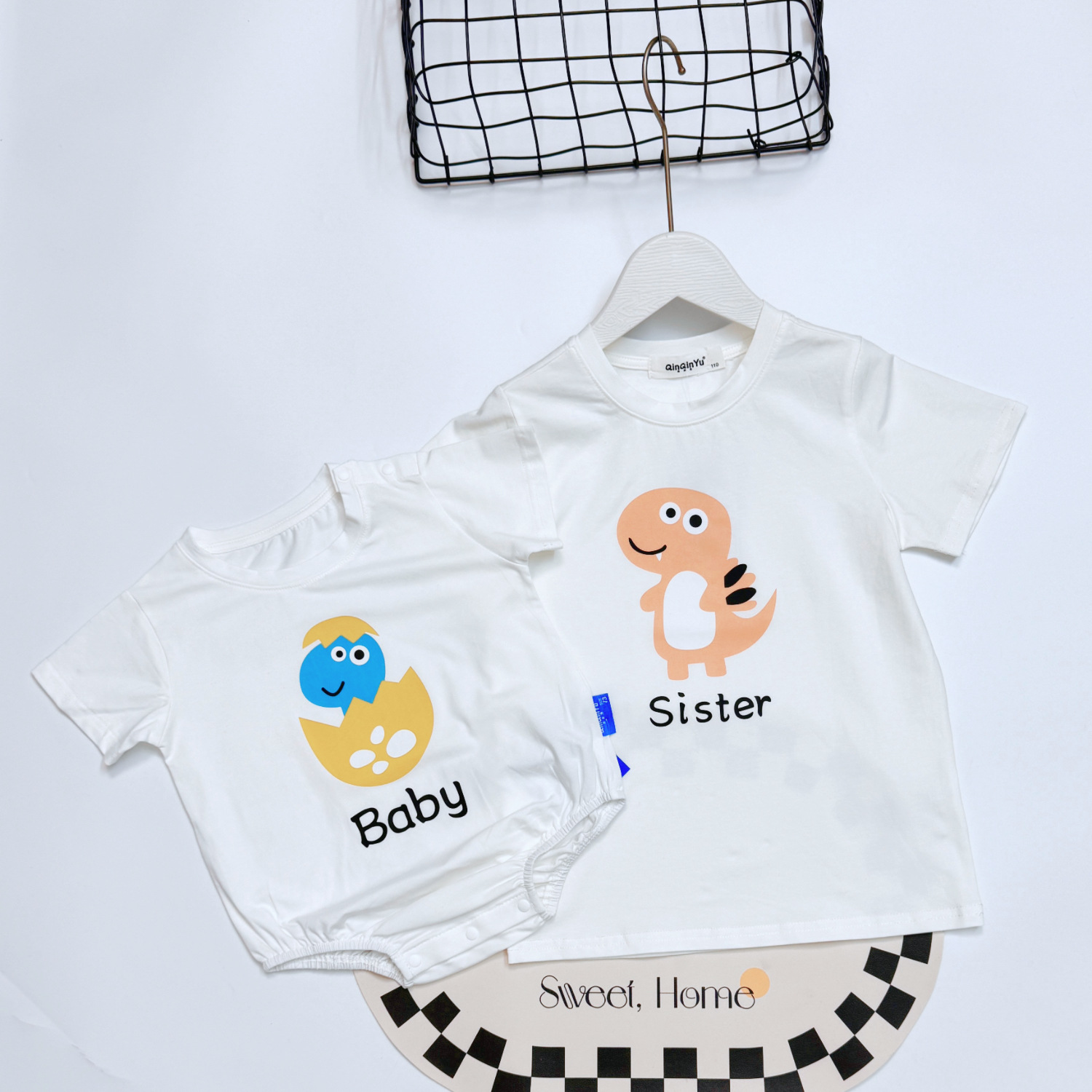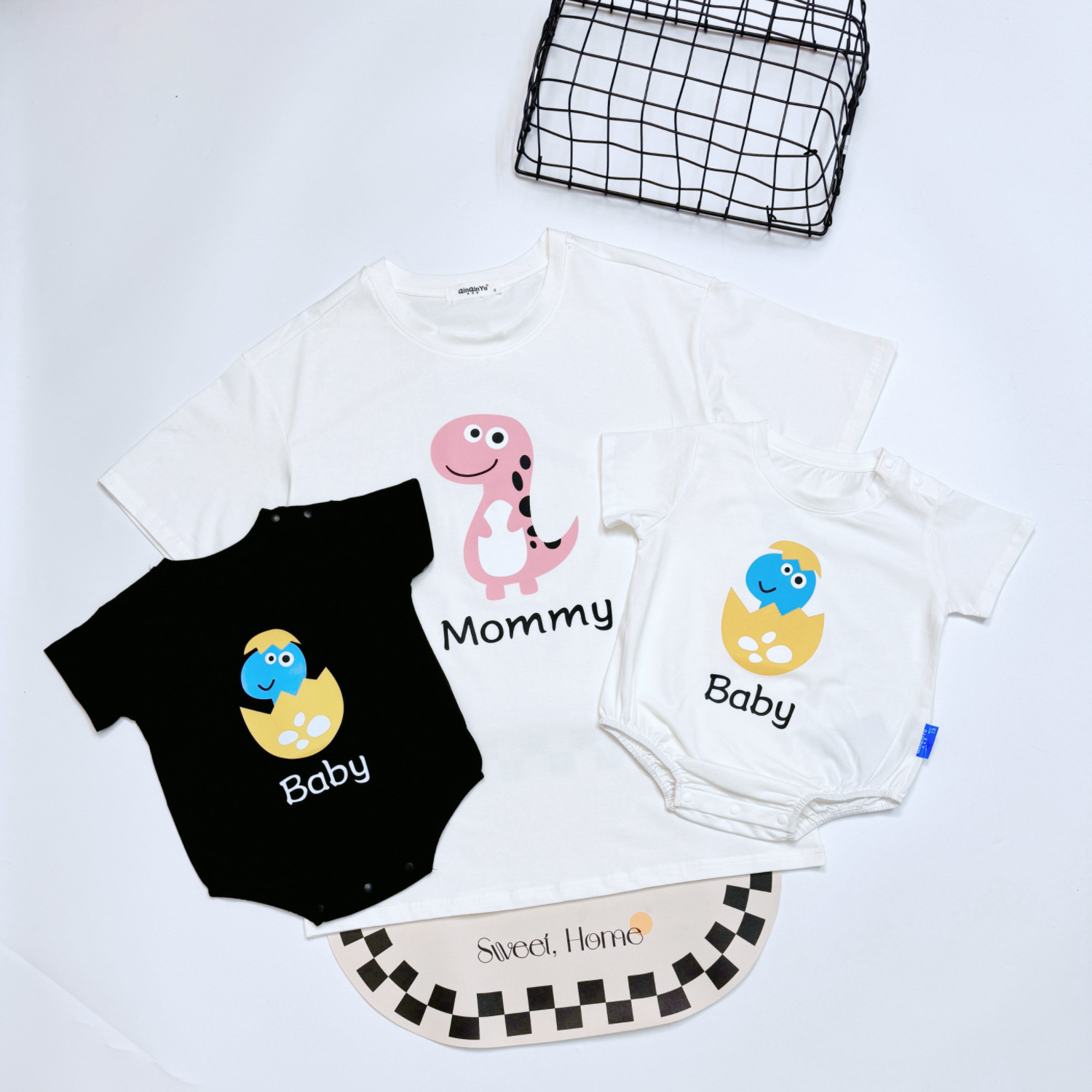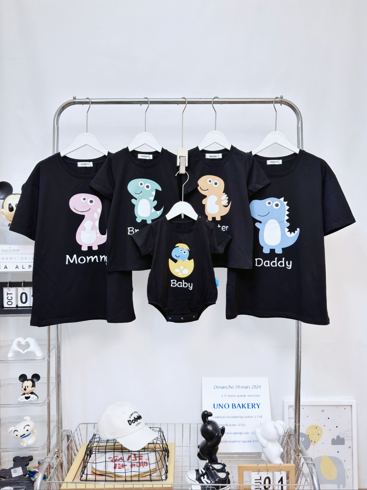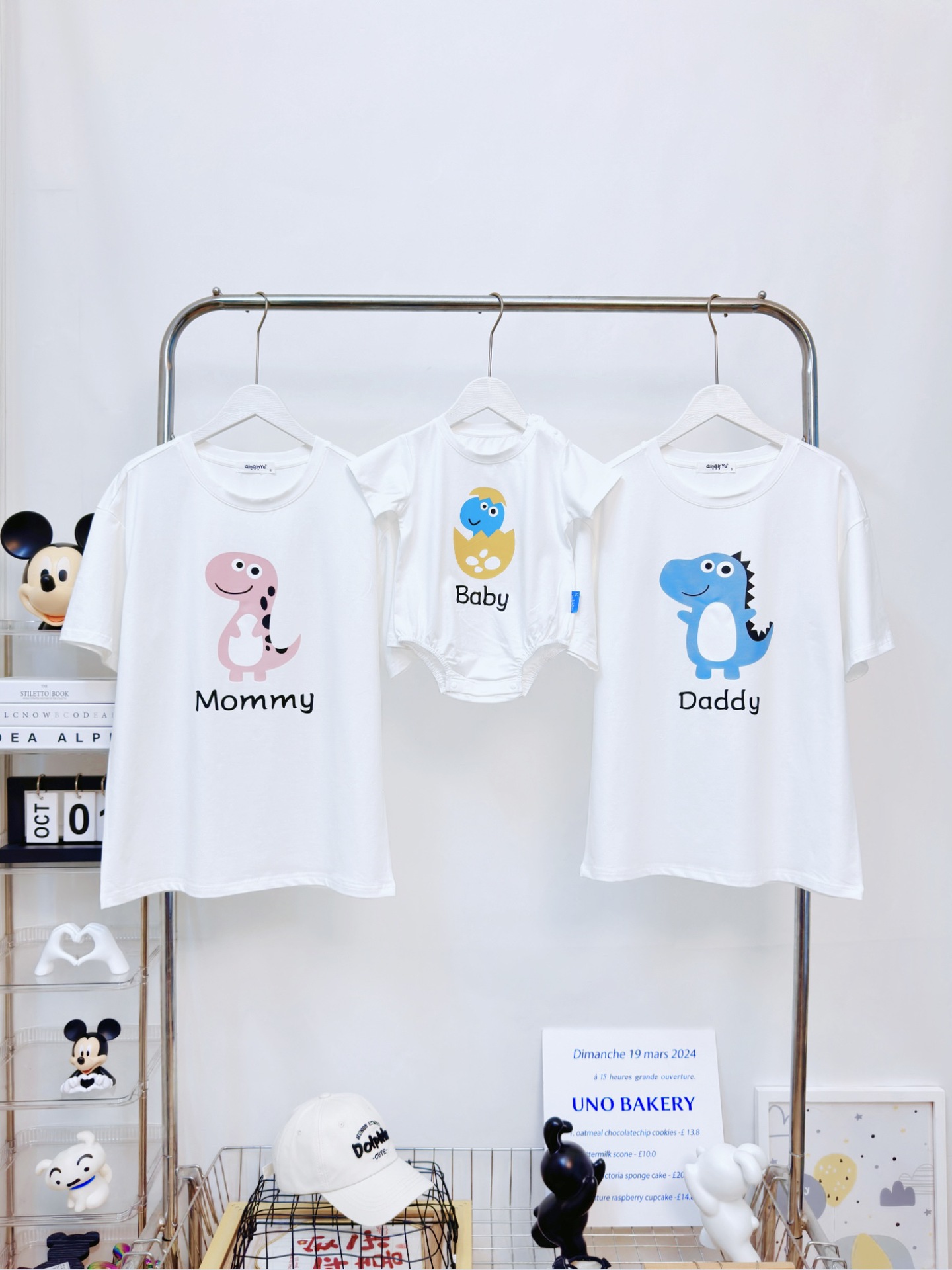 【F141】日系恐龍家族全家福親子短袖上衣(2色)
