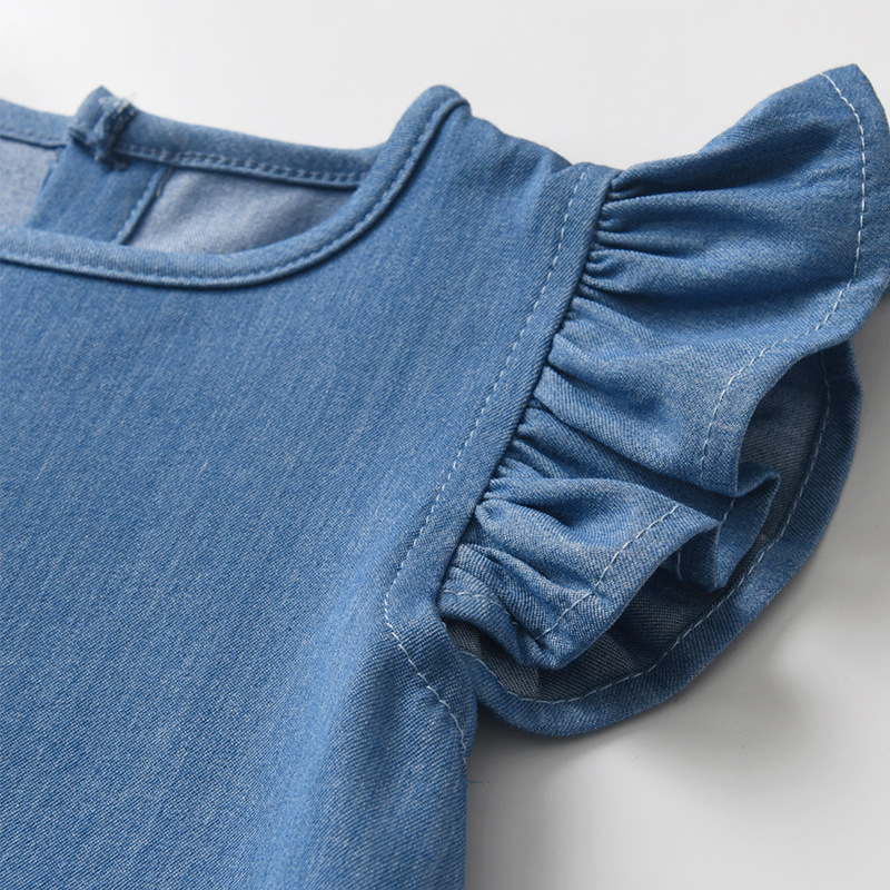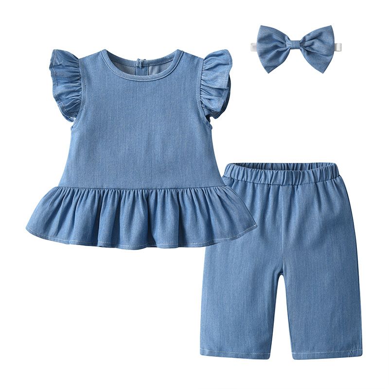 【BE136】日系牛仔小飛袖無袖短褲套裝(送髮帶)(1色)