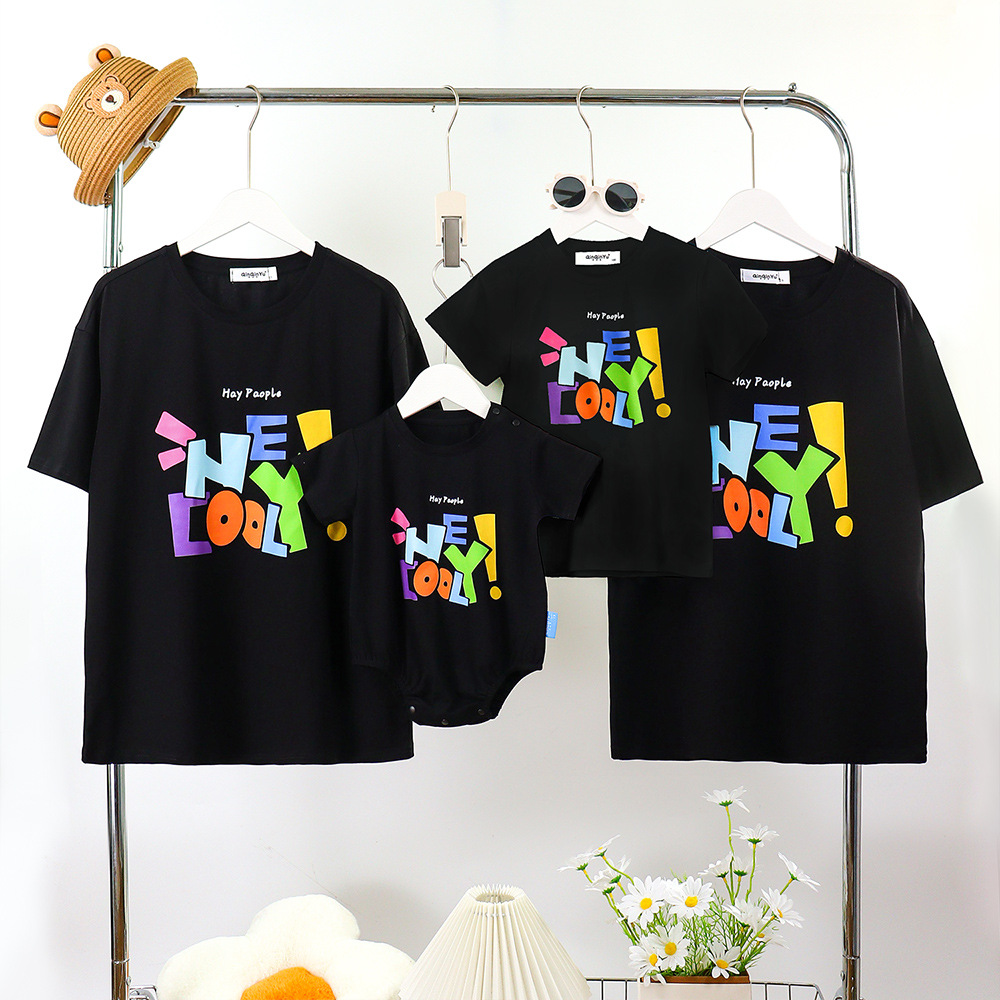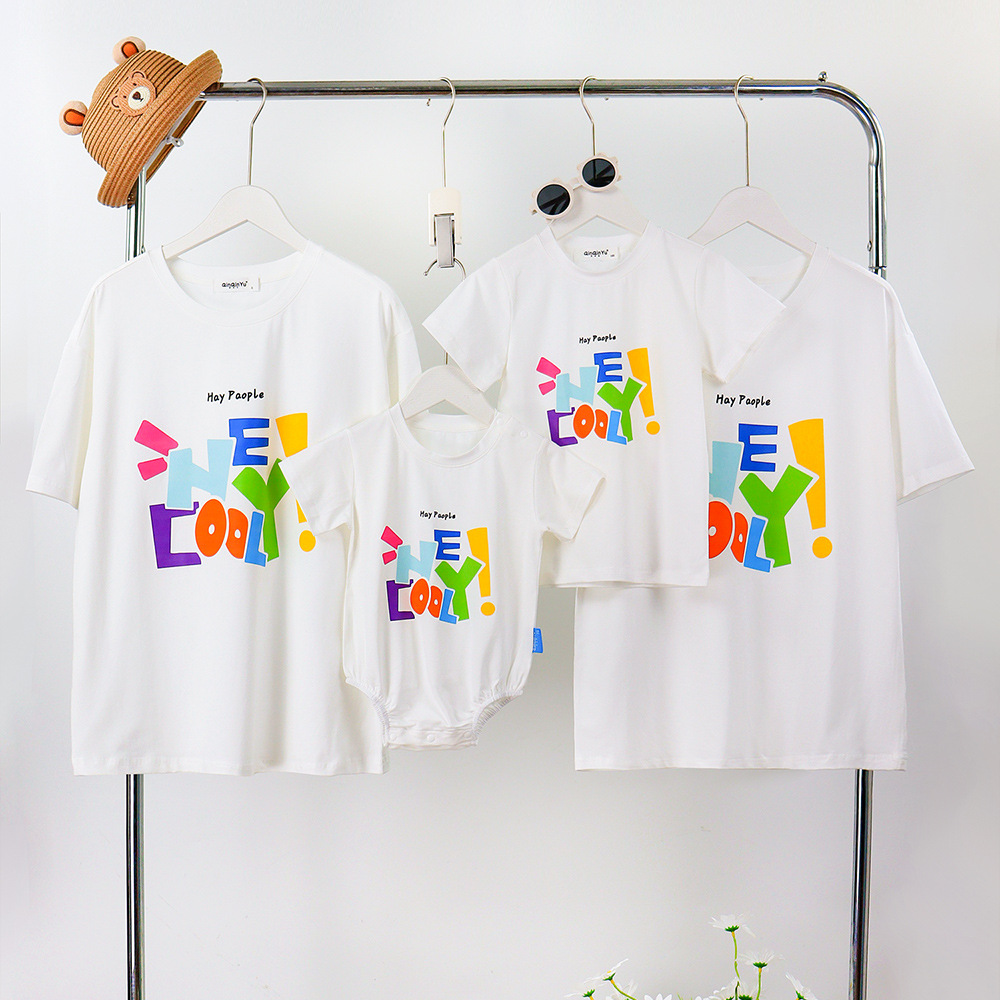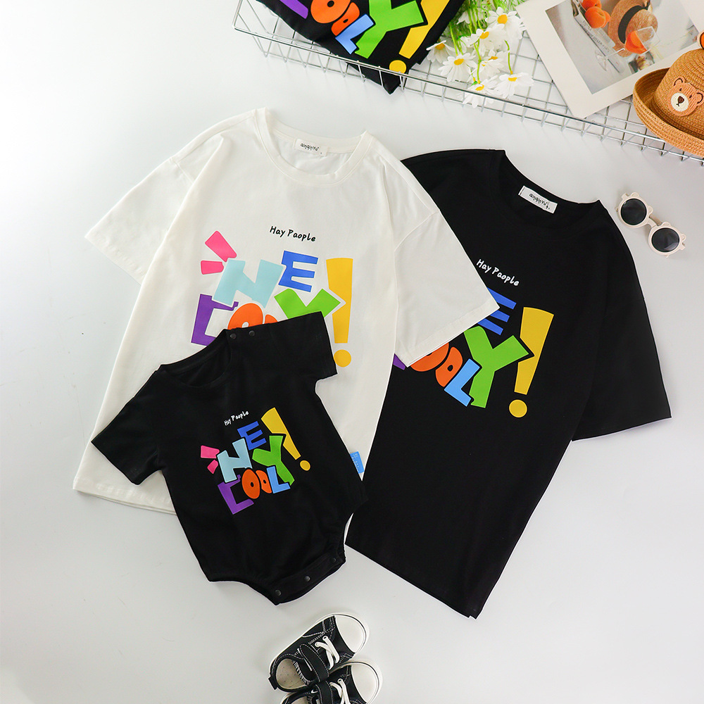 【F183】日系繽紛字母全家福親子短袖上衣(2色)