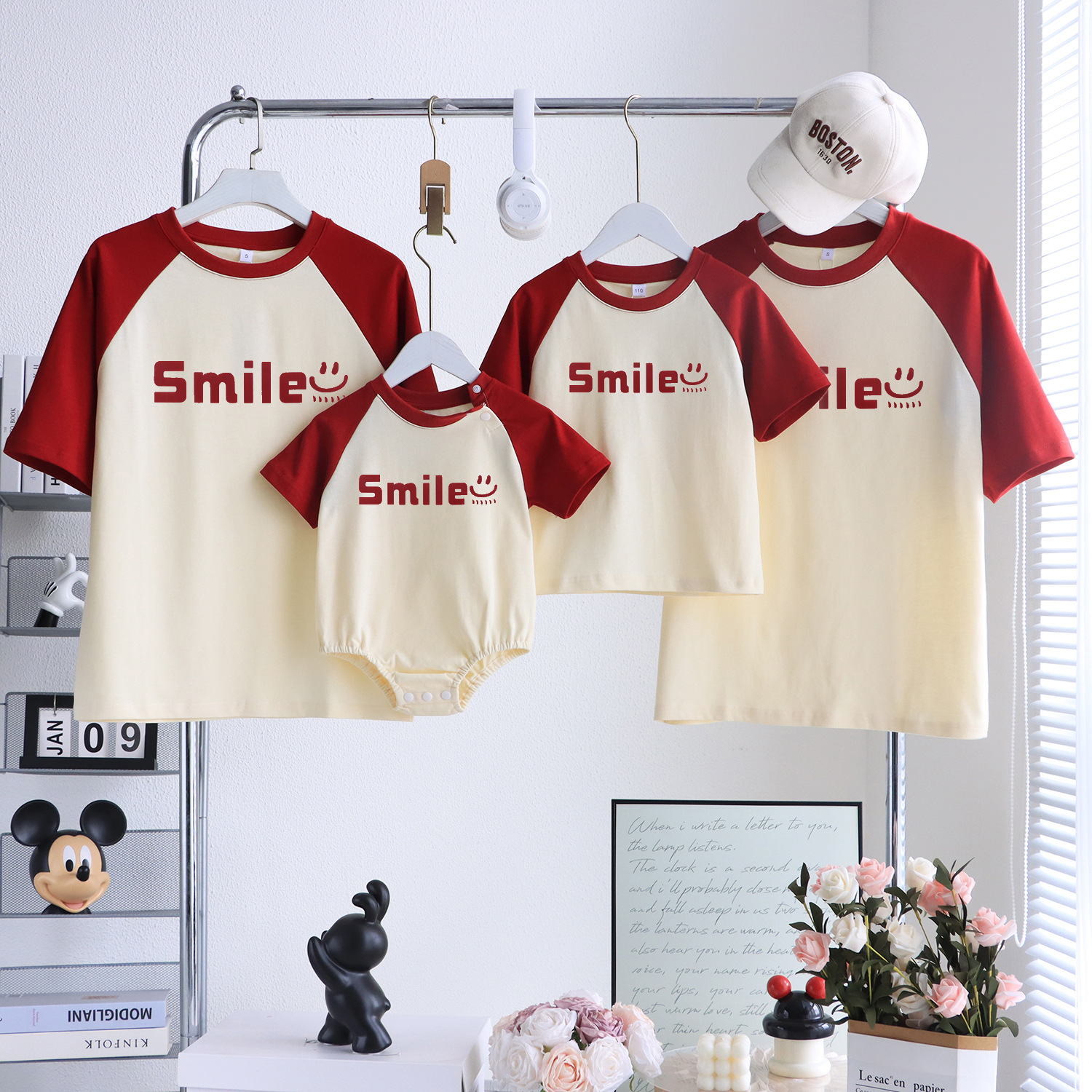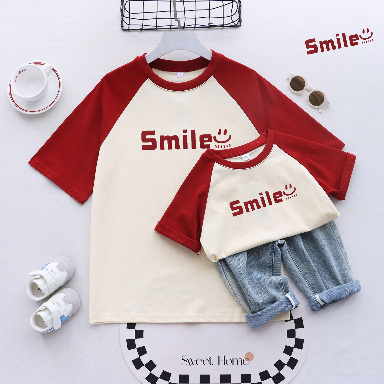 【F184】日系微笑字母全家福親子短袖上衣(1色)