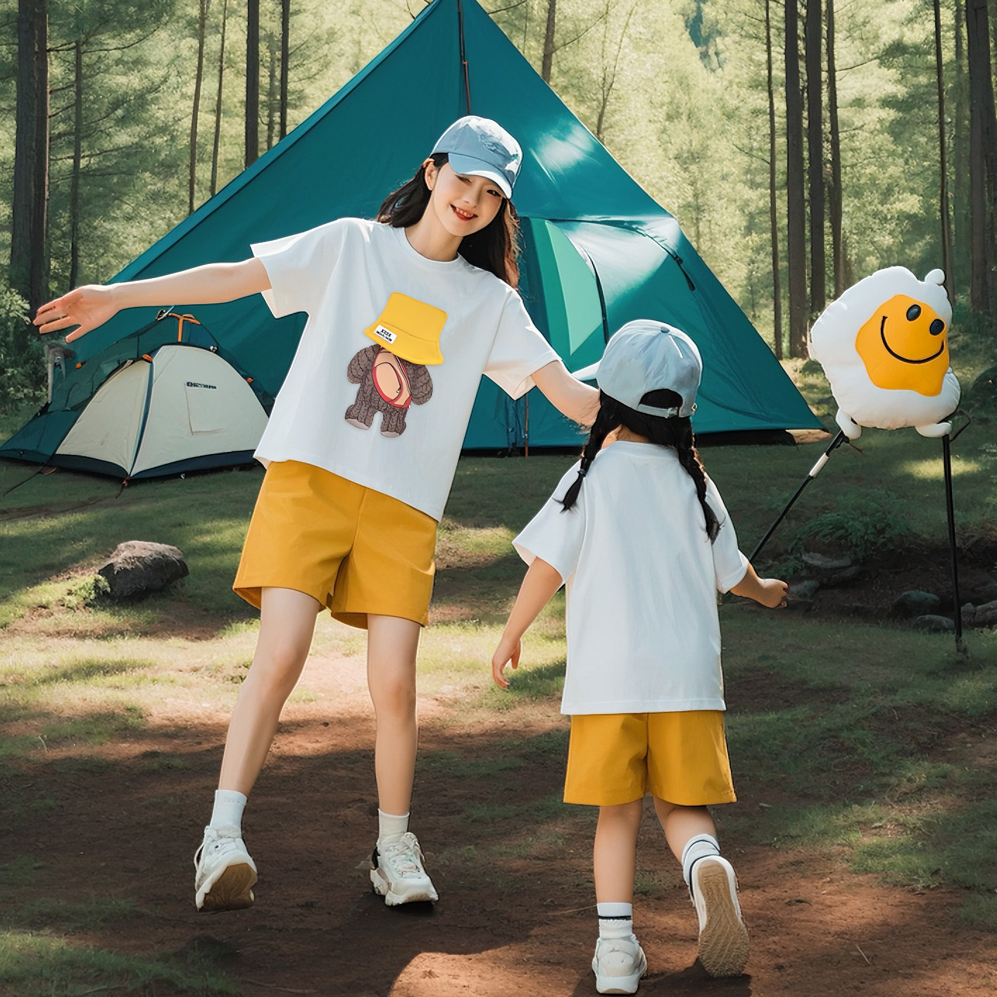 【F186】日系立體帽子小熊全家福親子短袖上衣(3色)