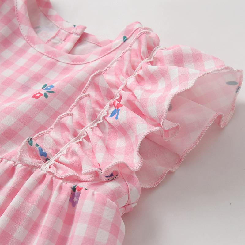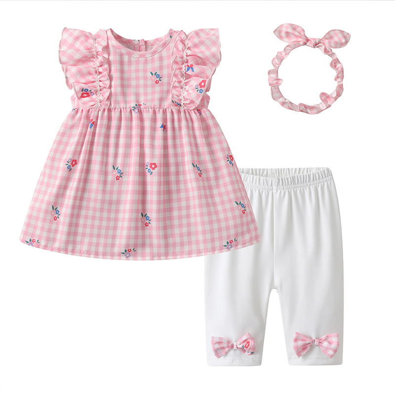 【BE141】日系粉格小花無袖短褲套裝(送髮帶)(1色)