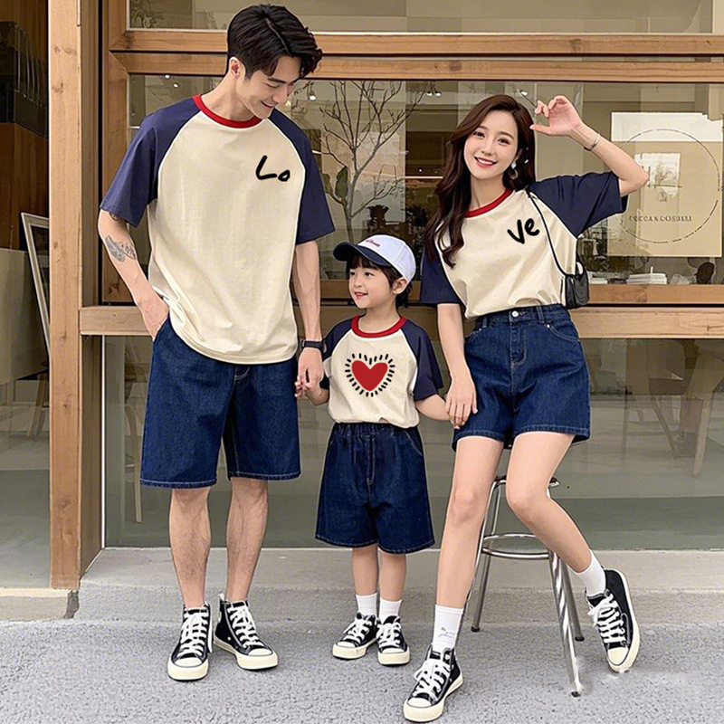 【F189】日系藍杏字母愛心全家福親子短袖上衣(1色)