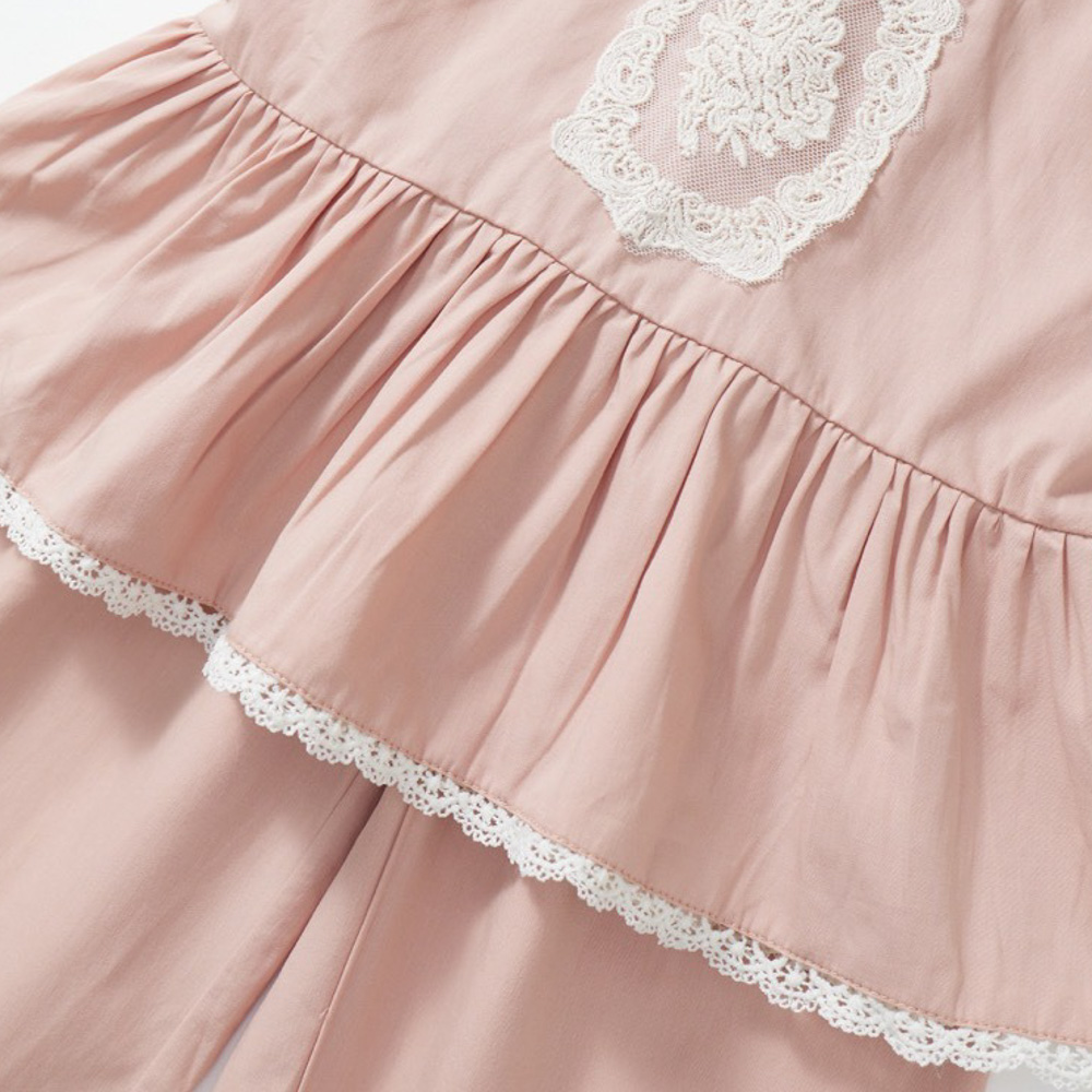 【BG730】日系刺繡蕾絲圖騰兩件式無袖長褲套裝(1色)