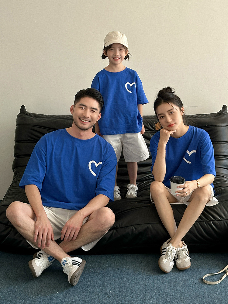【F177】日系寶藍愛心全家福親子短袖上衣(1色)