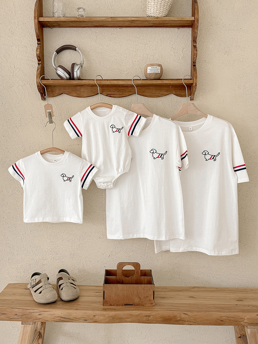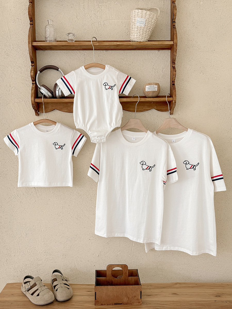 【F171】日系線條狗狗全家福親子短袖上衣(1色)