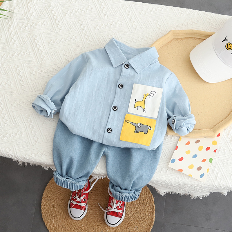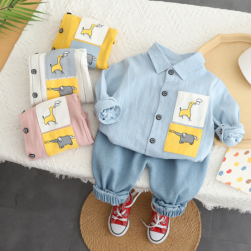 【BE230】大象小鹿長袖長褲套裝(4色)