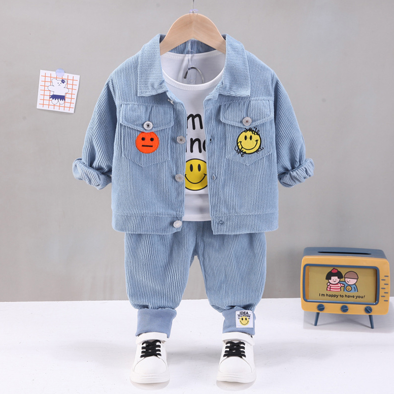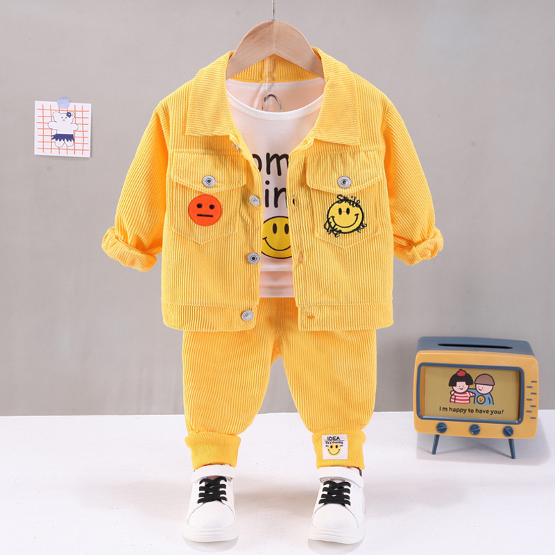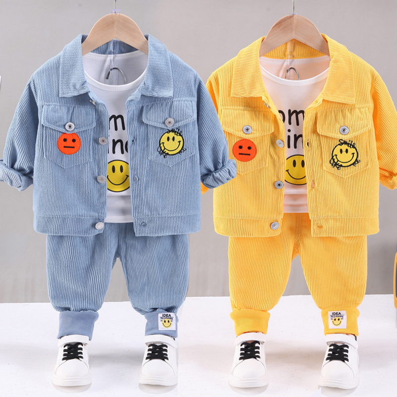 【BE232】日系笑臉燈芯絨長袖長褲 3件組(2色)