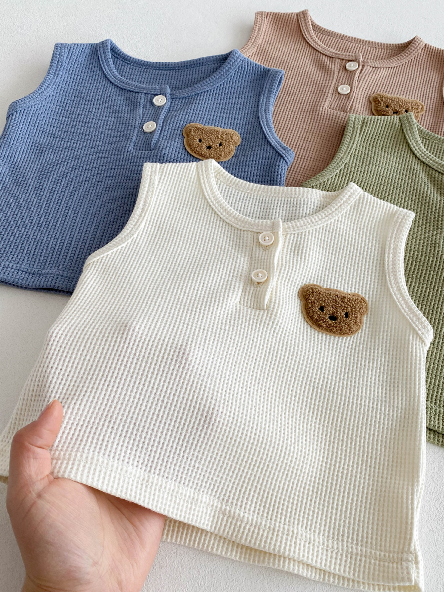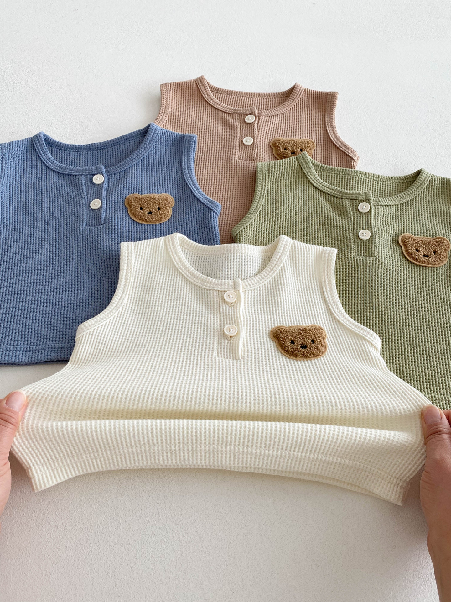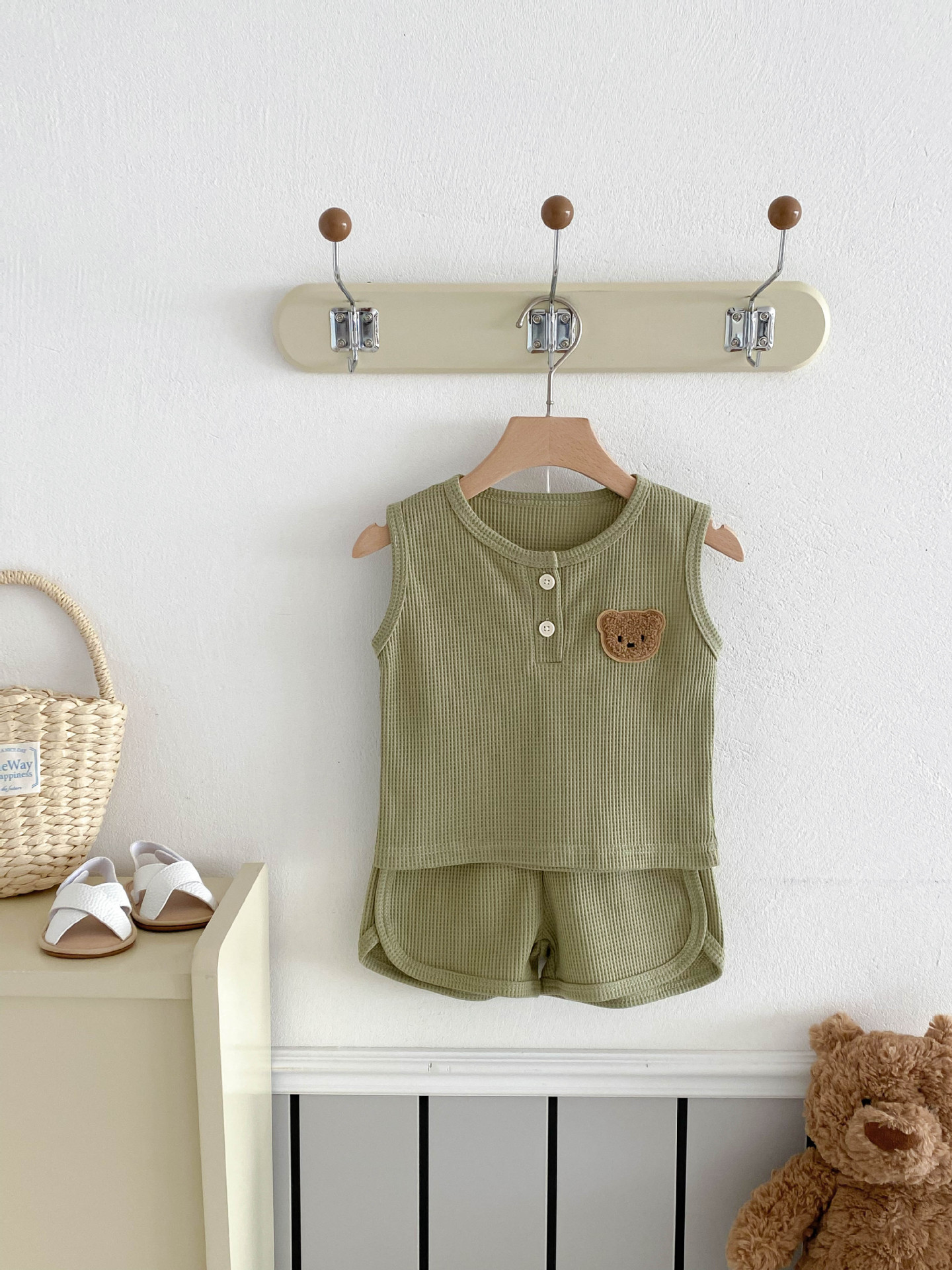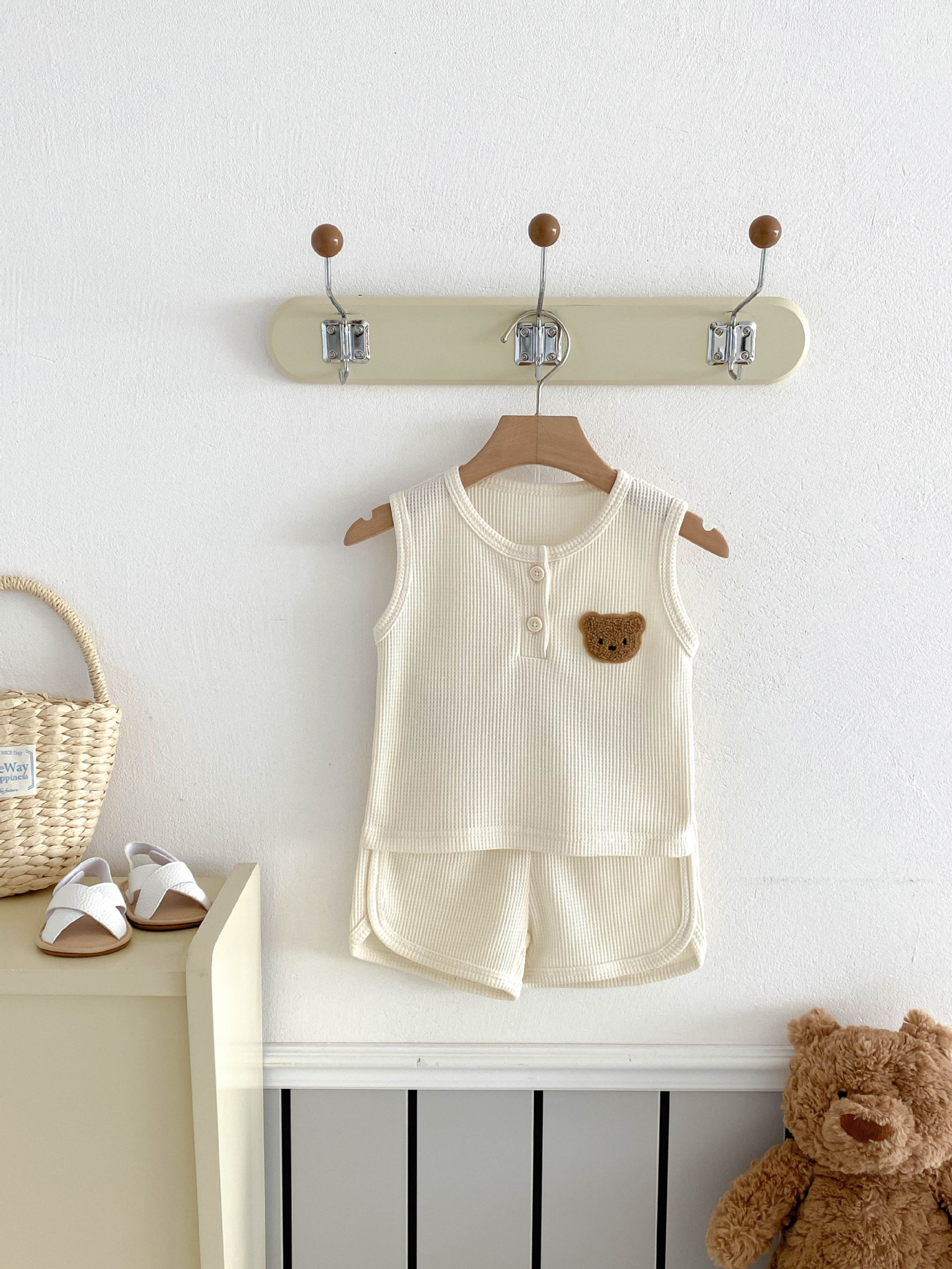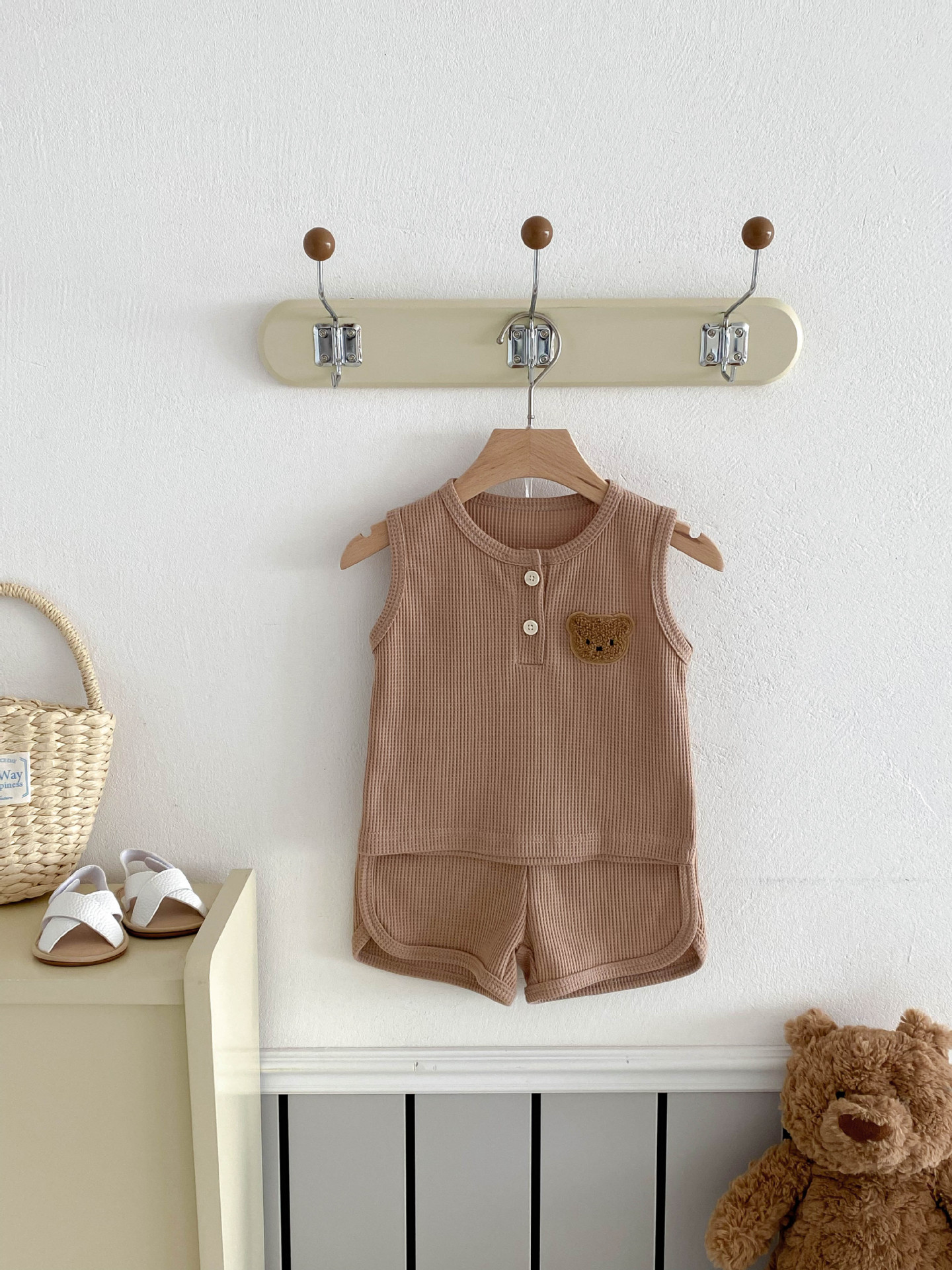 【BE105】日系華夫格紋大頭熊無袖短褲套裝(4色)