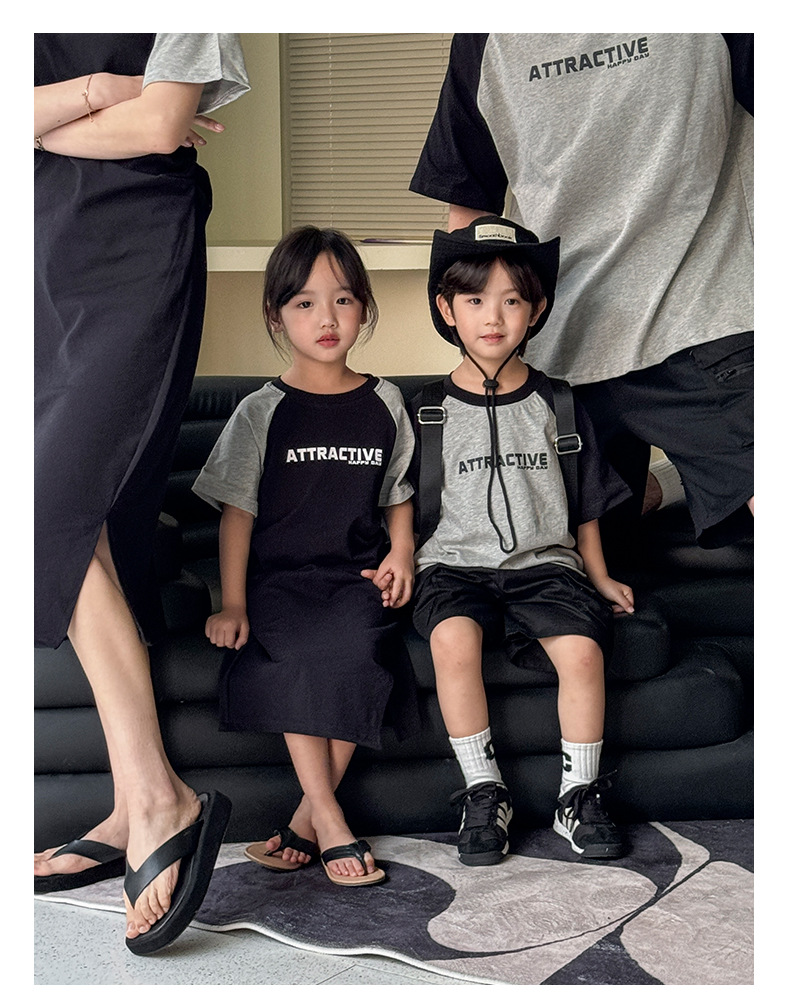 【F159】日系撞色字母全家福親子短袖上衣洋裝(1色)