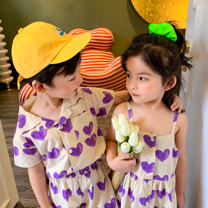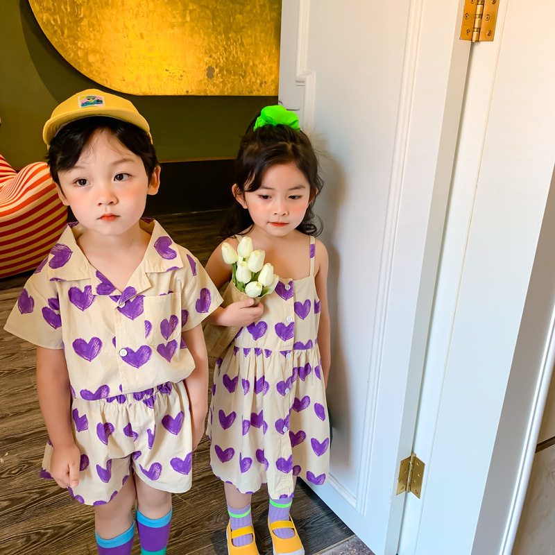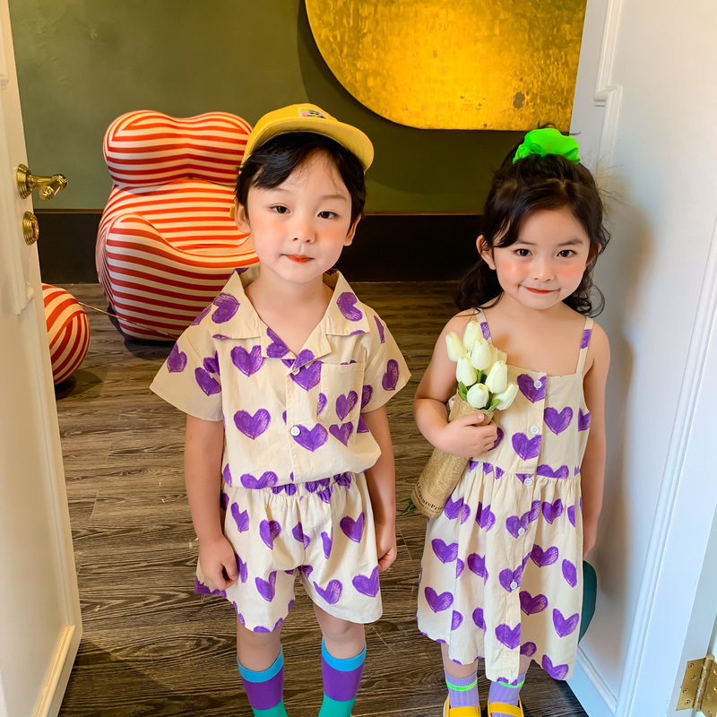 【BS007】日系紫羅蘭愛心兄妹短袖洋裝套裝(1色)
