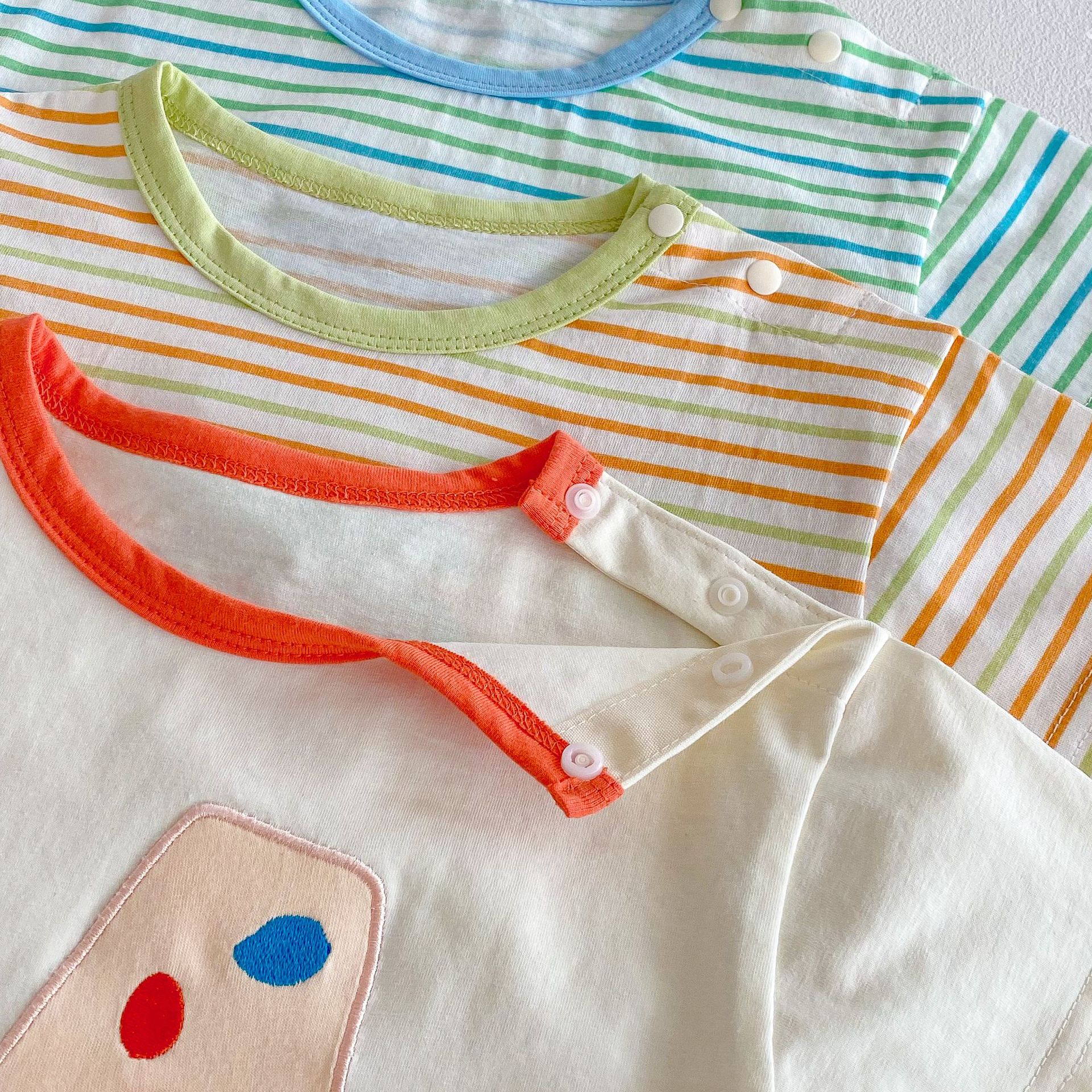 【BU166】韓版條紋貼布短袖上衣(3色)