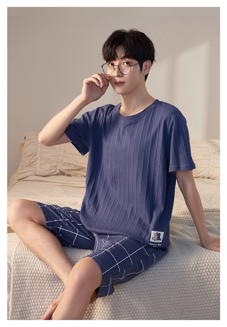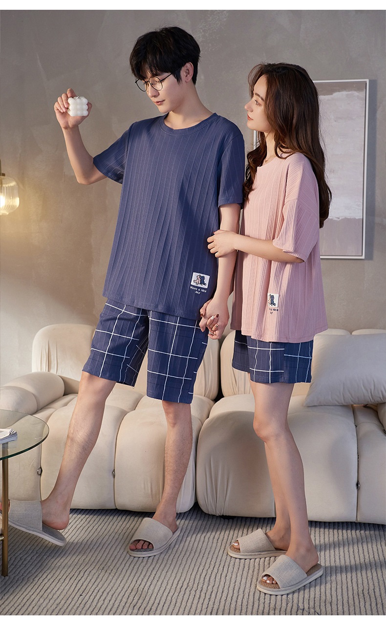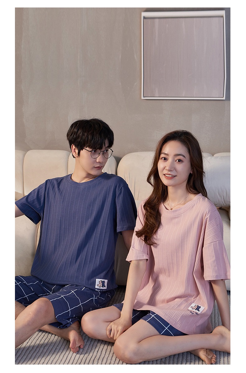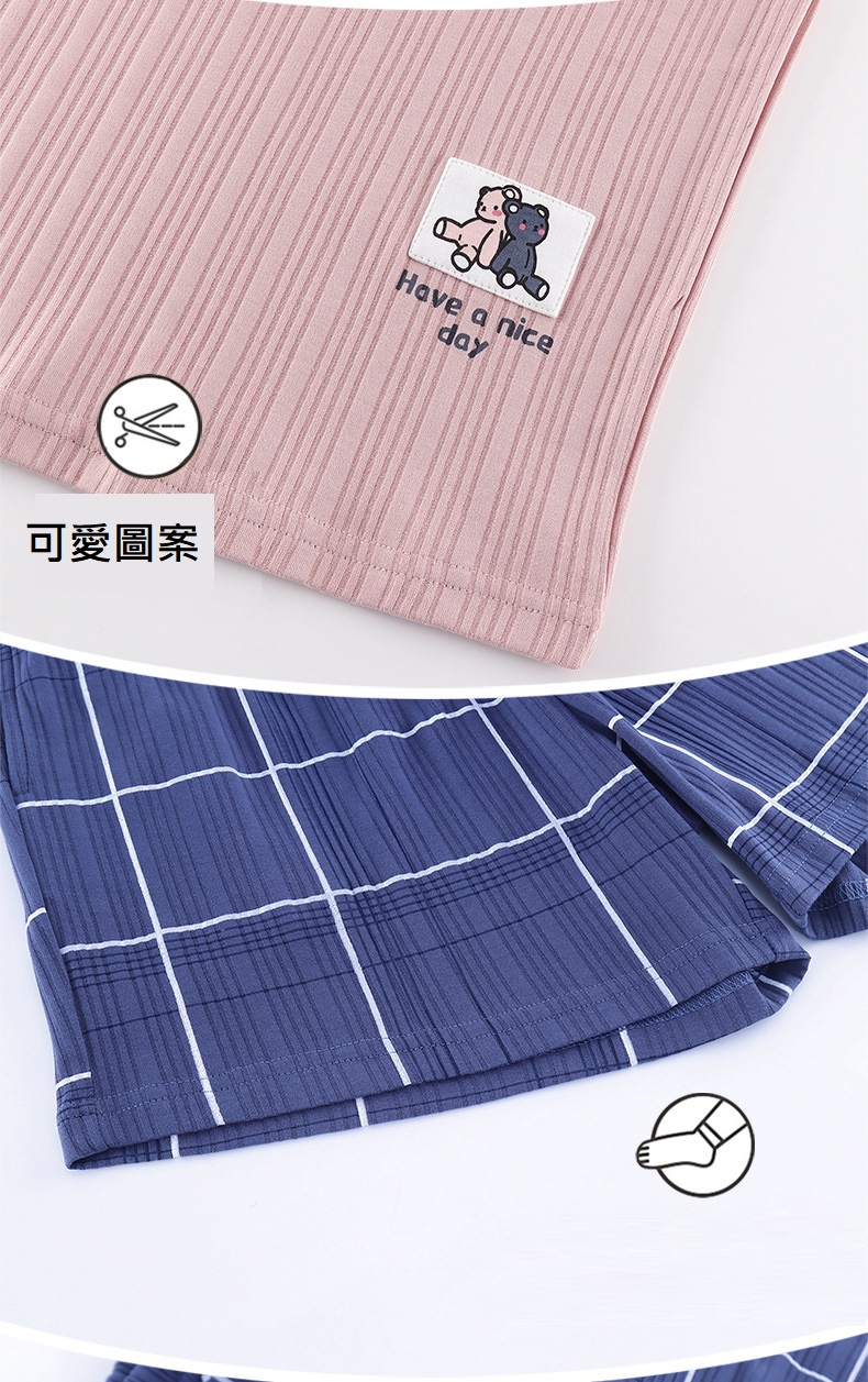 【H353】日系布標熊舒適成套睡衣褲(情侶款)(短袖/短褲)