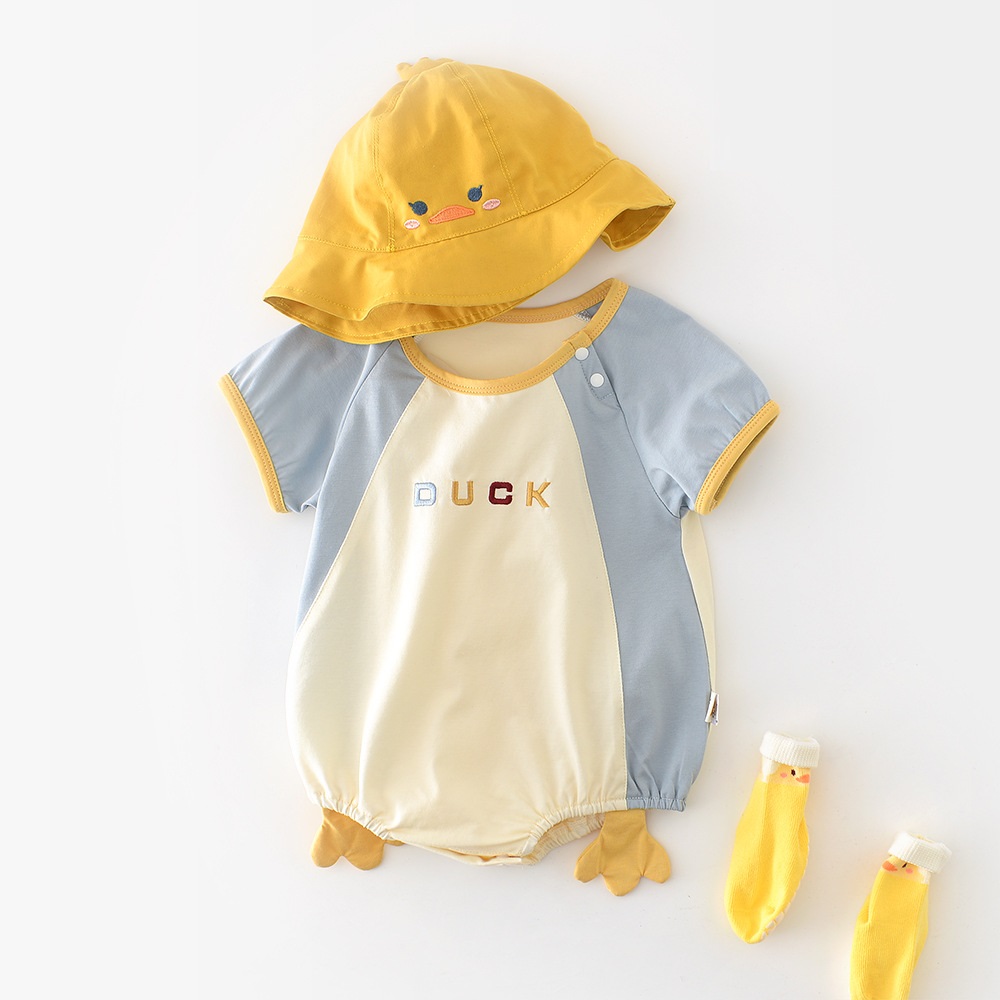 【BA099】韓版立體小鴨腳腳短袖包屁衣(可加購小鴨遮陽帽)(1色)