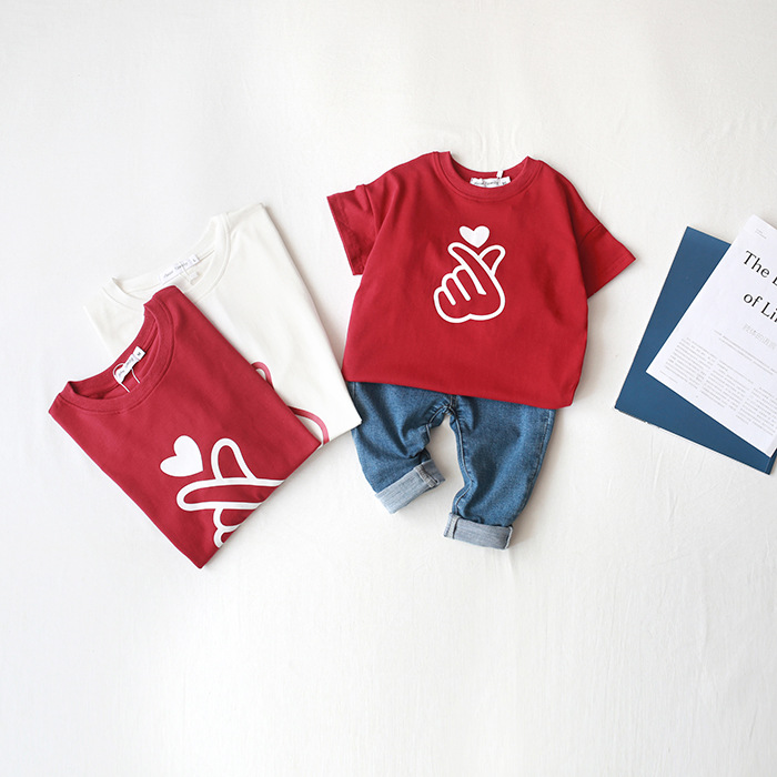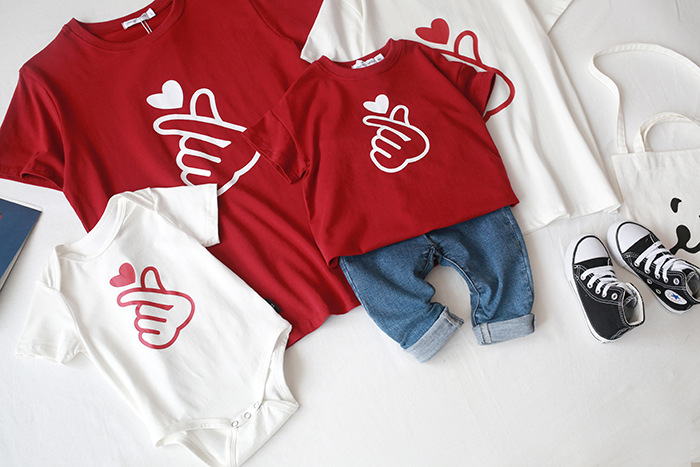 【F007】日系手比愛心全家福親子短袖上衣(2色)