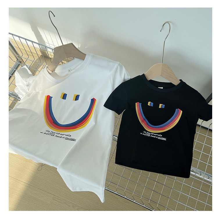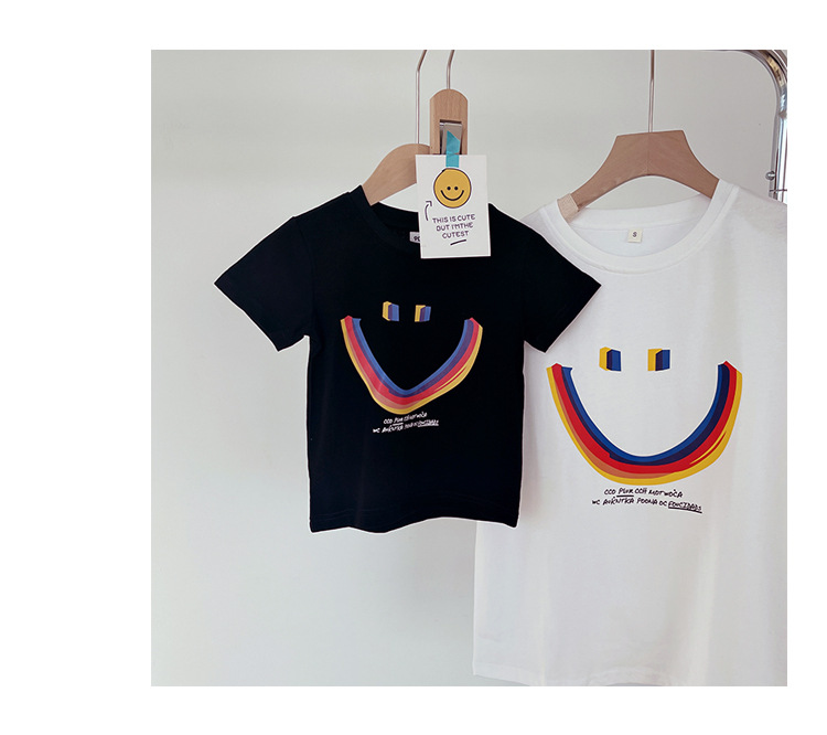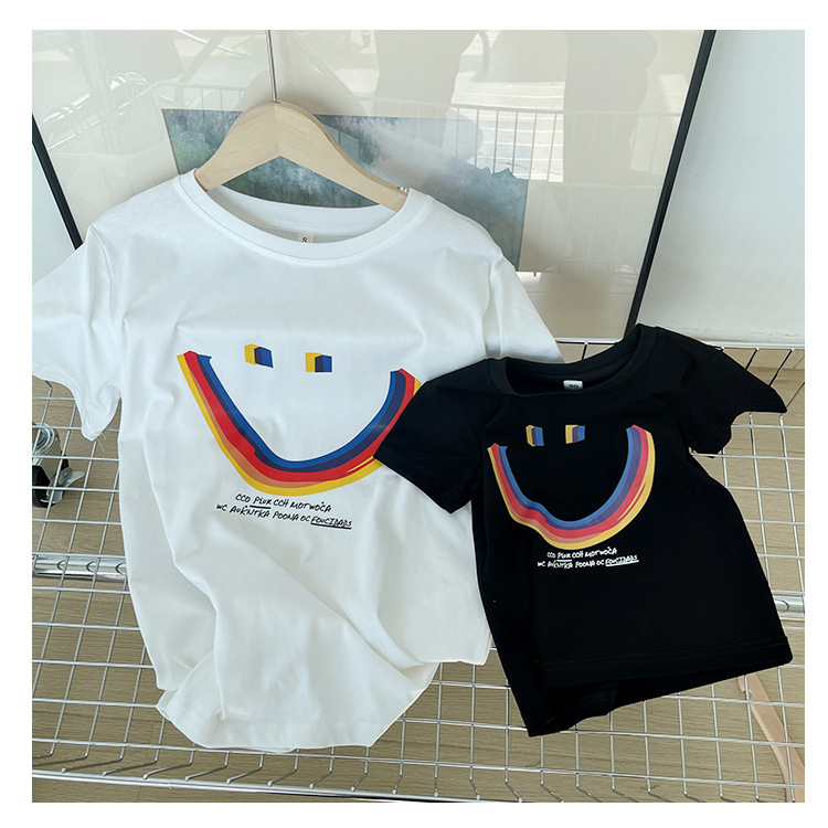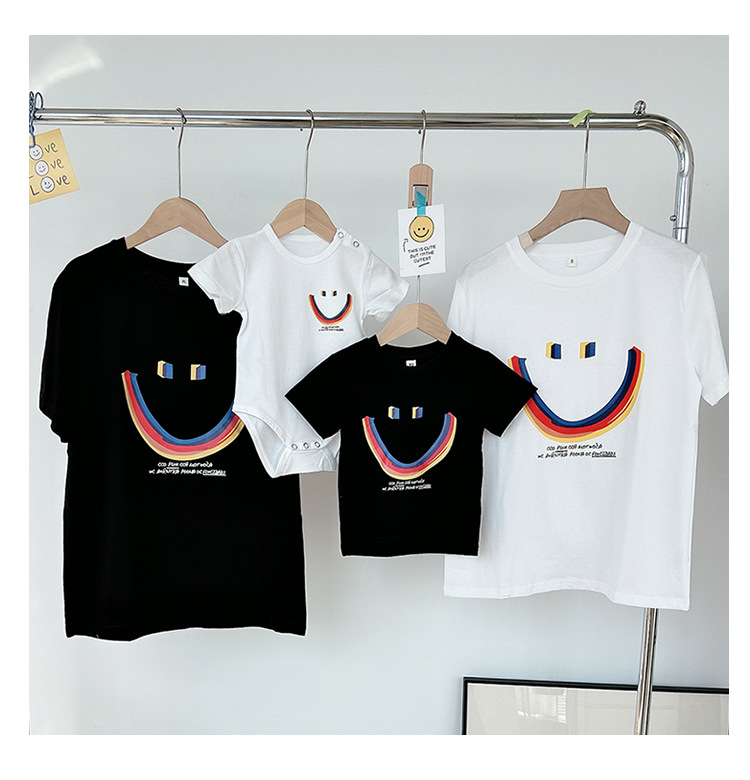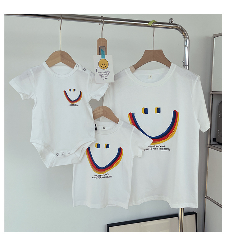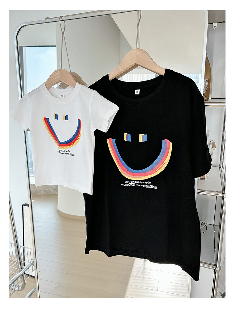 【F008】日系彩虹微笑全家福親子短袖上衣(2色)