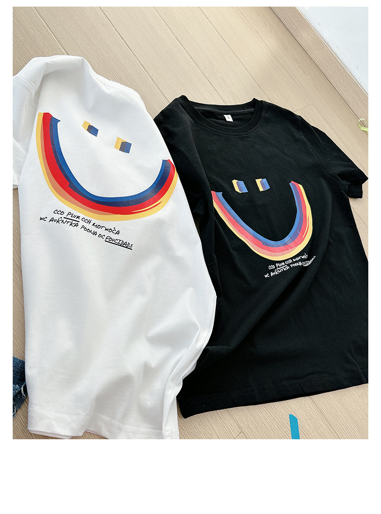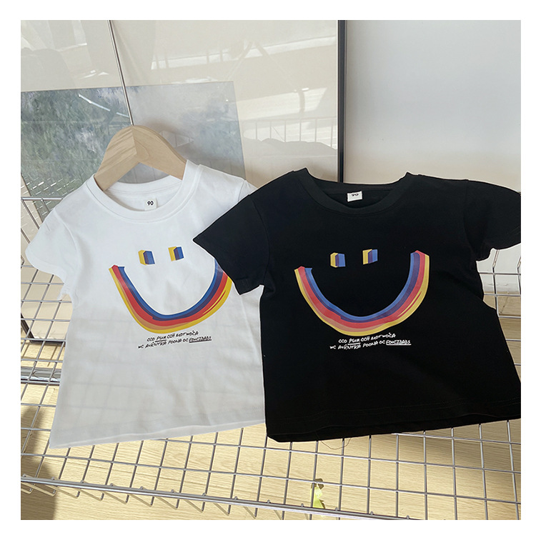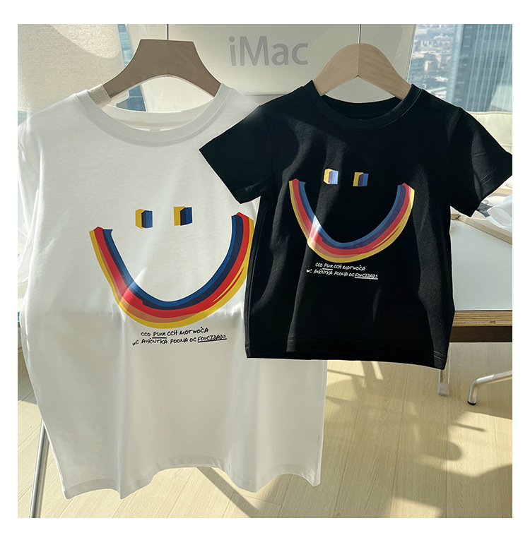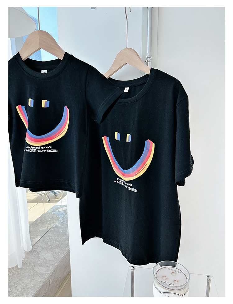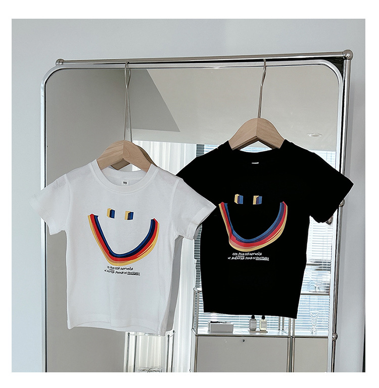 【F008】日系彩虹微笑全家福親子短袖上衣(2色)