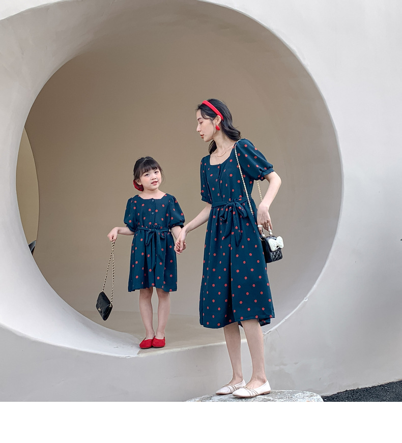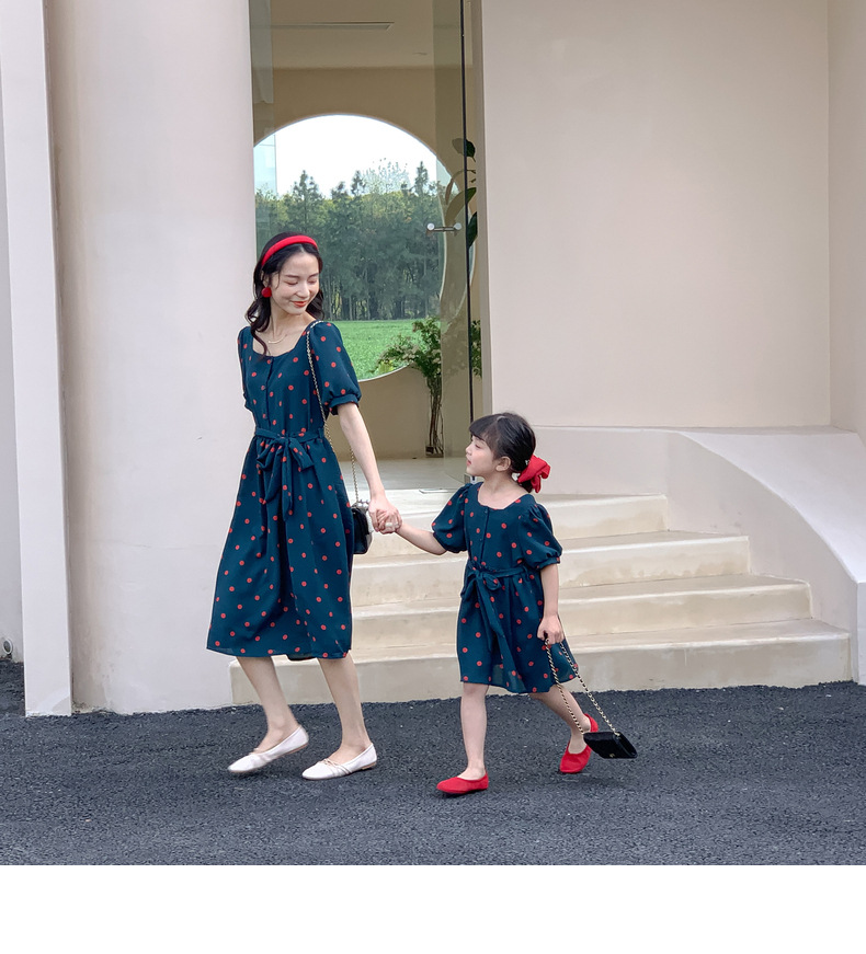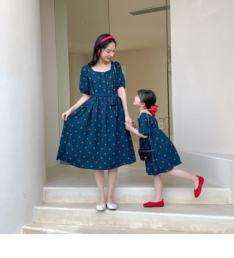 【F034】韓版撞色點點親子母女短袖洋裝(1色)