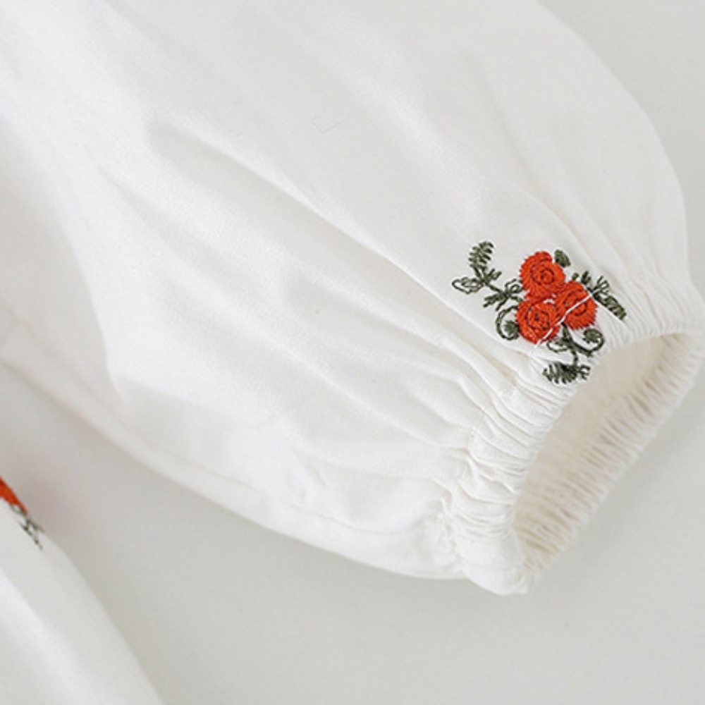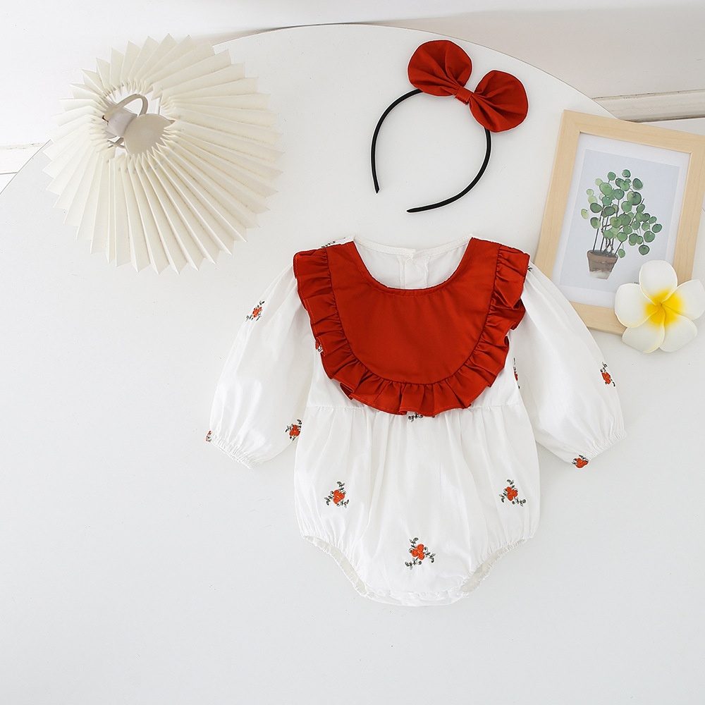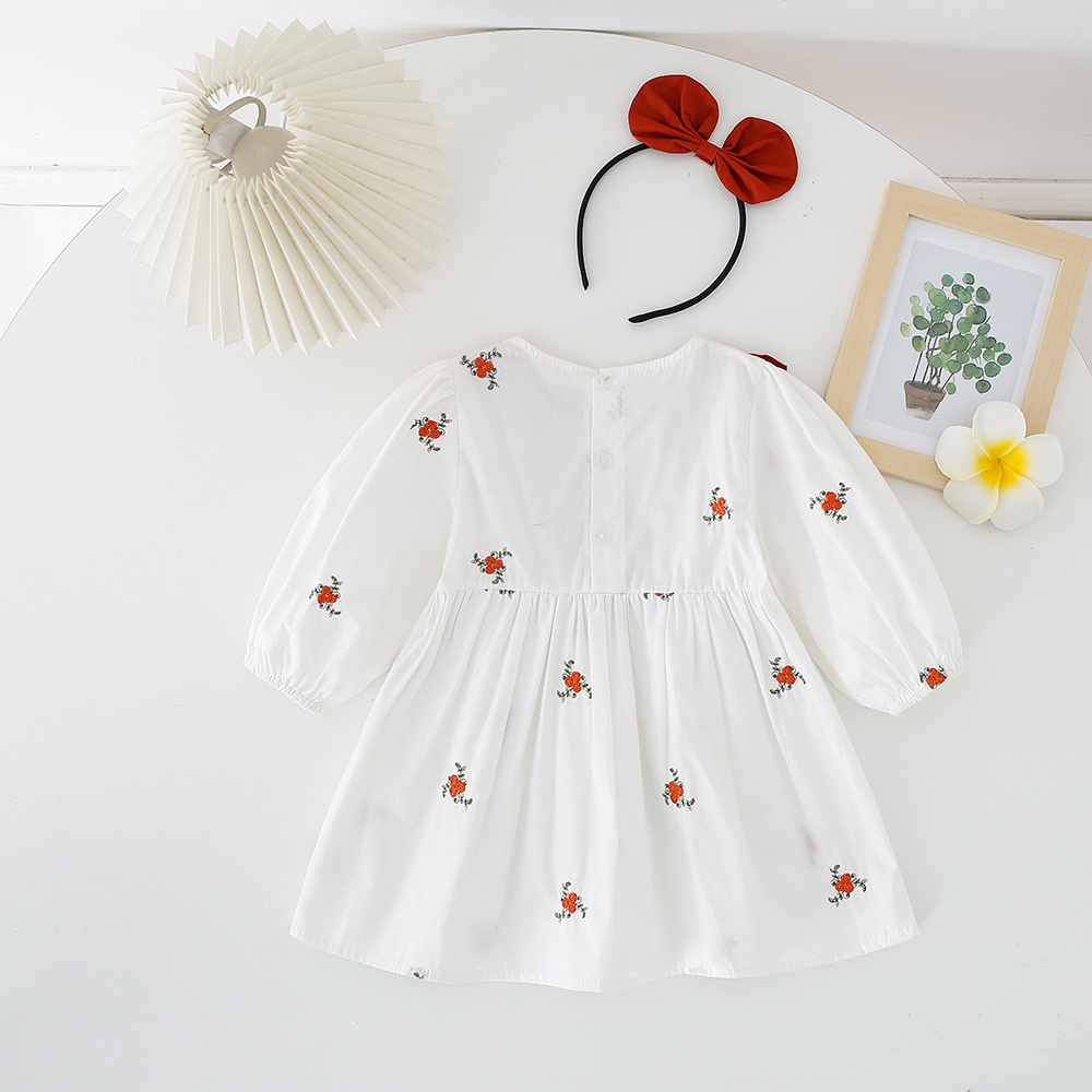 【BS075】韓版圓領刺繡小碎花長袖包屁衣小洋裝(送髮箍)(1色)