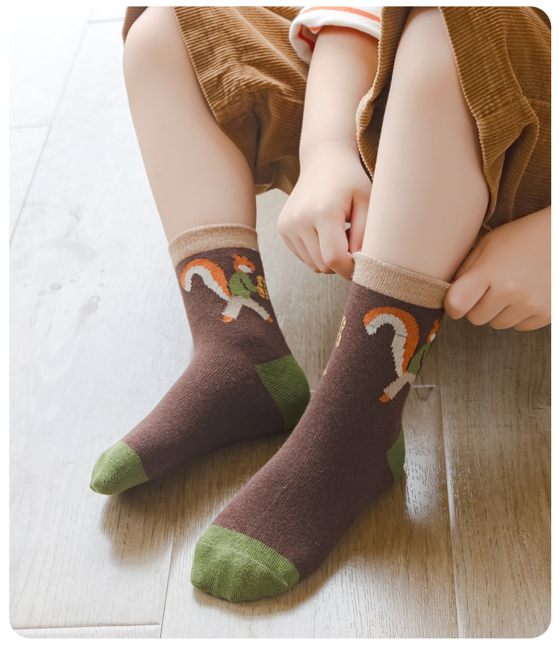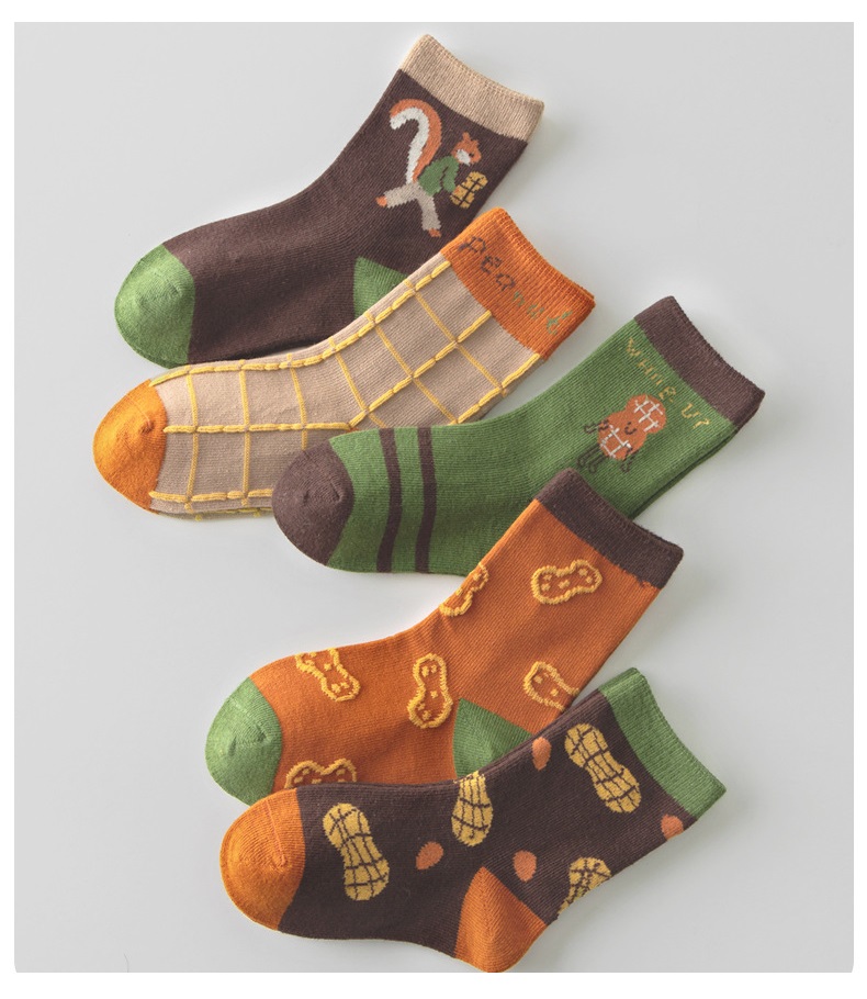 【SB057】童襪|韓版花生松鼠中筒襪(5雙1組)