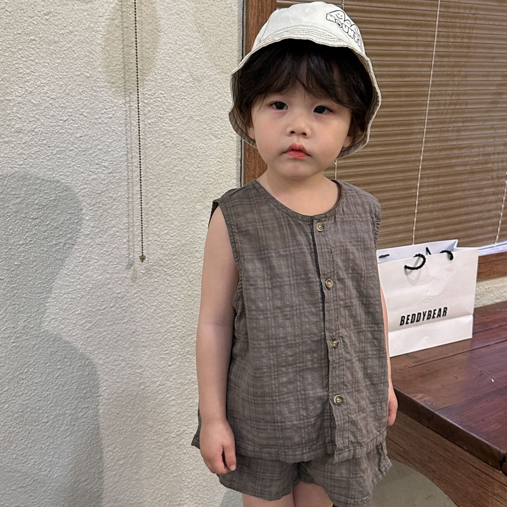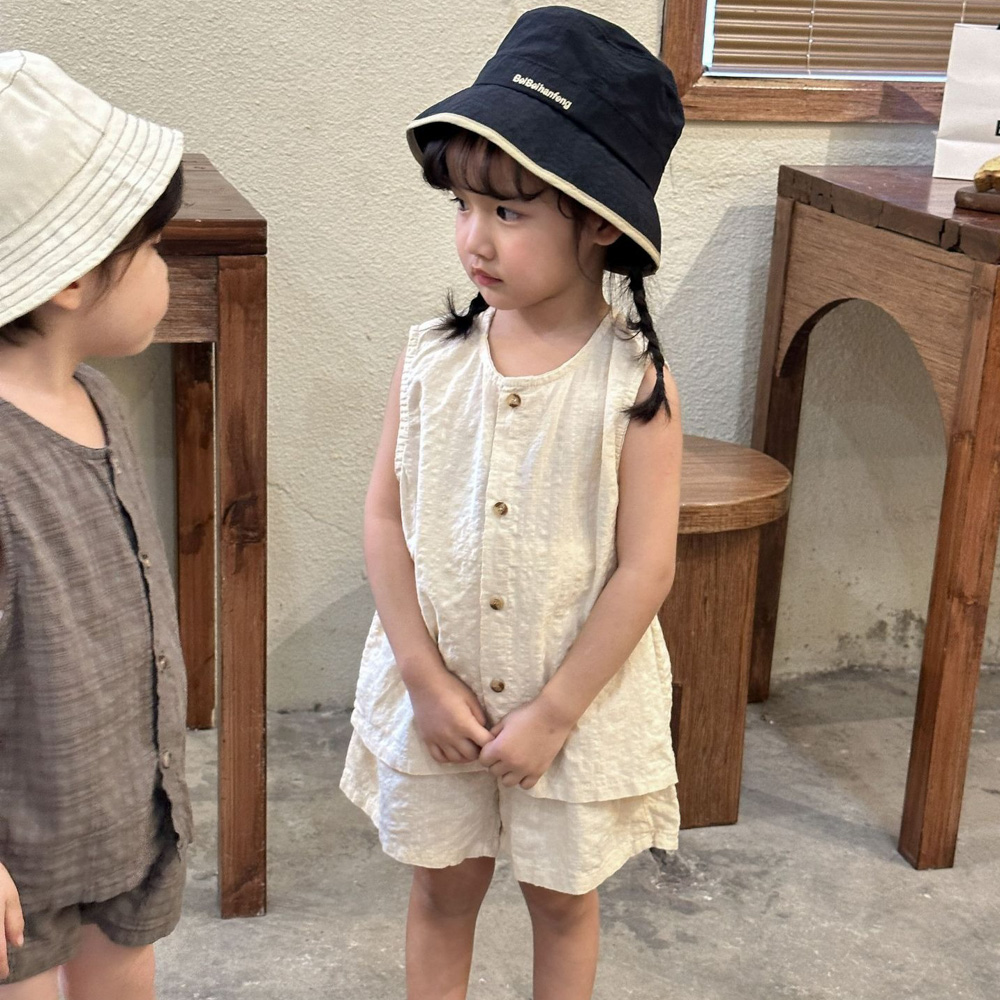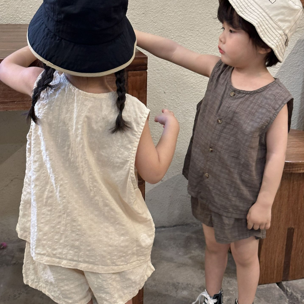 【BS104】韓版純色兄妹無袖套裝(1色)