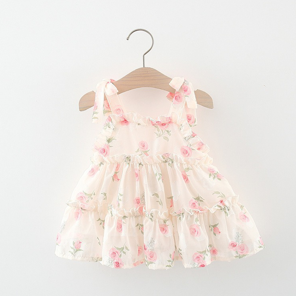 【BG649】日系水彩玫瑰吊帶無袖澎澎洋裝(1色)