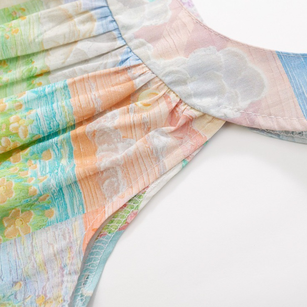 【BG758】日系繽紛拼接油畫無袖澎澎洋裝(1色)