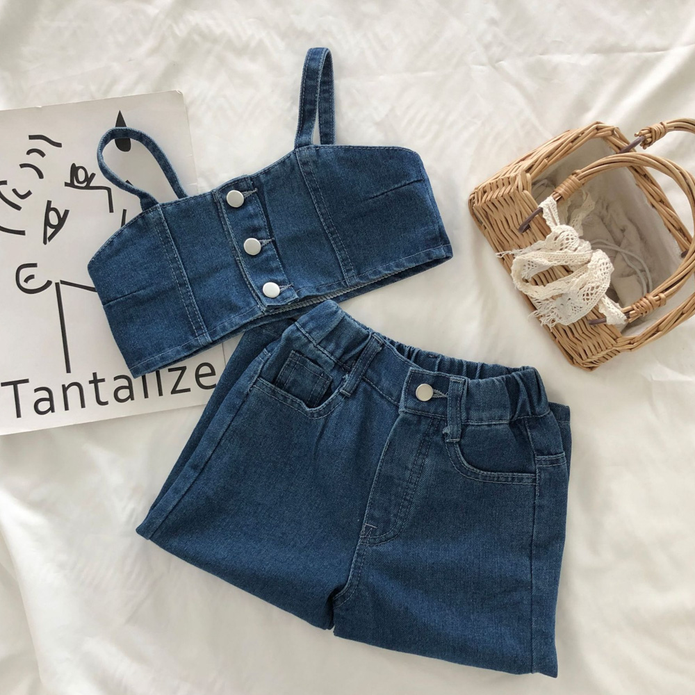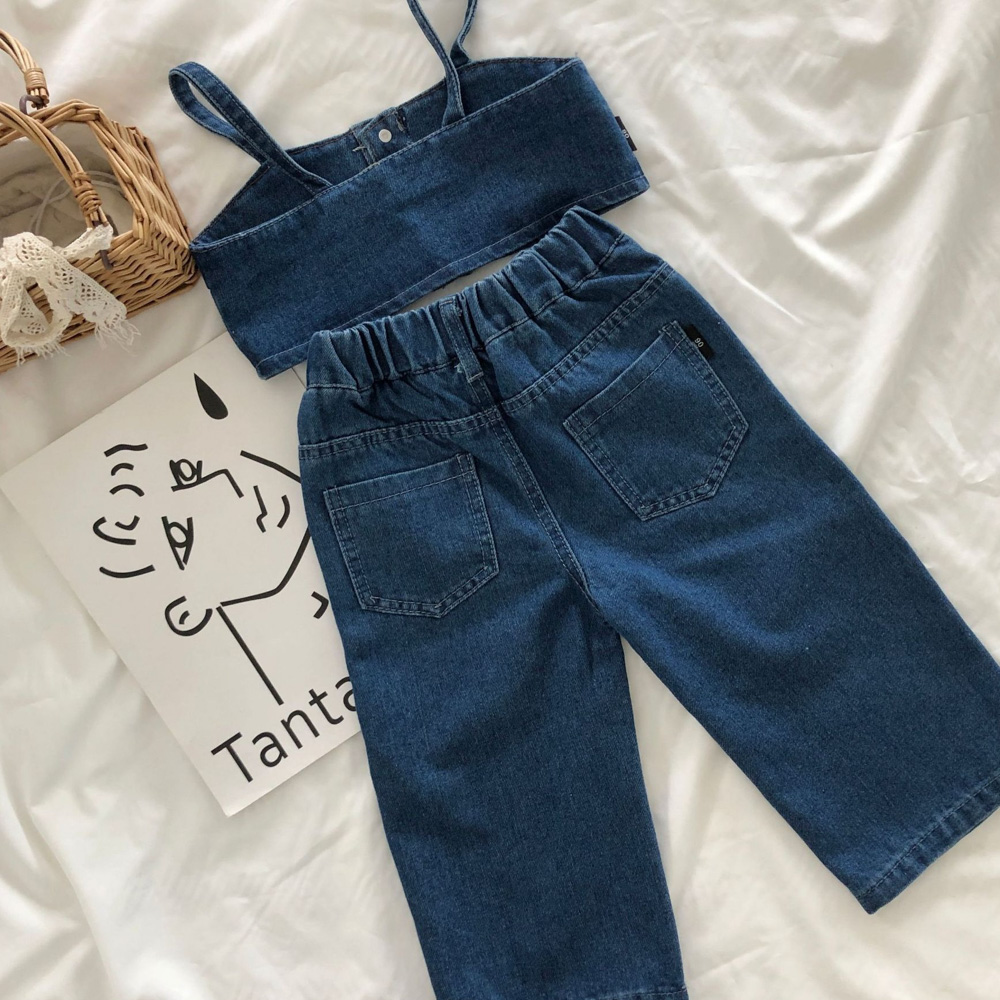 可愛精緻的小女孩無袖長褲套裝,