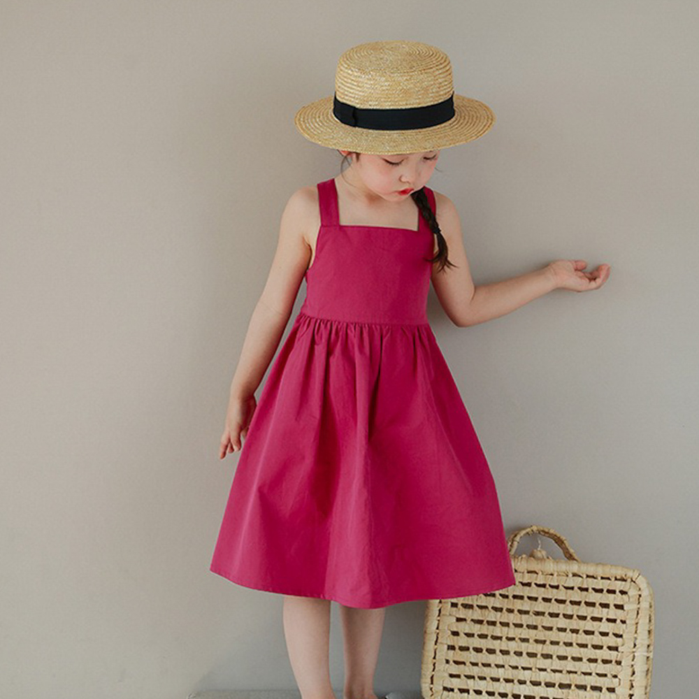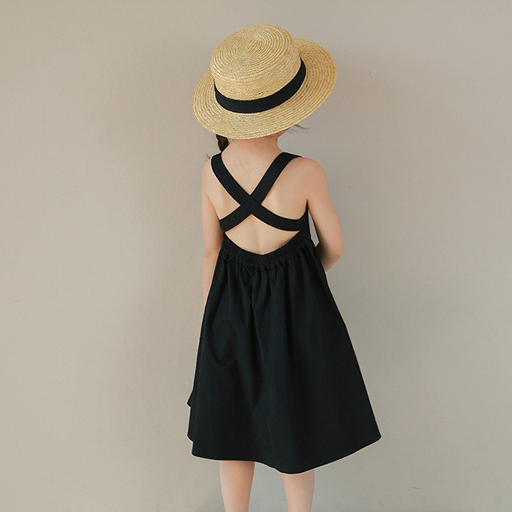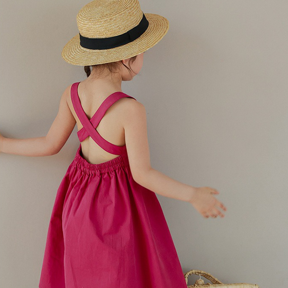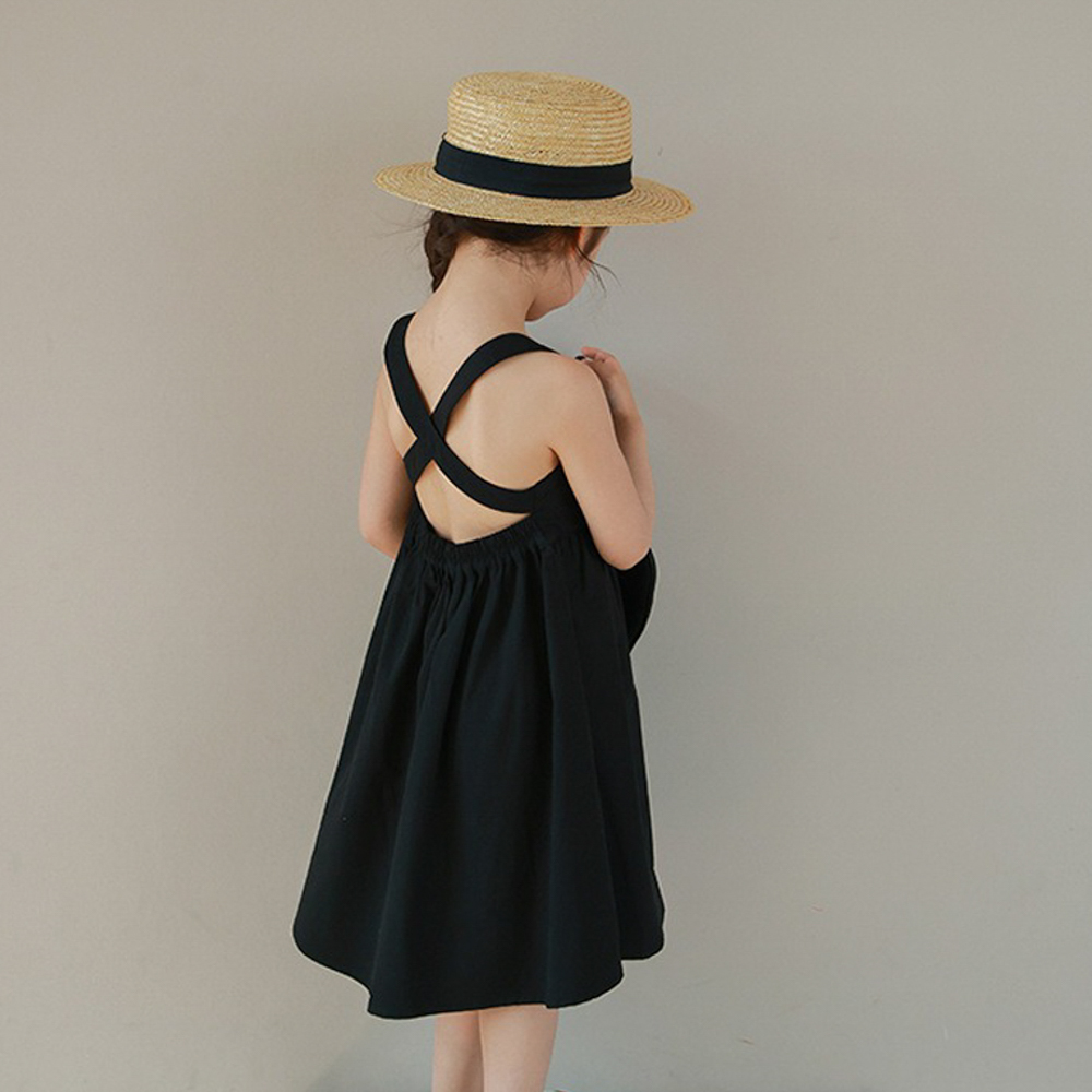【BG732】日系純色後背交叉無袖澎澎洋裝(2色)