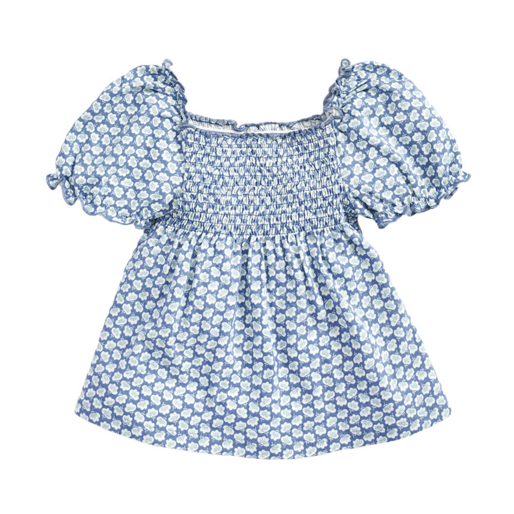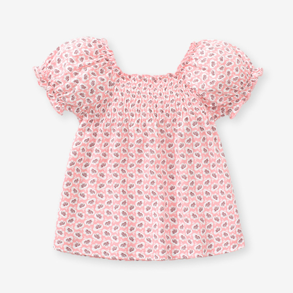 【BU104】歐美小花朵泡泡短袖上衣(2色)