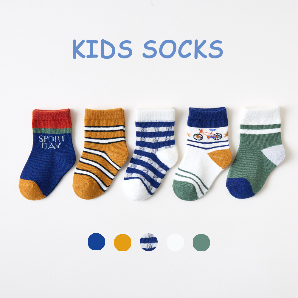 【SB070】童襪|日系腳踏車條紋中筒襪(5雙1組)