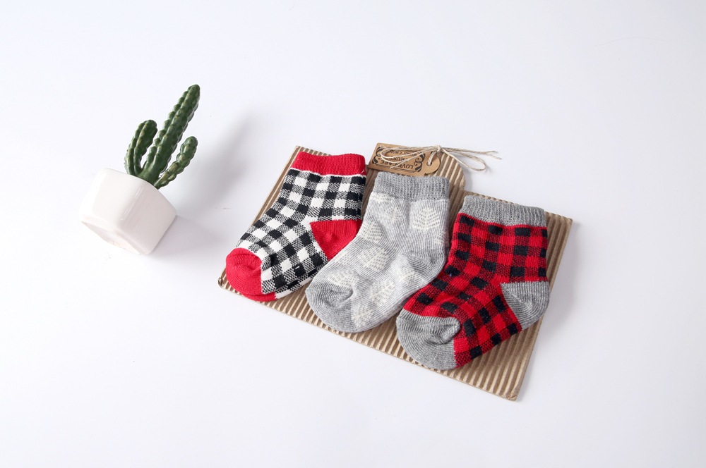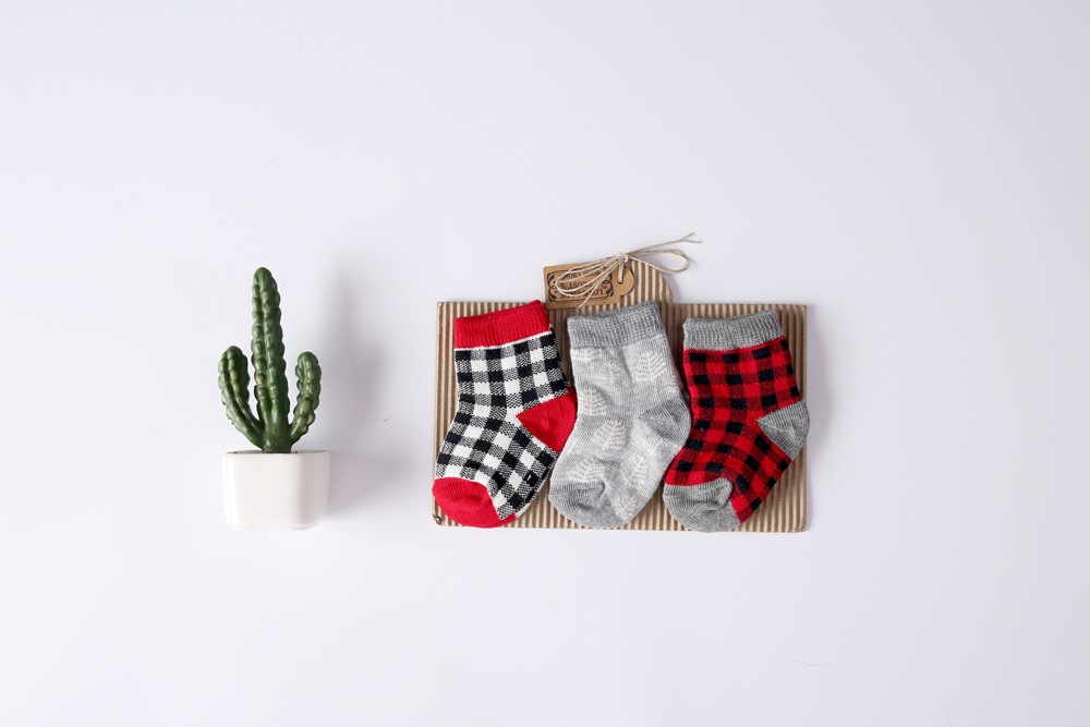 【SB065】童襪|韓版小方格中筒襪(3雙1組)