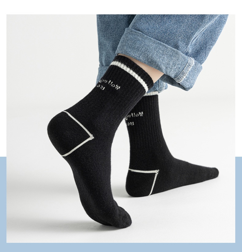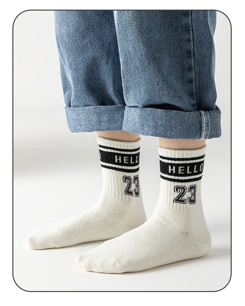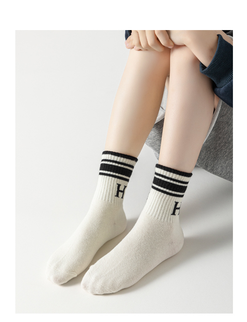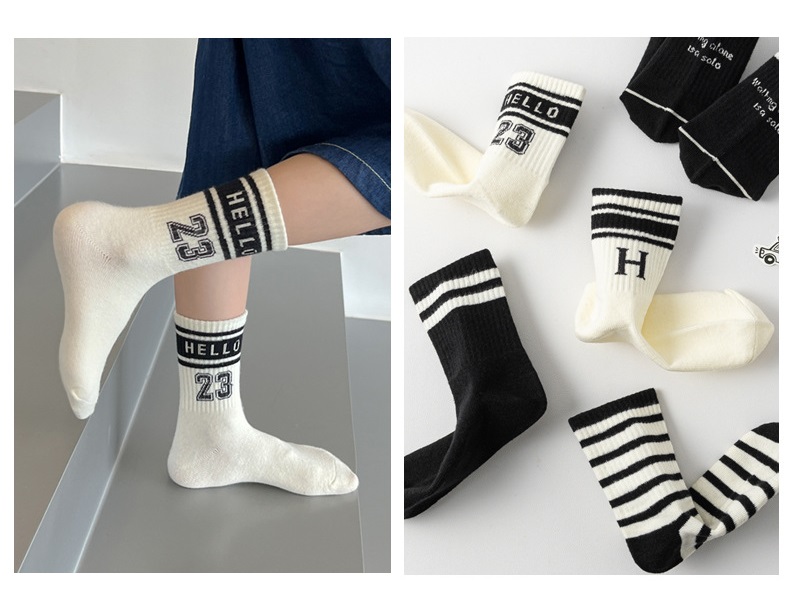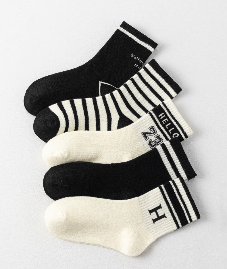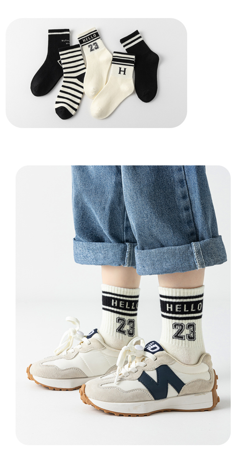 【SB074】童襪|韓版黑白條紋字母中筒襪(5雙1組)
