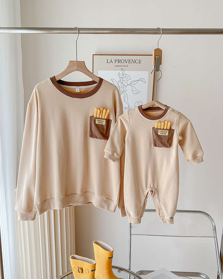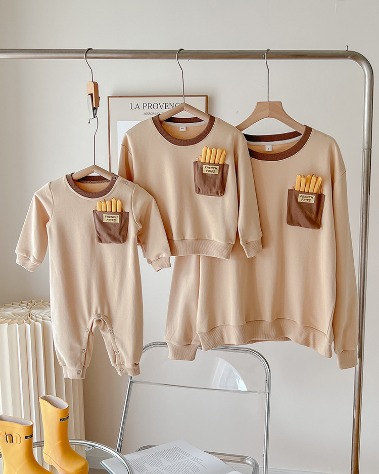 【F081】日系立體薯條全家福親子長袖上衣(1色)