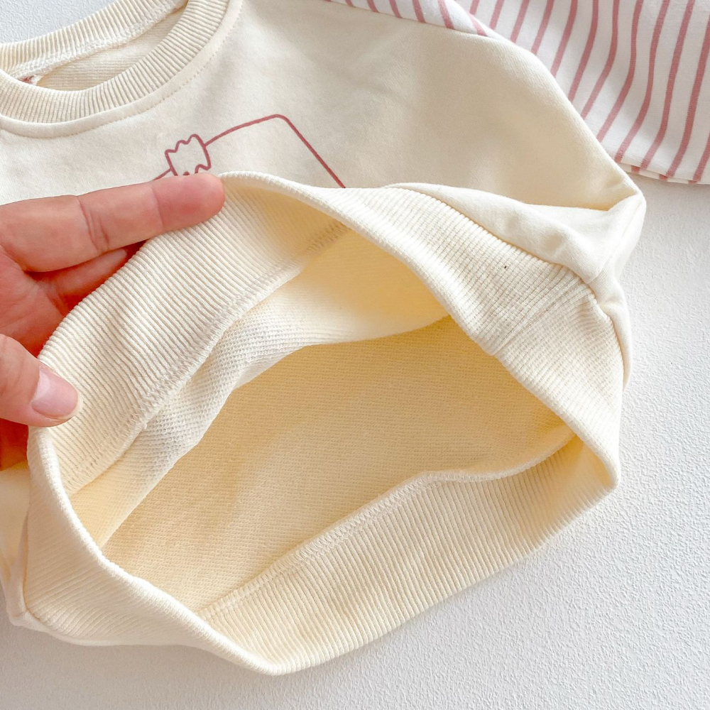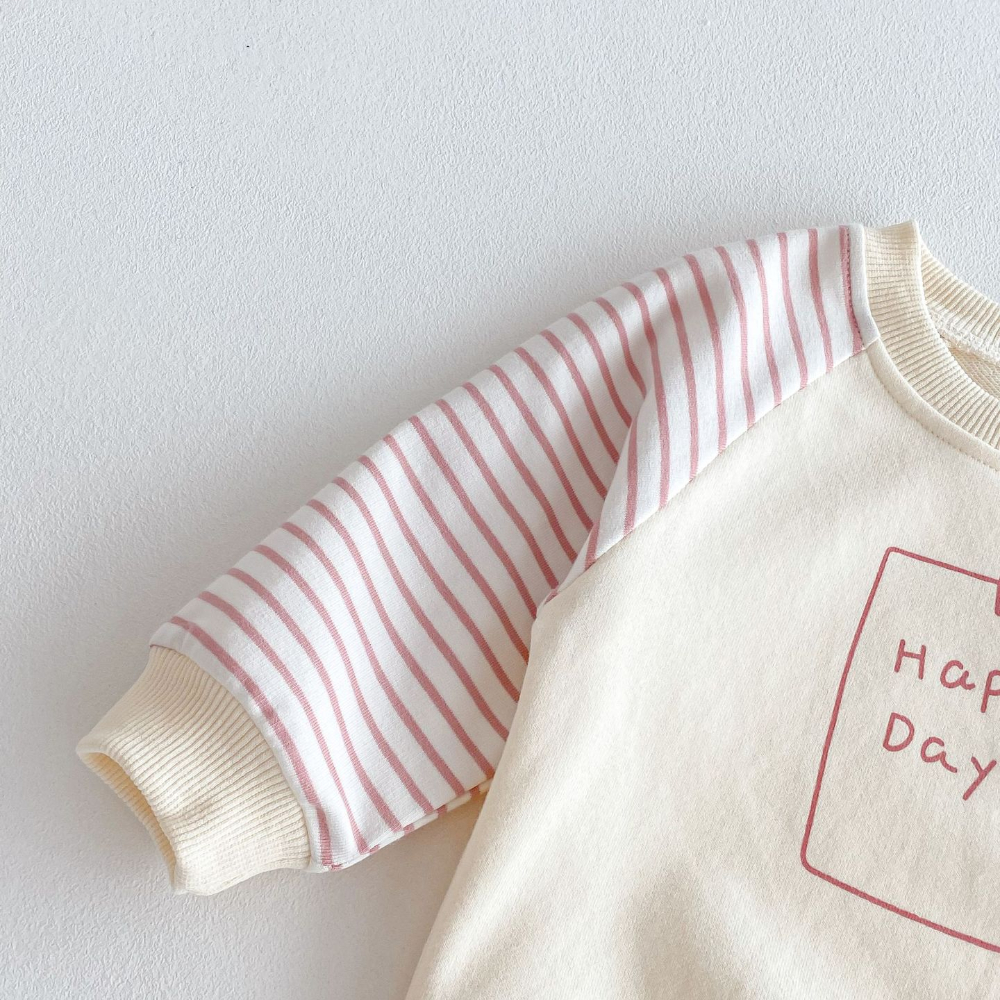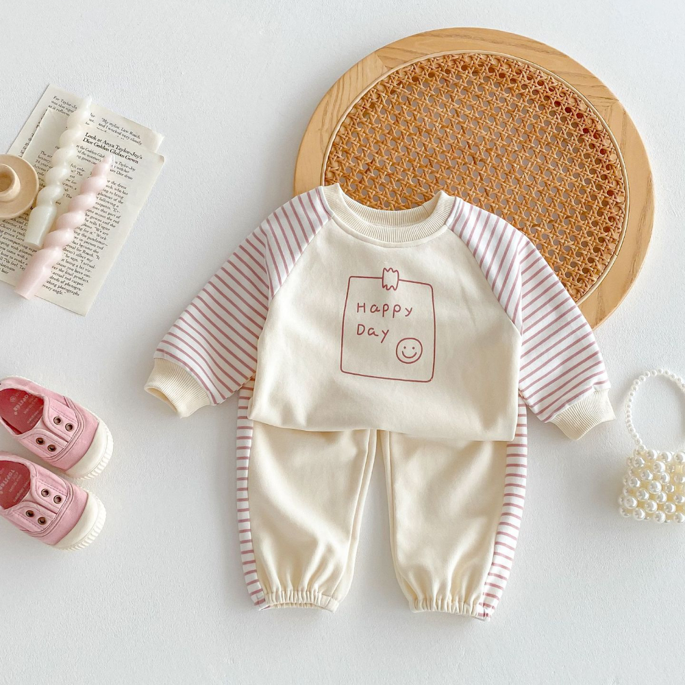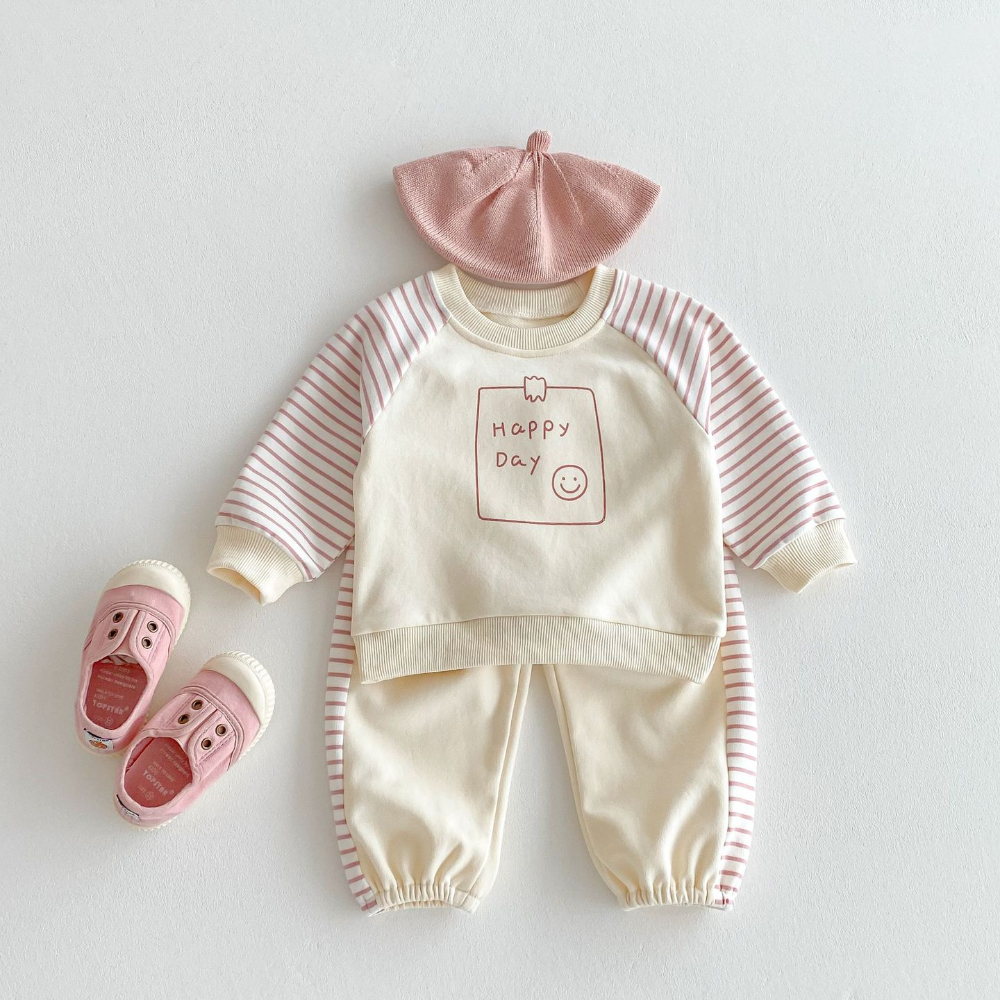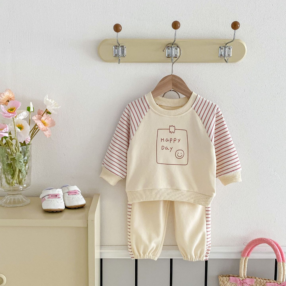 【BE070】日系字母笑臉條紋長袖長褲套裝(1色)