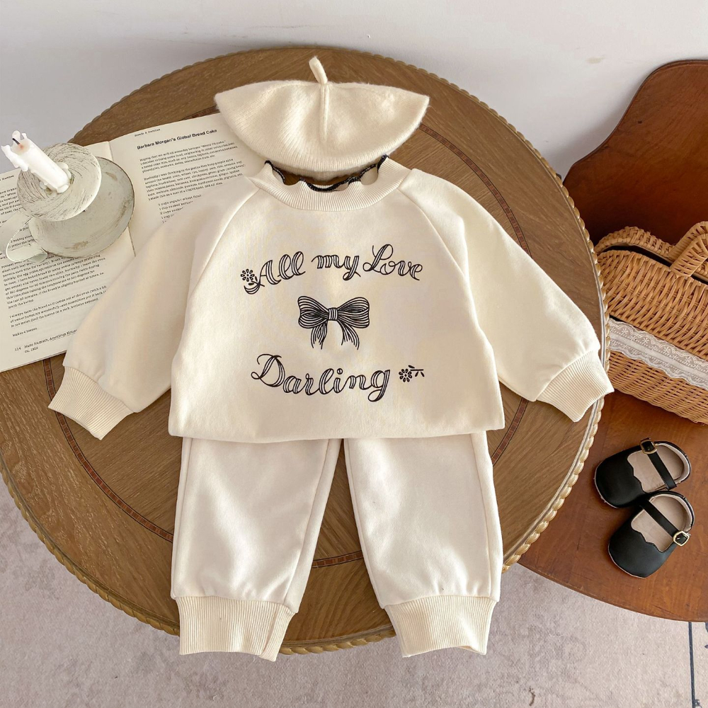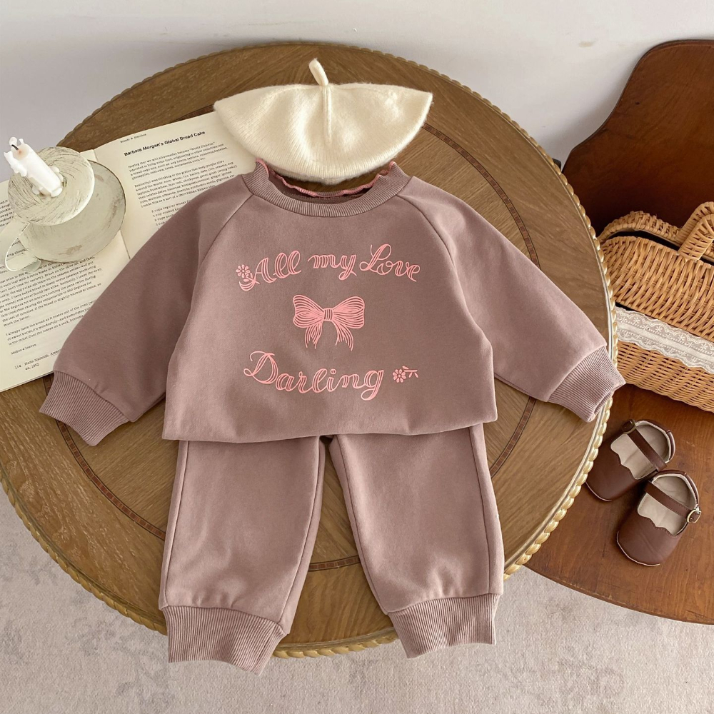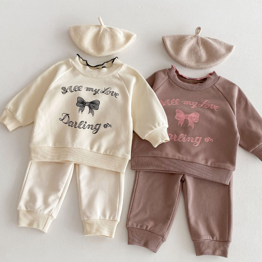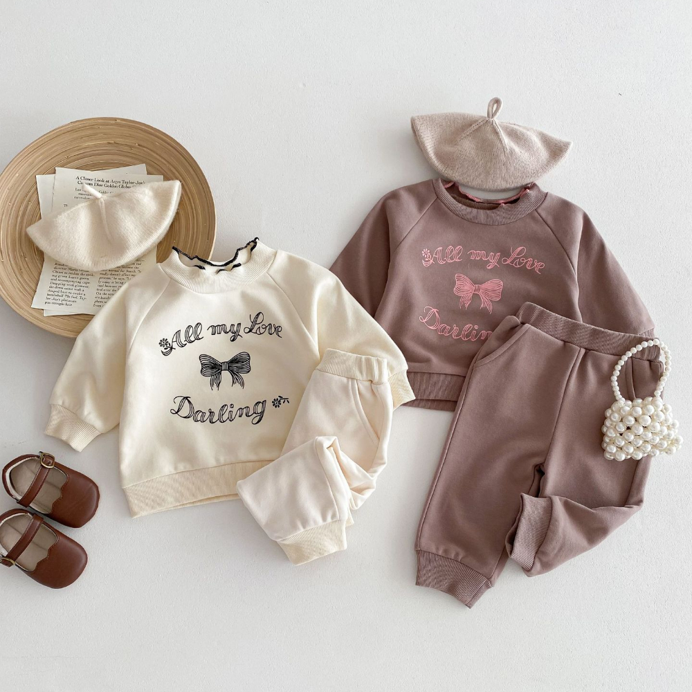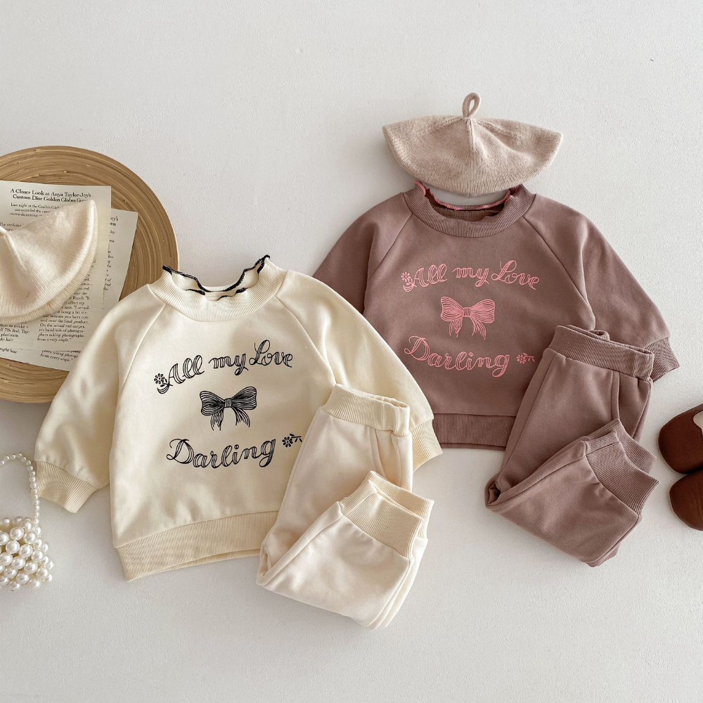 【BE073】日系字母蝴蝶結長袖長褲套裝(2色)