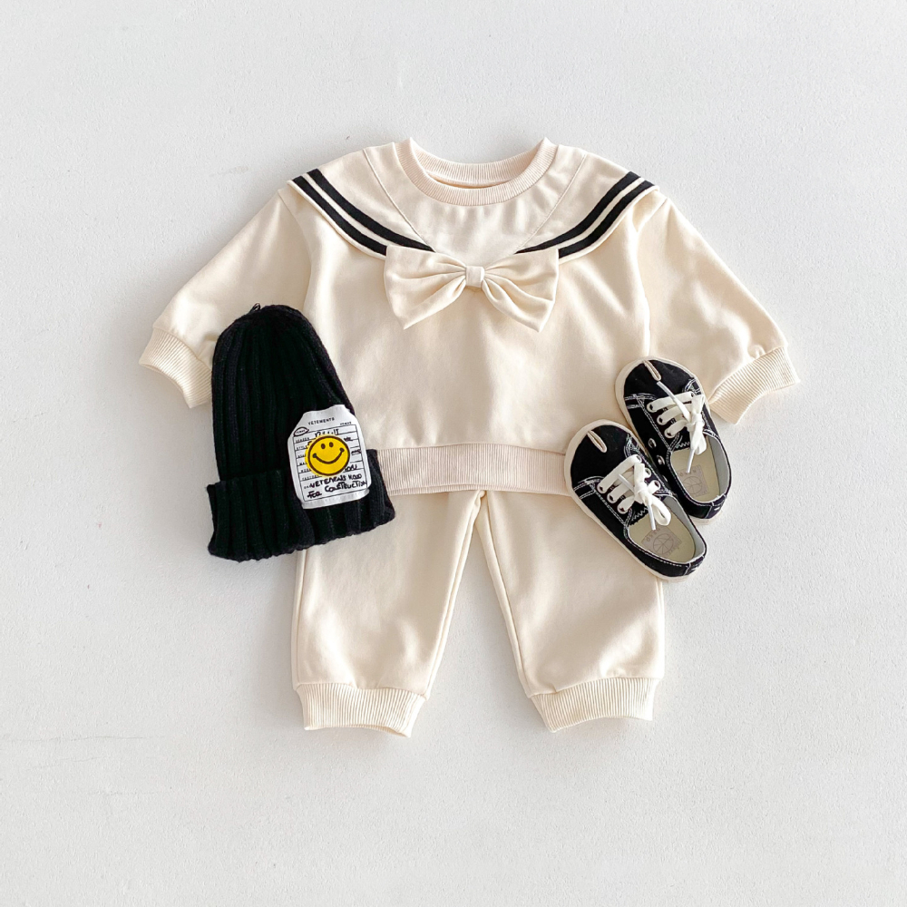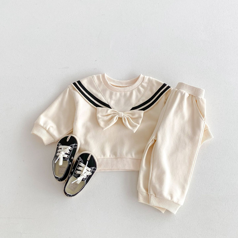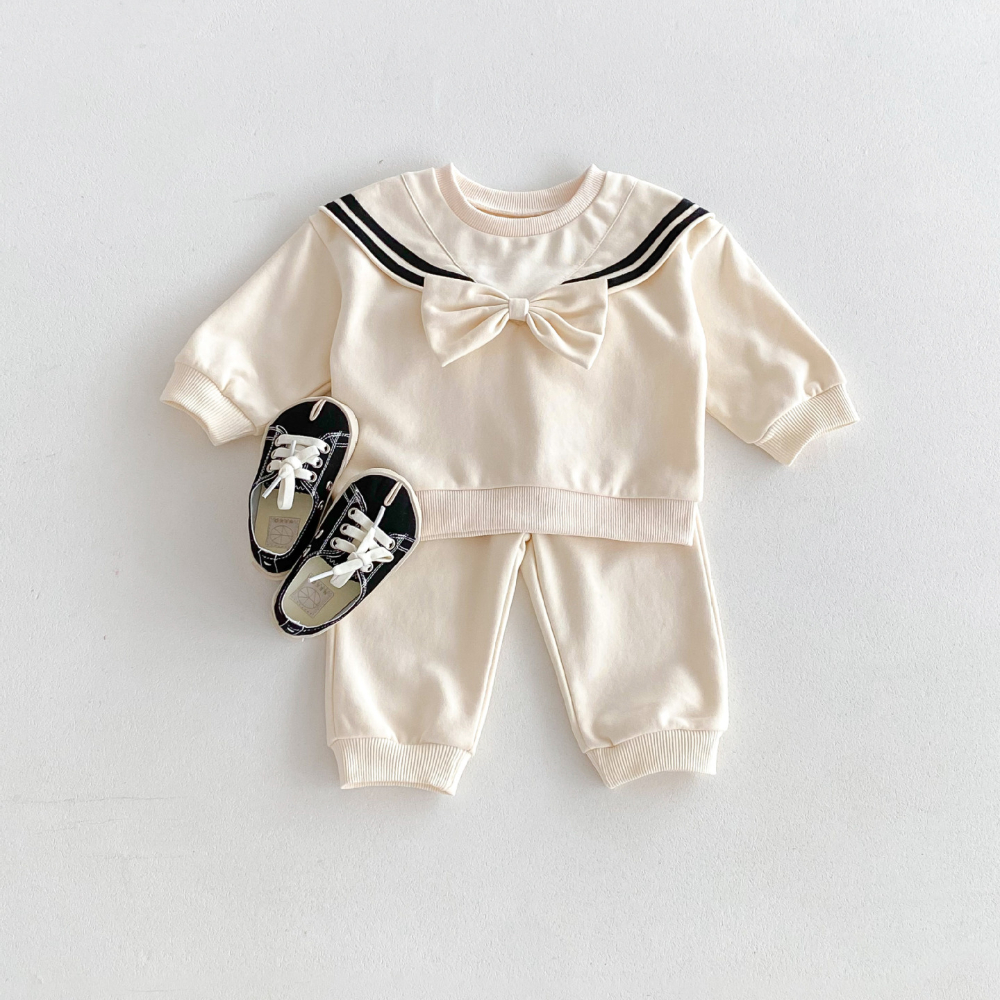 【BE083】日系學院風蝴蝶結長袖長褲套裝(1色)