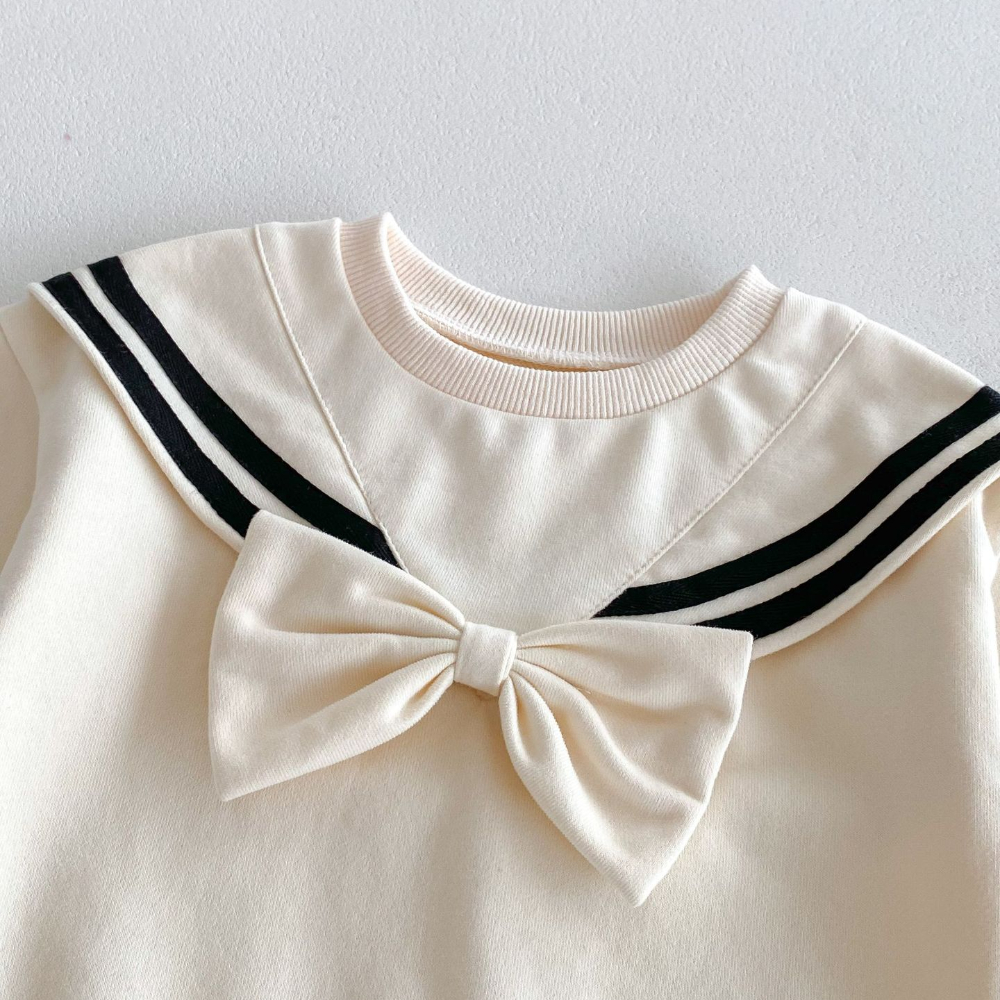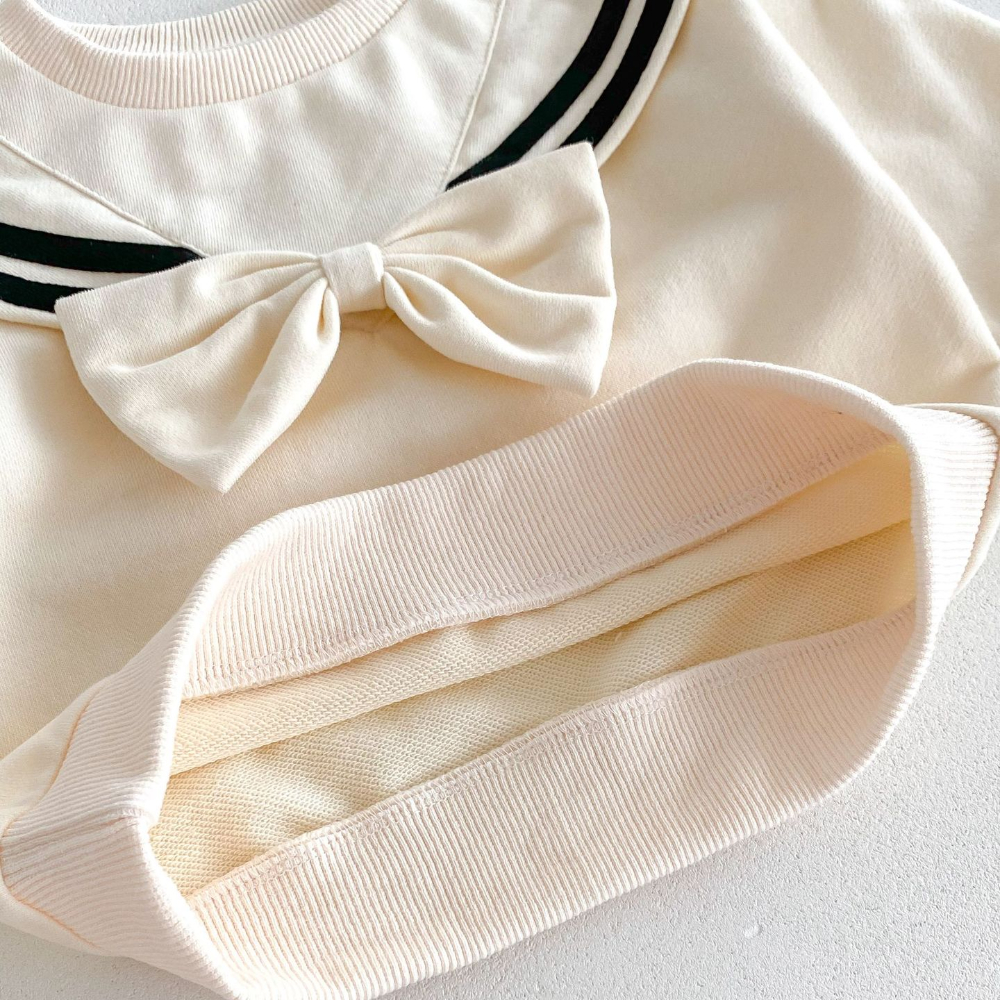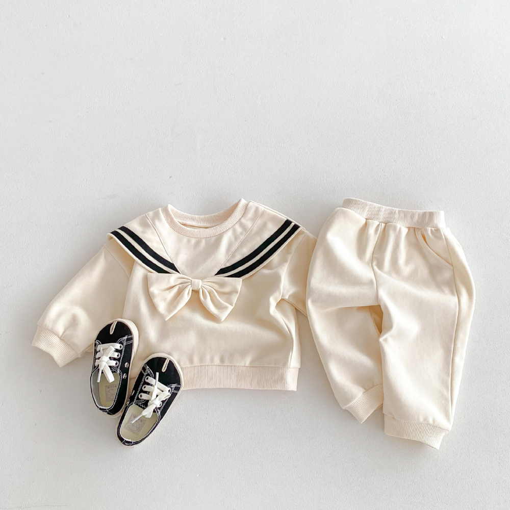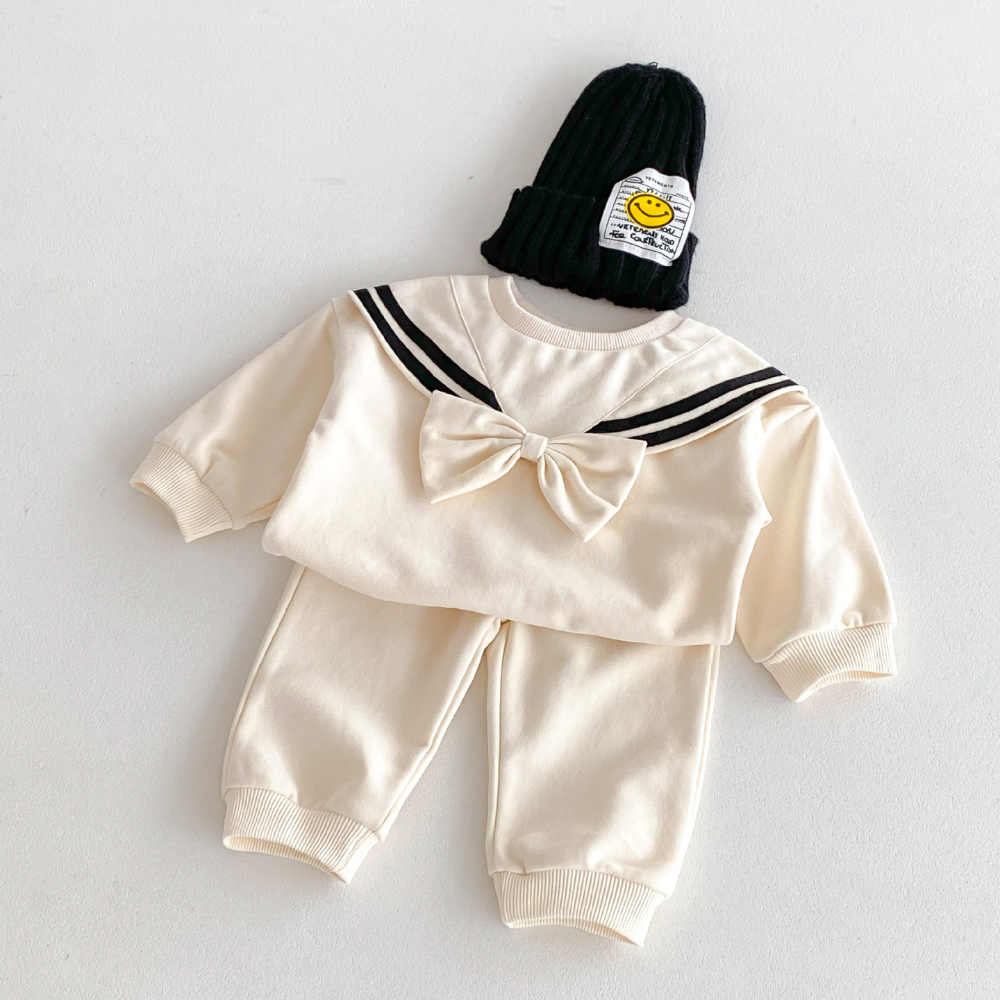 【BE083】日系學院風蝴蝶結長袖長褲套裝(1色)