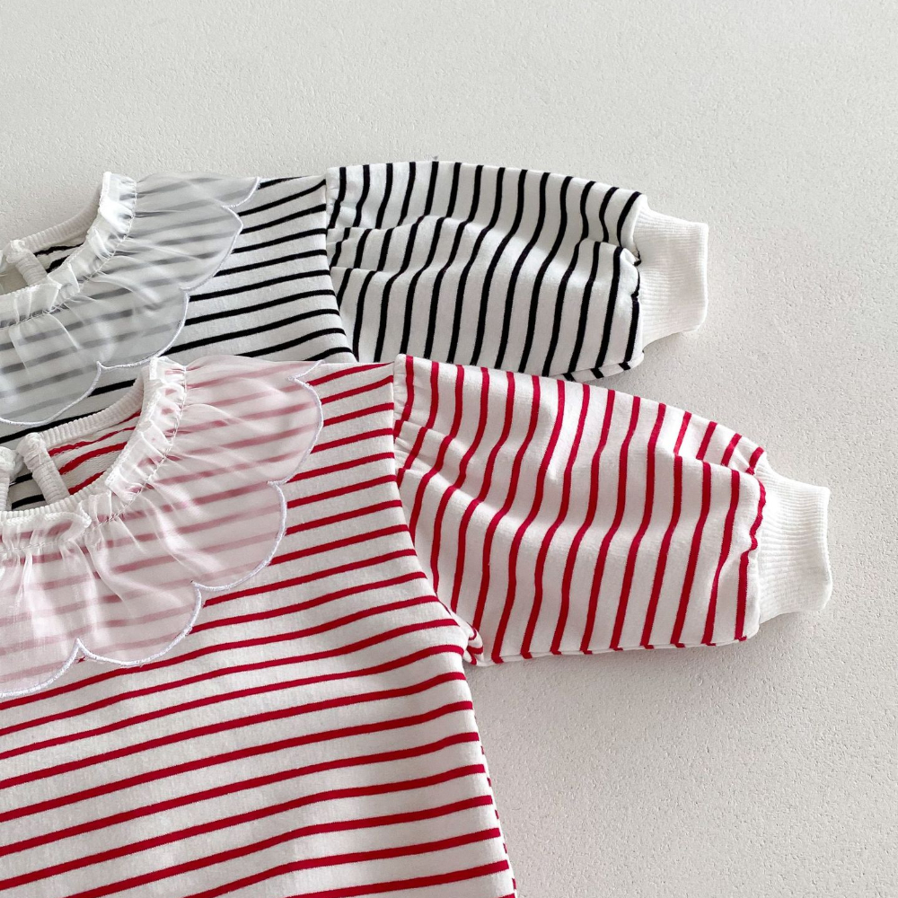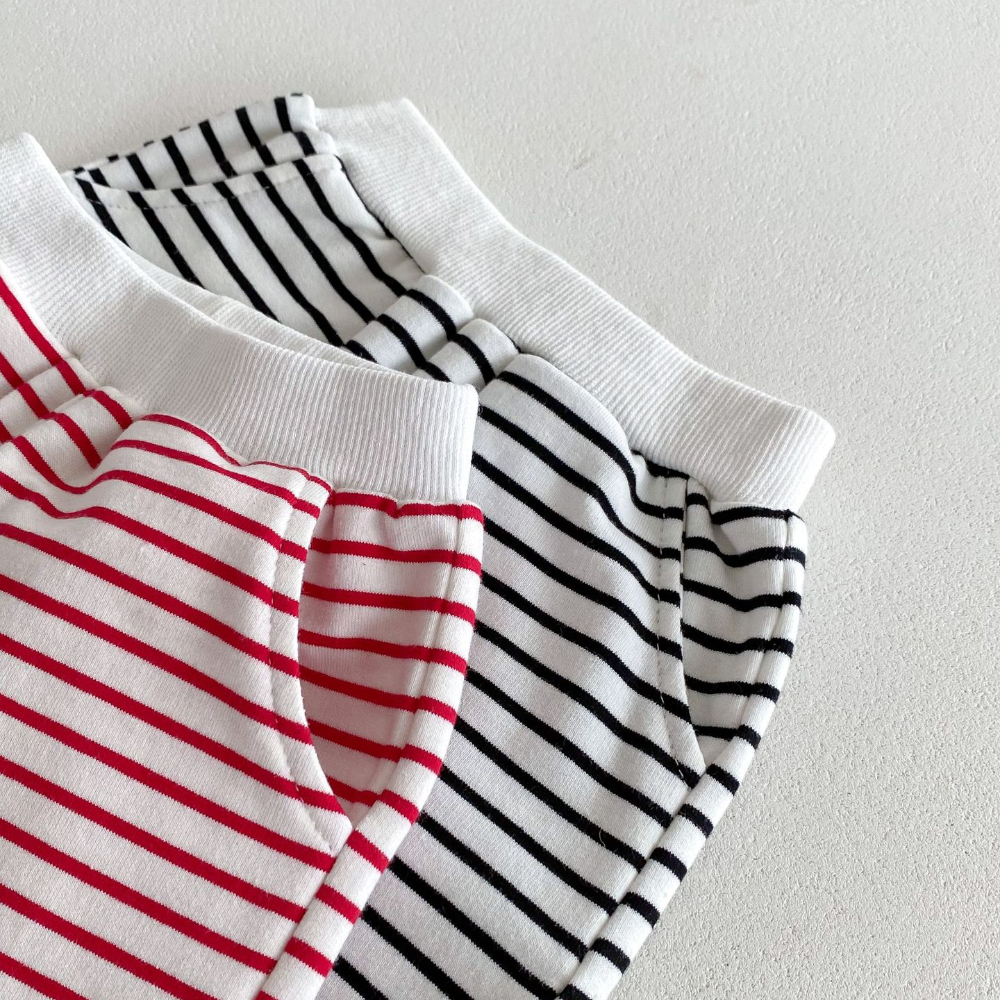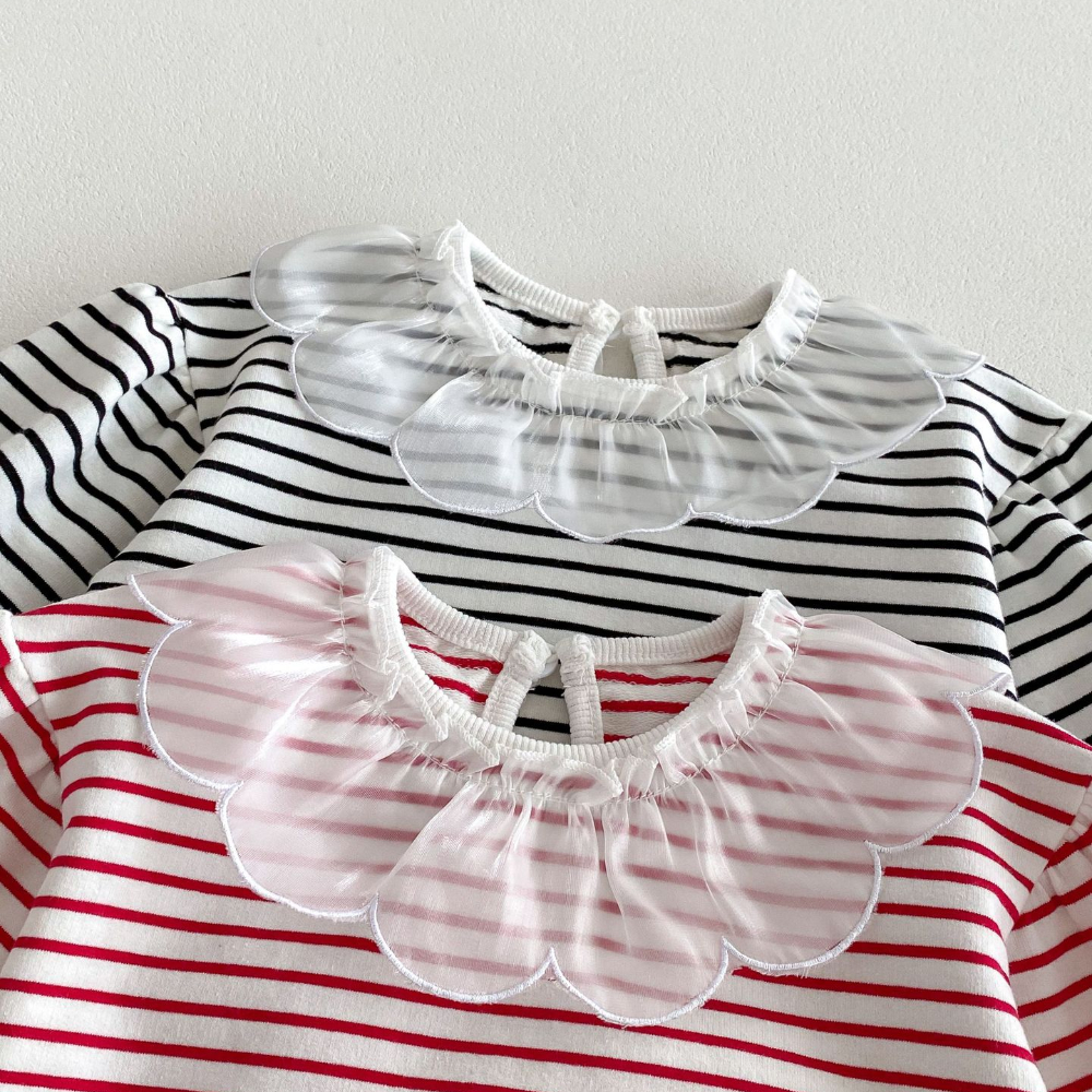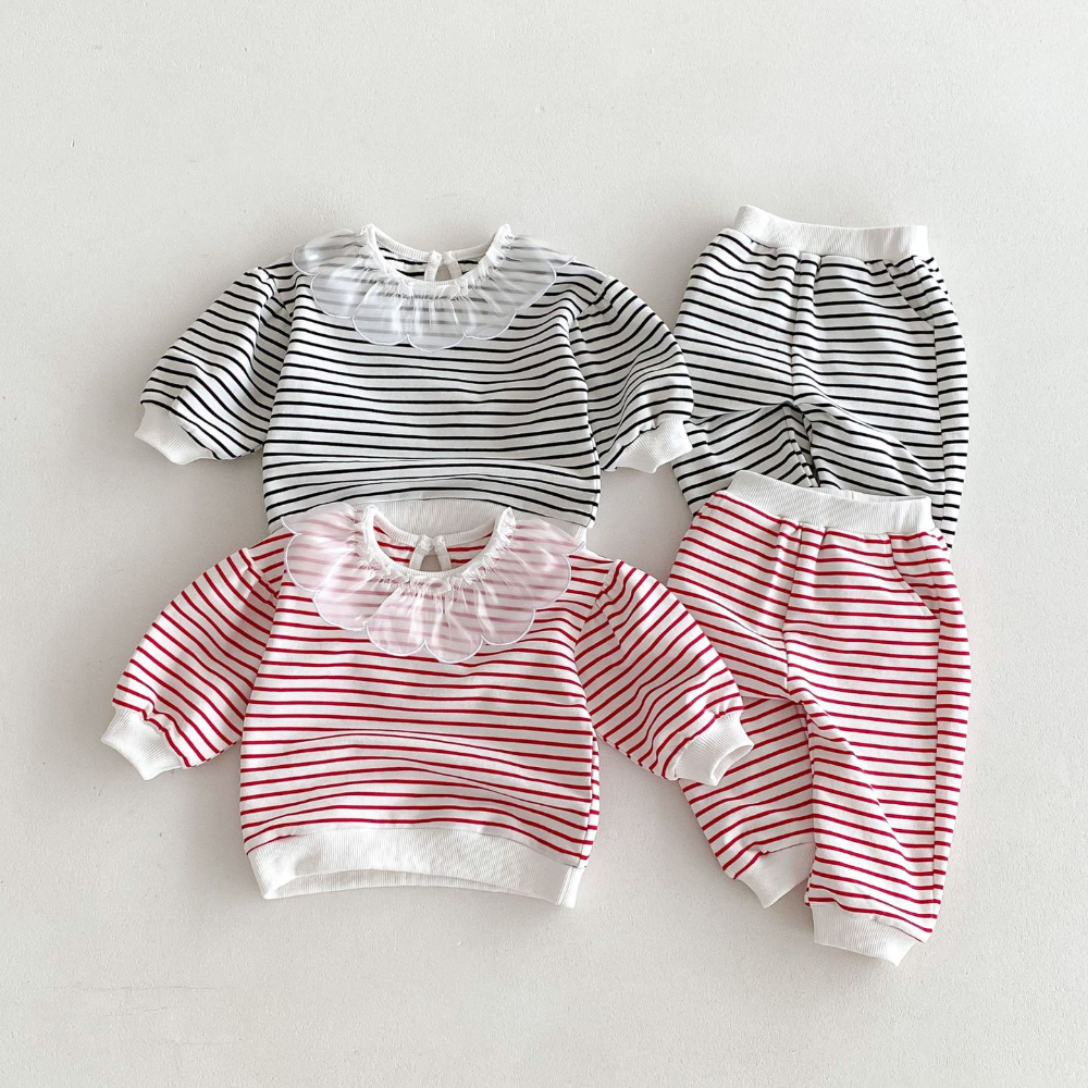 【BE089】日系花瓣領條紋長袖長褲套裝(2色)