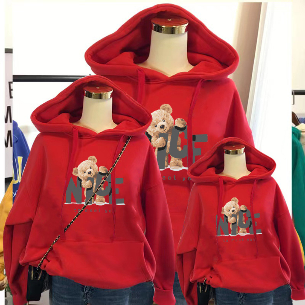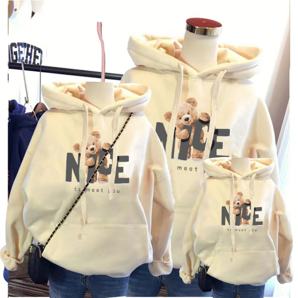 【F108】日系小熊字母連帽全家福親子長袖上衣(4色)