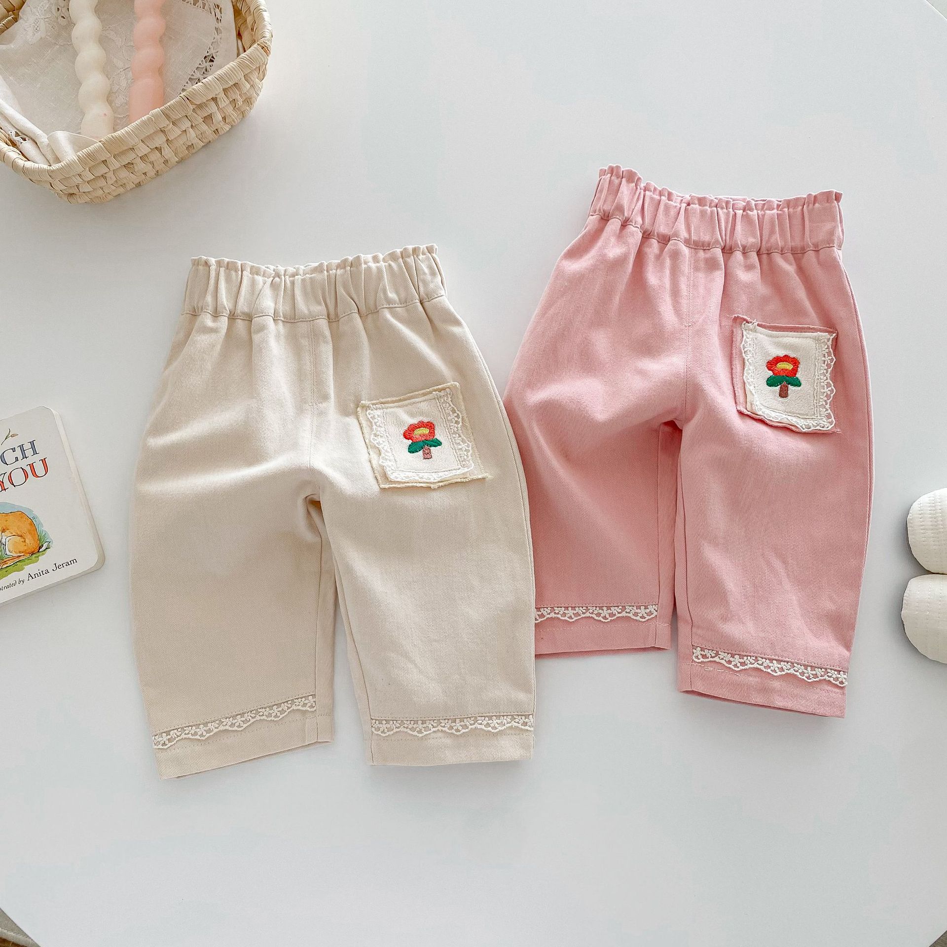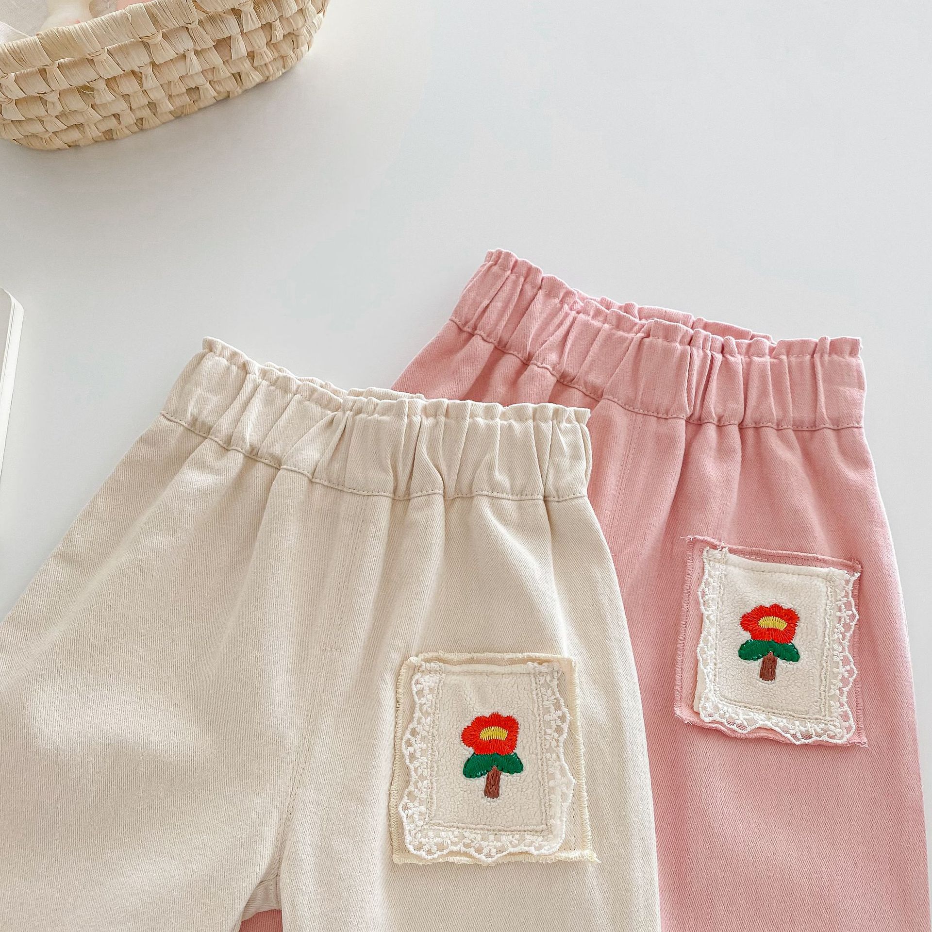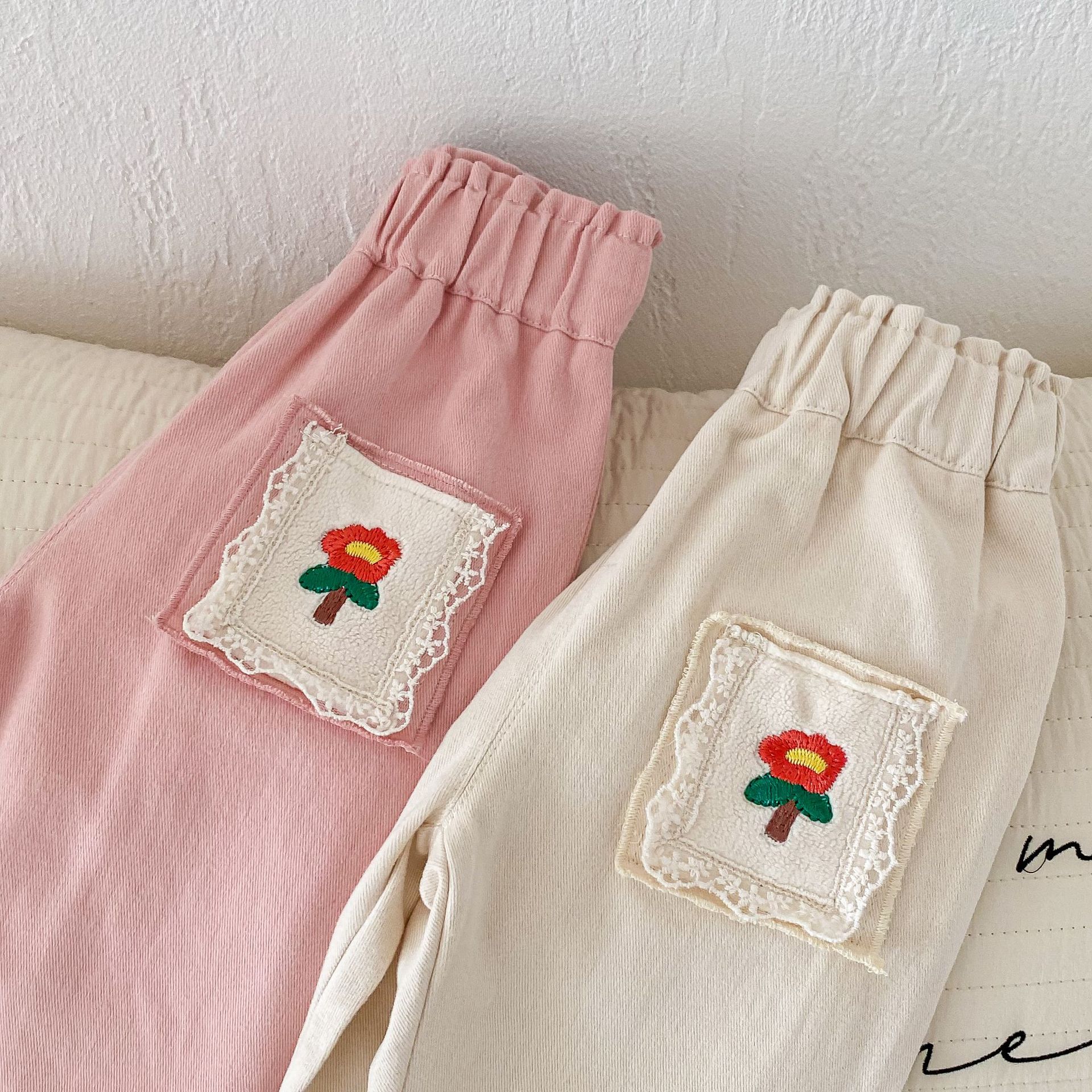 【BT119】韓版刺繡小花長褲(2色)
