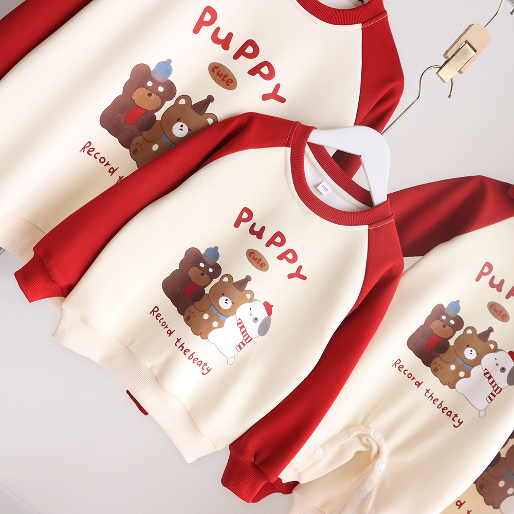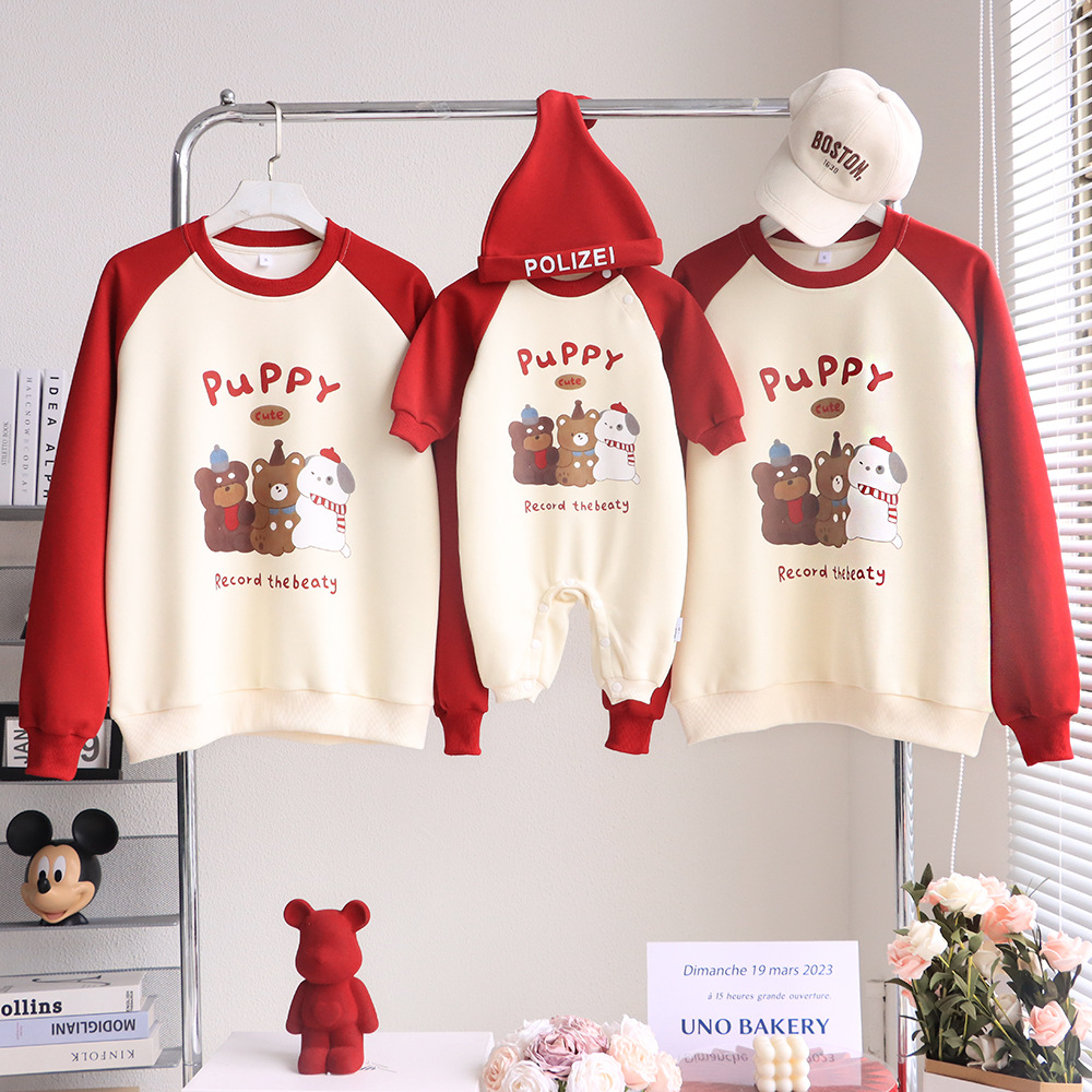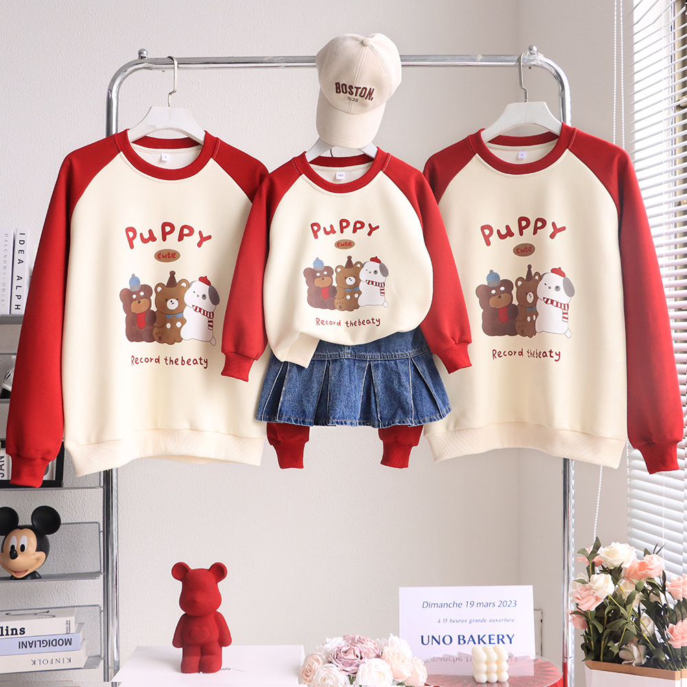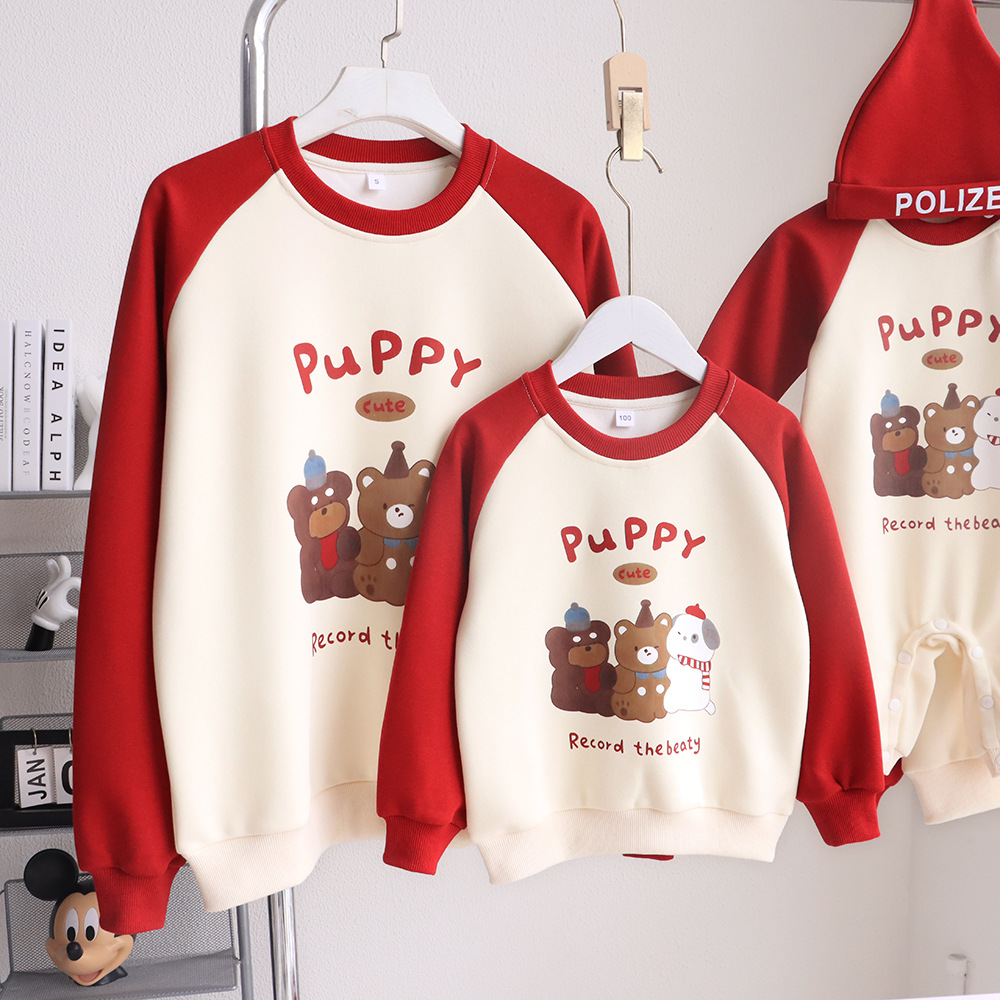 【F119】日系三隻小狗熊熊全家福親子長袖上衣(1色)