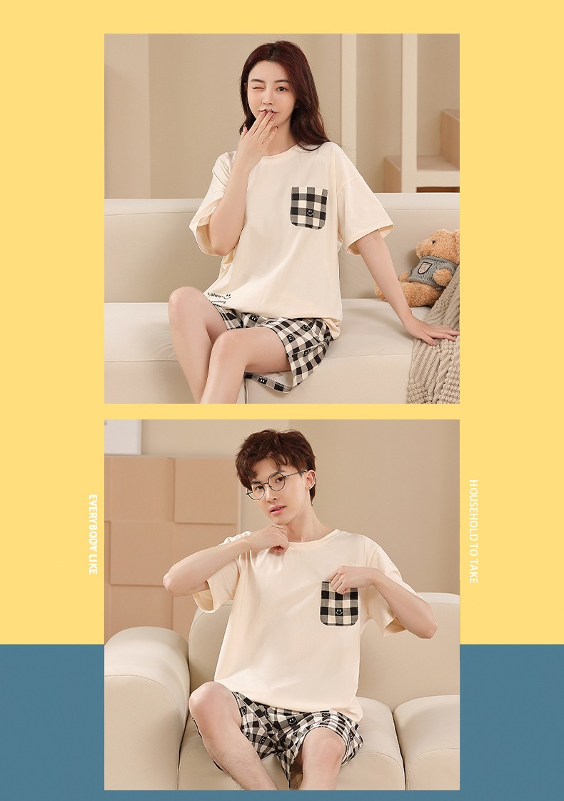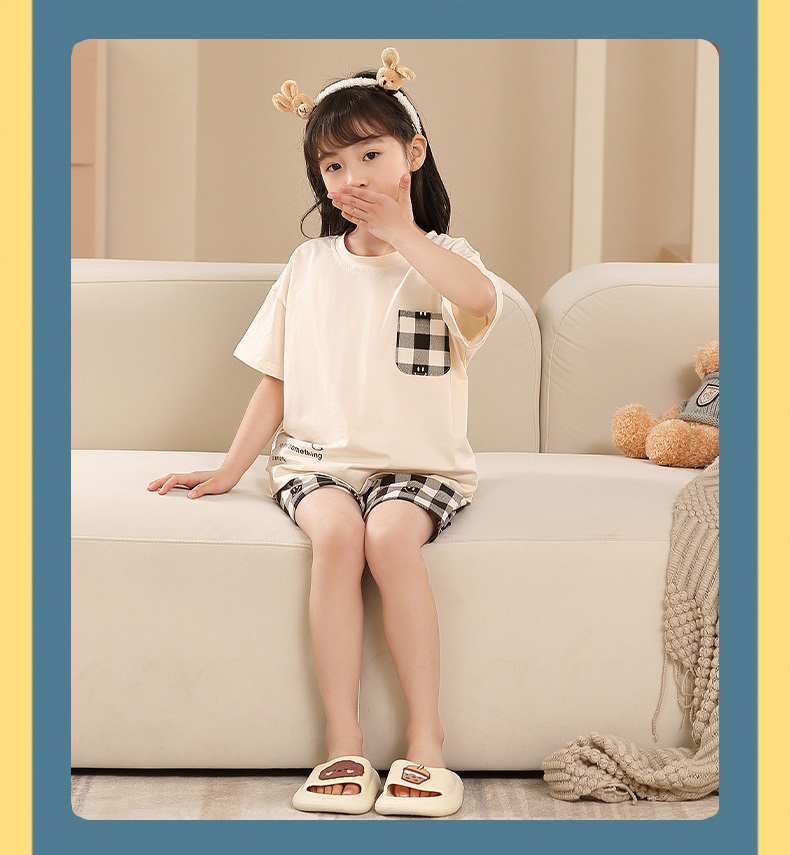 【F132】日系口袋格紋全家福親子短袖短褲套裝(1色)