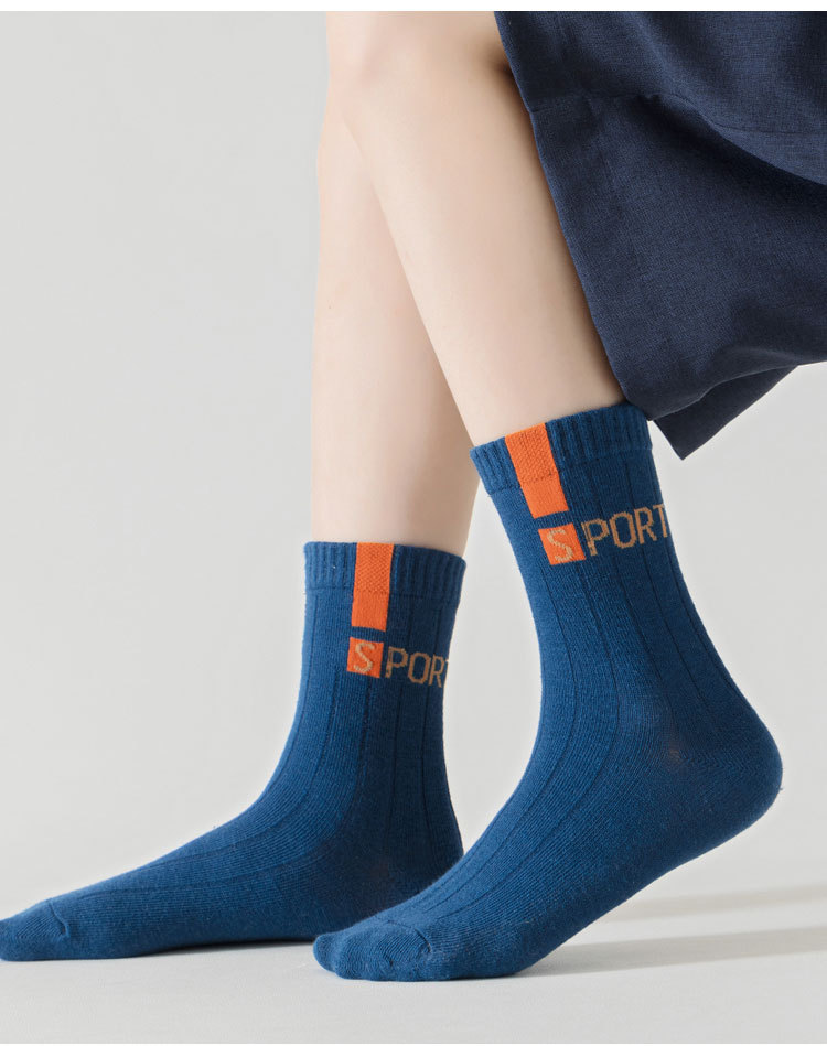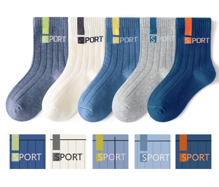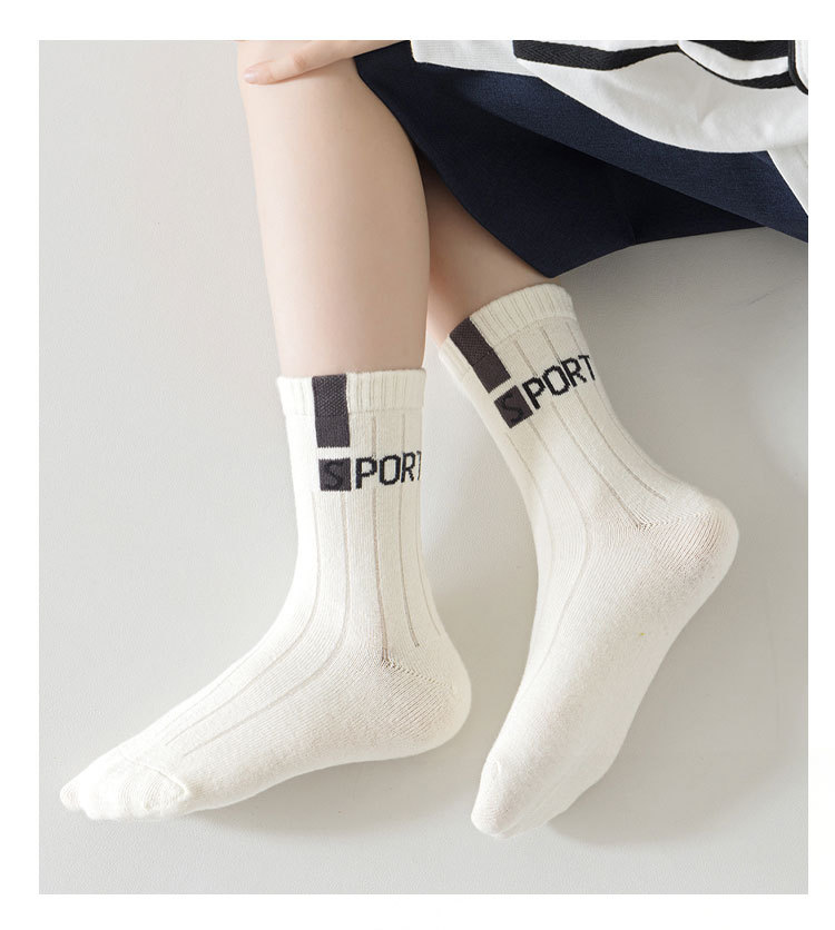 【SB075】童襪|韓版線條字母中筒襪(5雙1組)