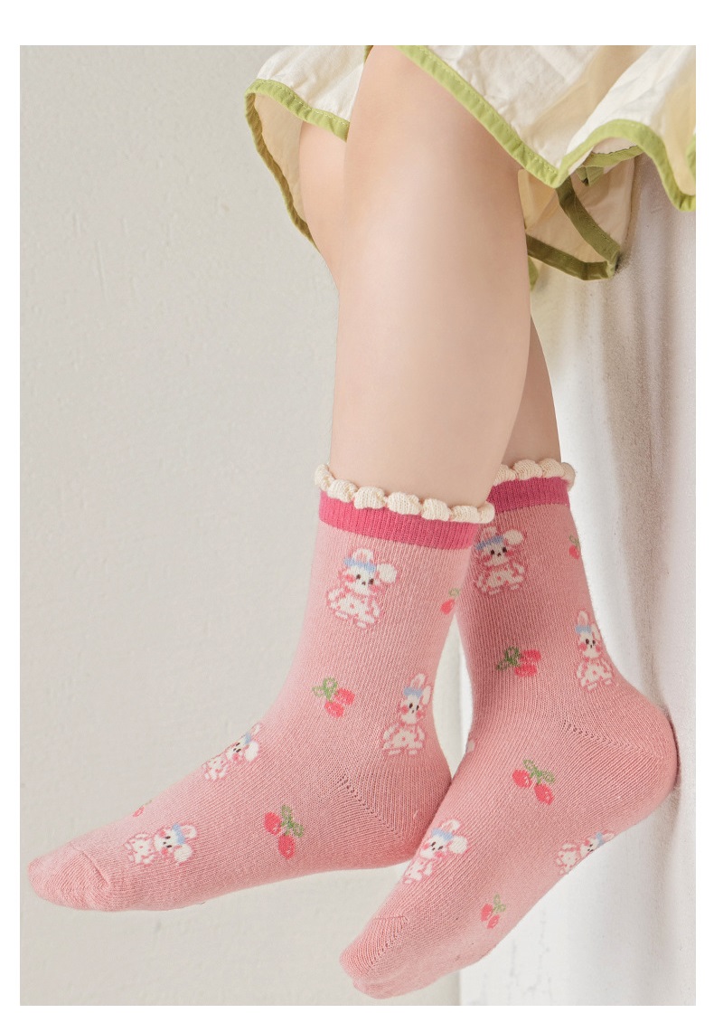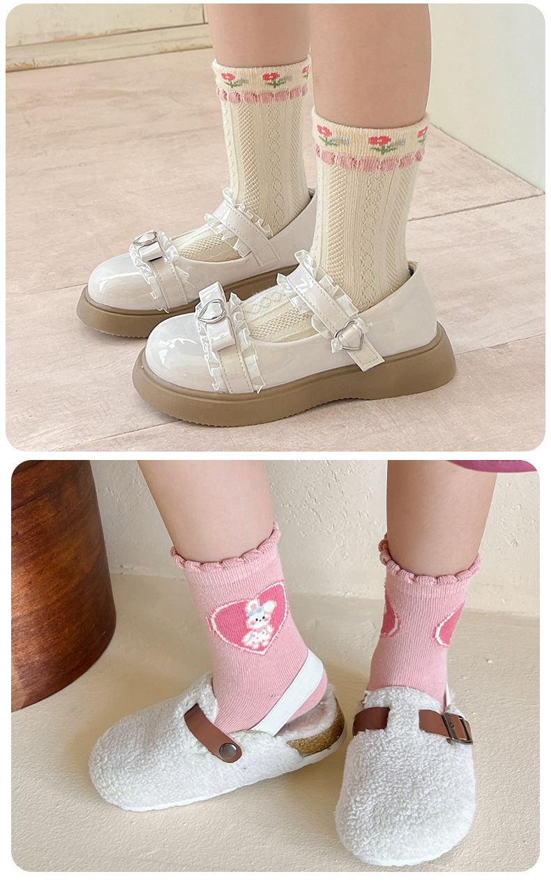 【SB077】童襪|韓版愛心小花兔子中筒襪(5雙1組)