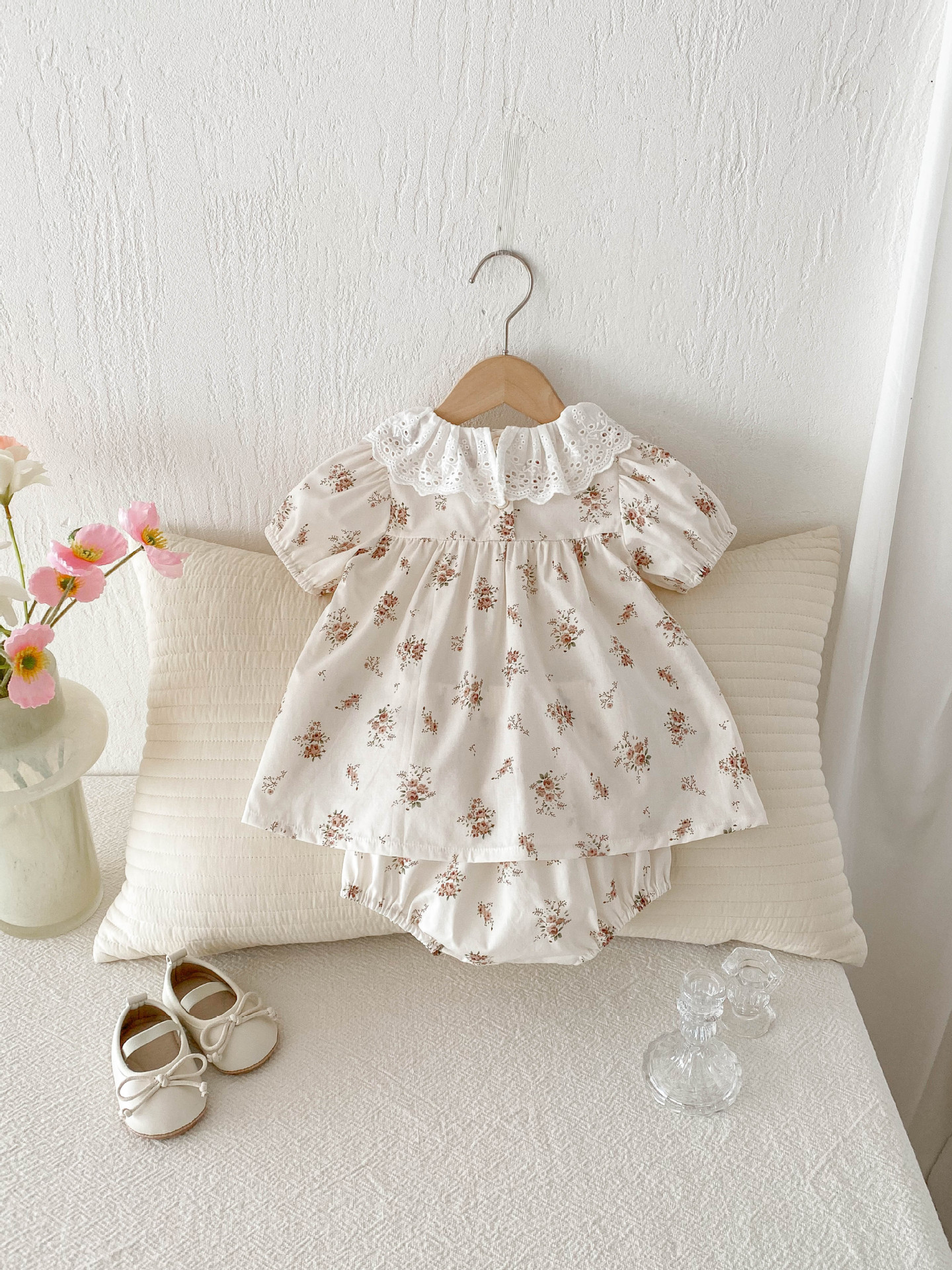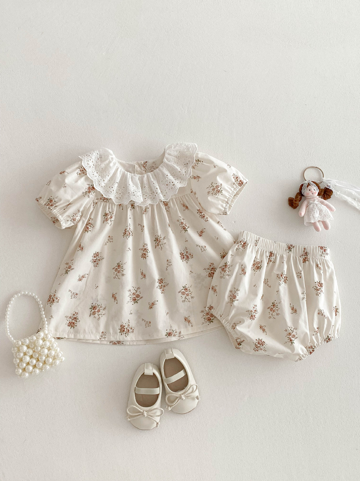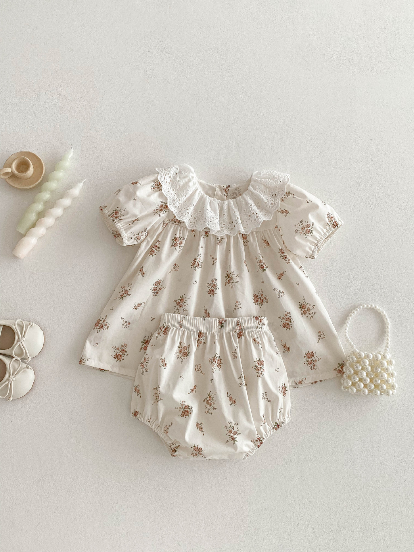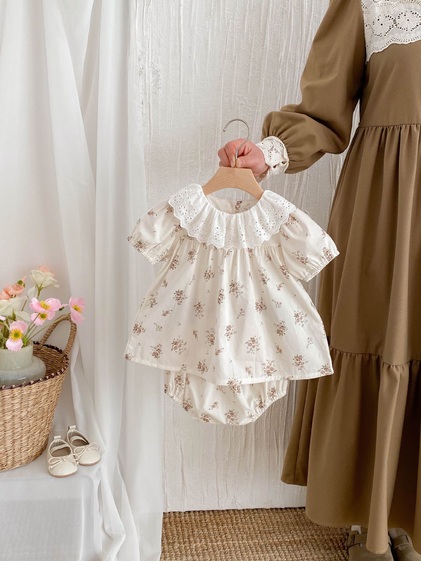 【BE114】日系蕾絲花邊小碎花短袖短褲套裝(1色)
