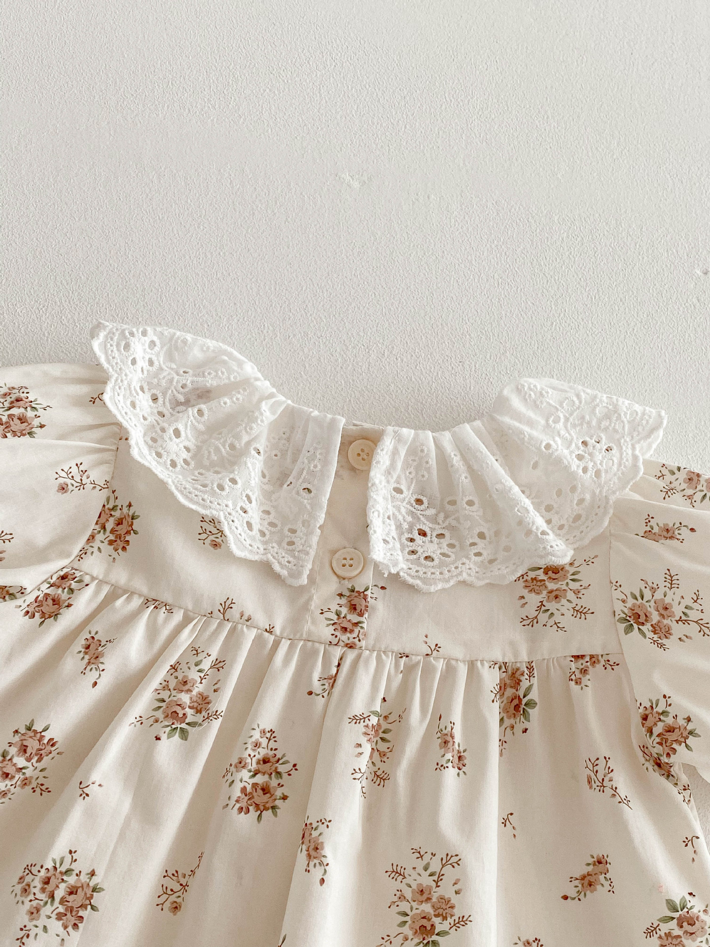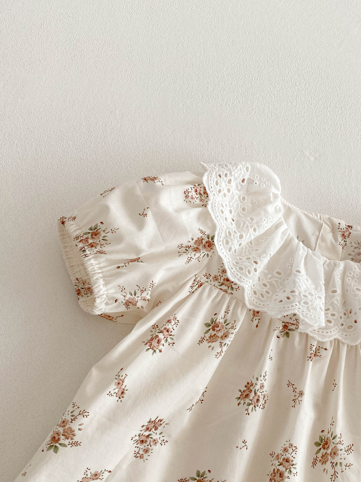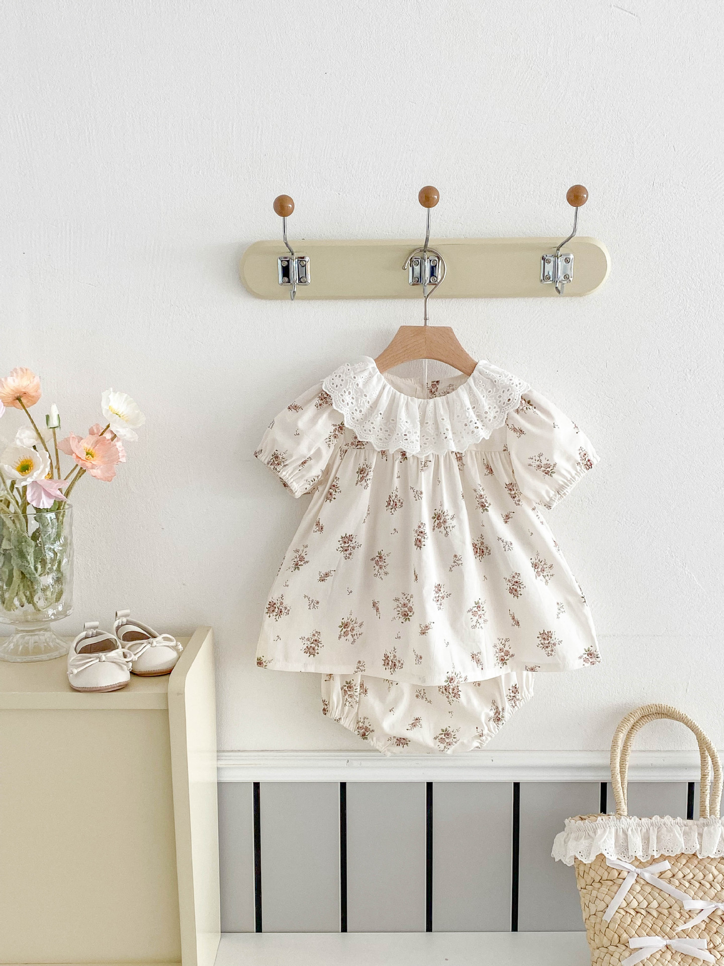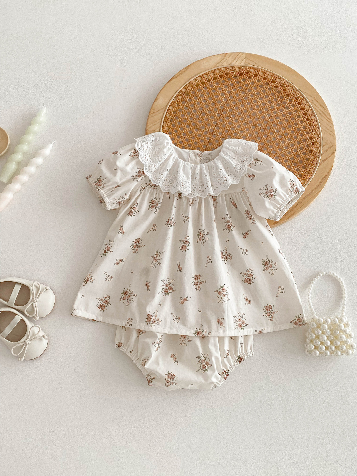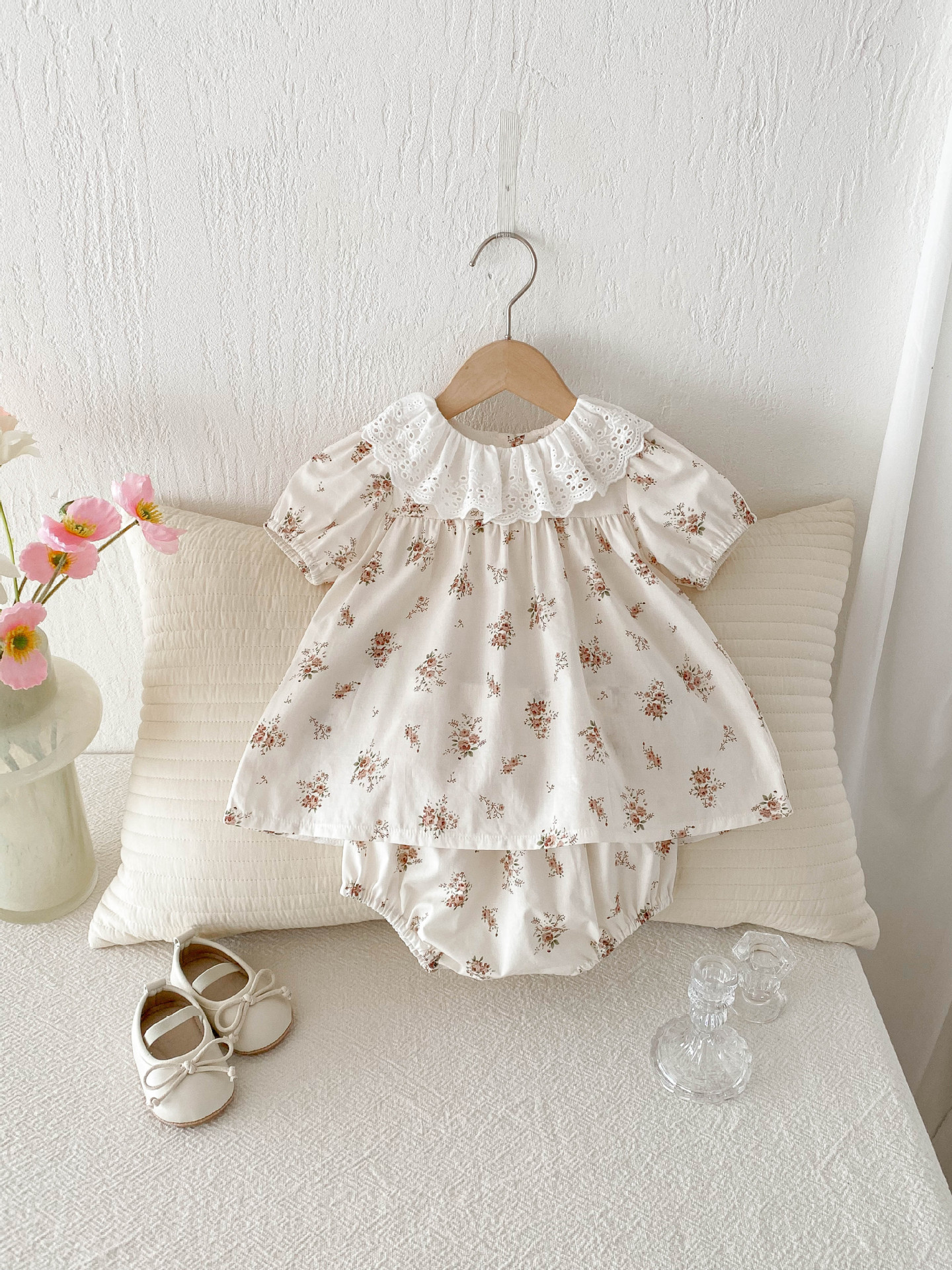 【BE114】日系蕾絲花邊小碎花短袖短褲套裝(1色)