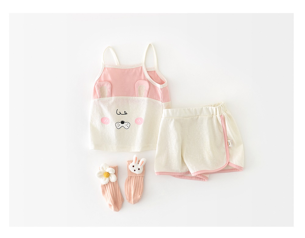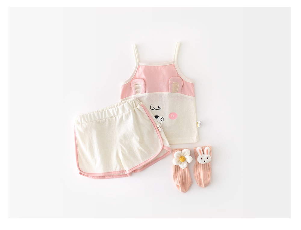 【BE120】日系立體兔兔吊帶無袖短褲套裝(1色)
